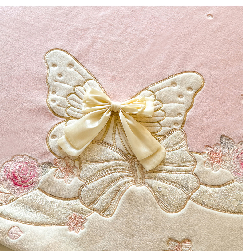 (总)绒棉世家 2025新款独家设计师款牛奶绒贴布绣四件套-甜心蝴蝶结(控价188),蝴蝶结-浅玉