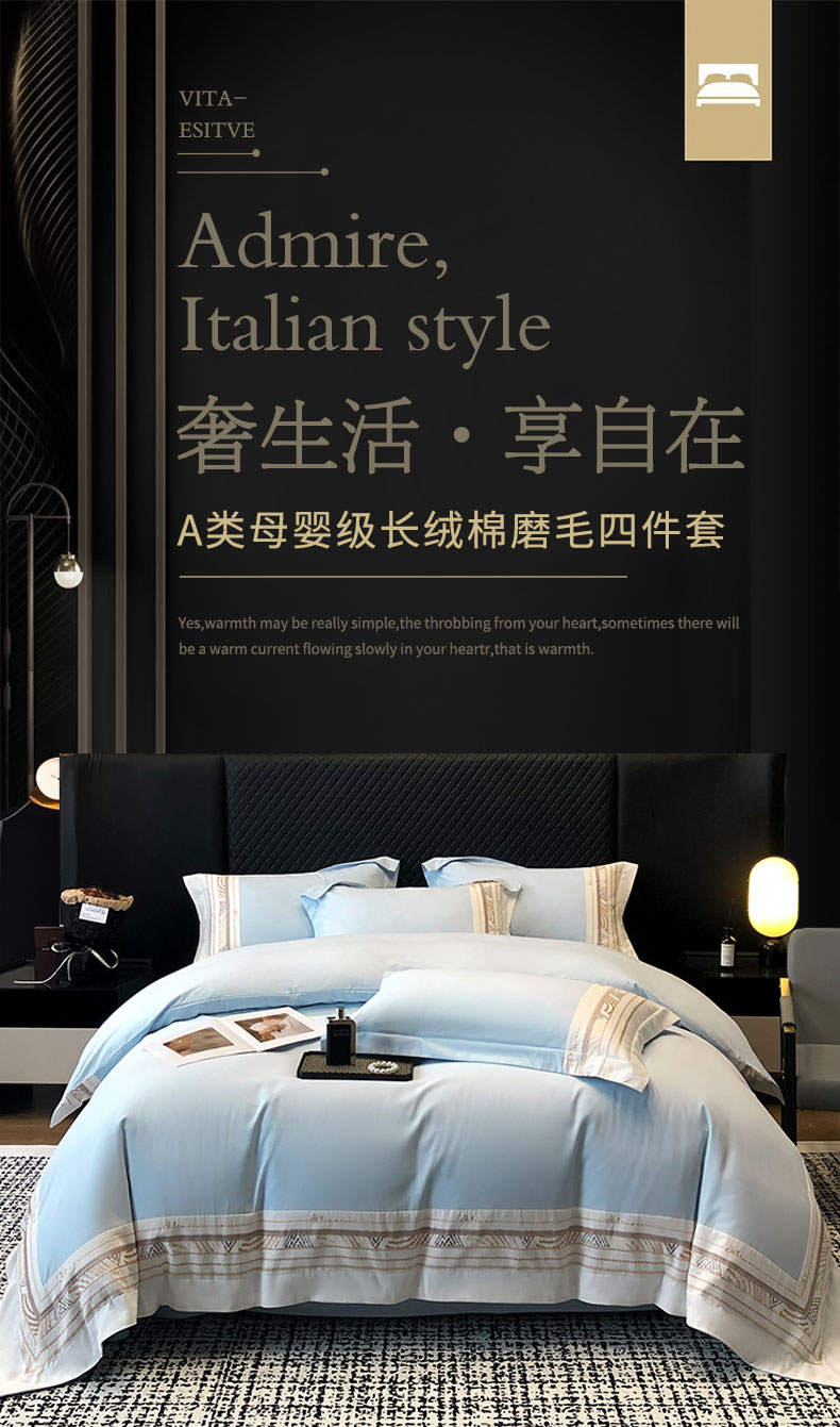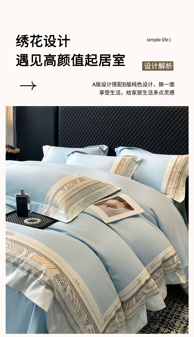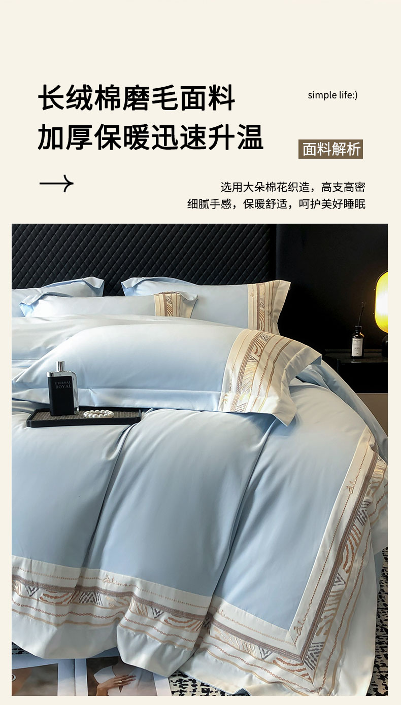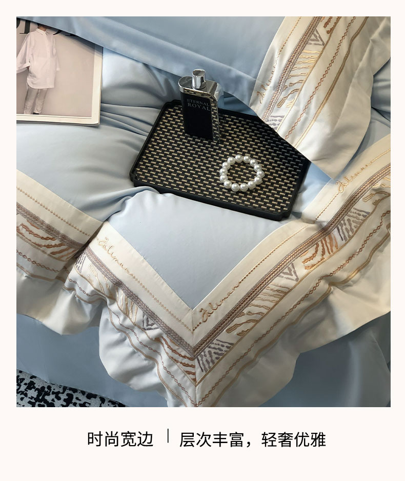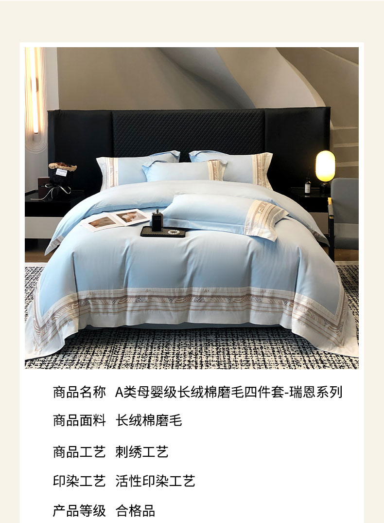 商品名称:丞音家纺 2025新款瑞恩超柔A类100支超细旦长绒棉磨毛刺绣四件套秋冬加厚纯棉全棉绣花床上用品 瑞恩-祖玛蓝