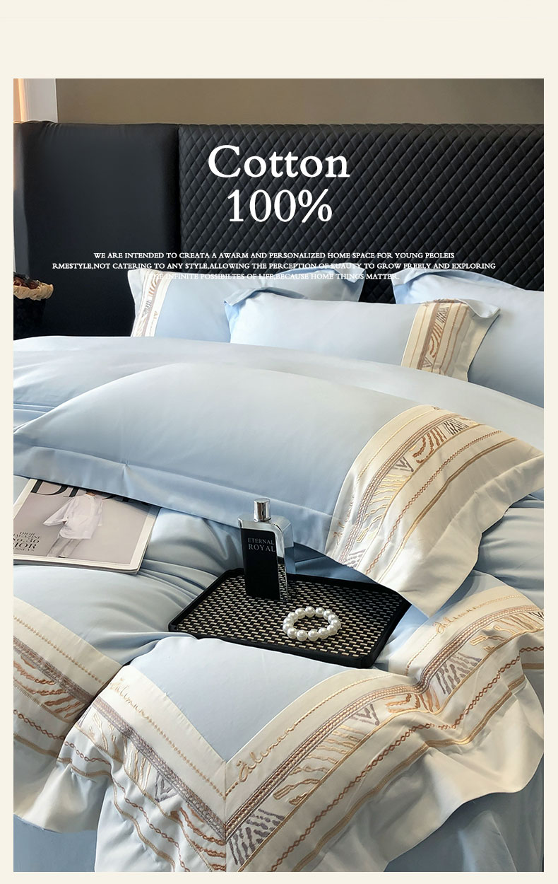 丞音家纺 2025新款瑞恩超柔A类100支超细旦长绒棉磨毛刺绣四件套秋冬加厚纯棉全棉绣花床上用品 瑞恩-祖玛蓝