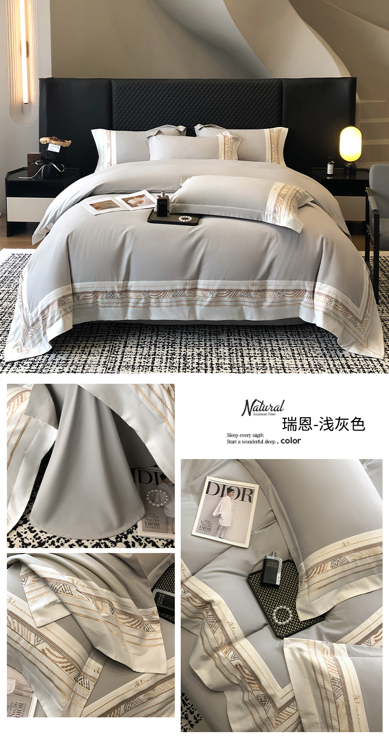 (总)丞音 2025新款法式轻奢A类长绒棉50s双股100支贡缎全棉被套纯棉四件套床笠高档礼盒包装-丽芙系列,丽芙-高级白,丽芙-优雅粉