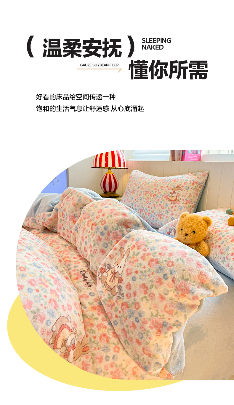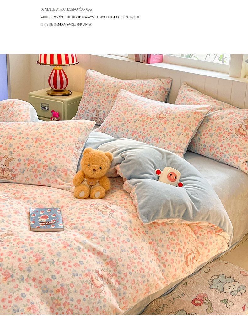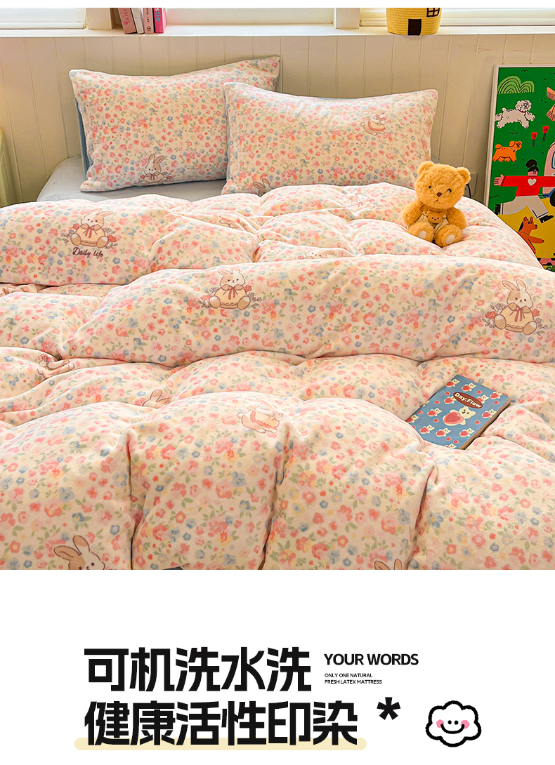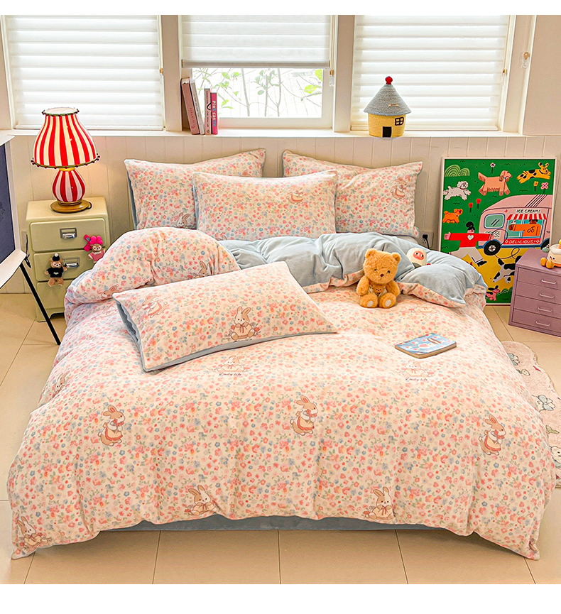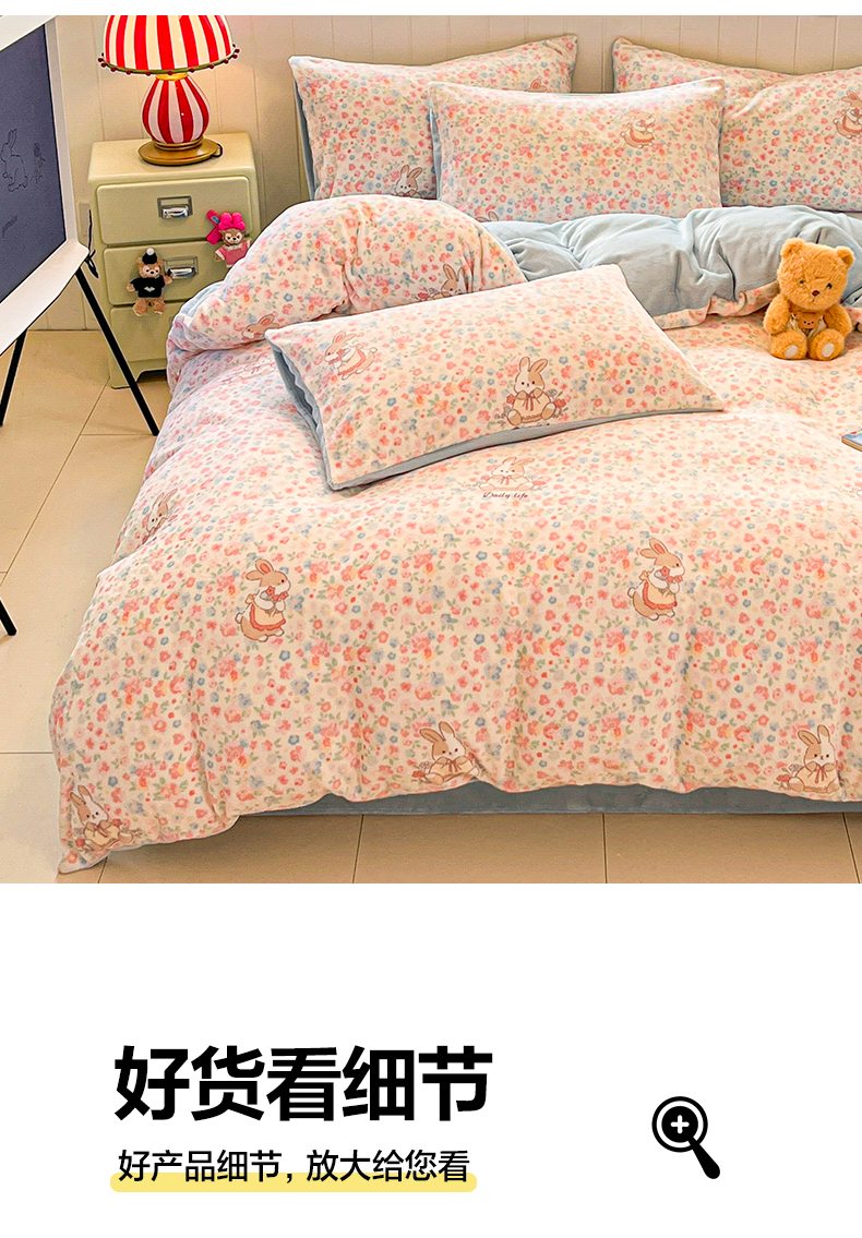 当前位置: 91家纺网 > 商品网购 > 床品套件 > 四件套 > 牛奶绒四件套 > 佳汐蓝家纺 2025新款190克高克重牛奶绒印花四件套 兔兔花田+天空蓝