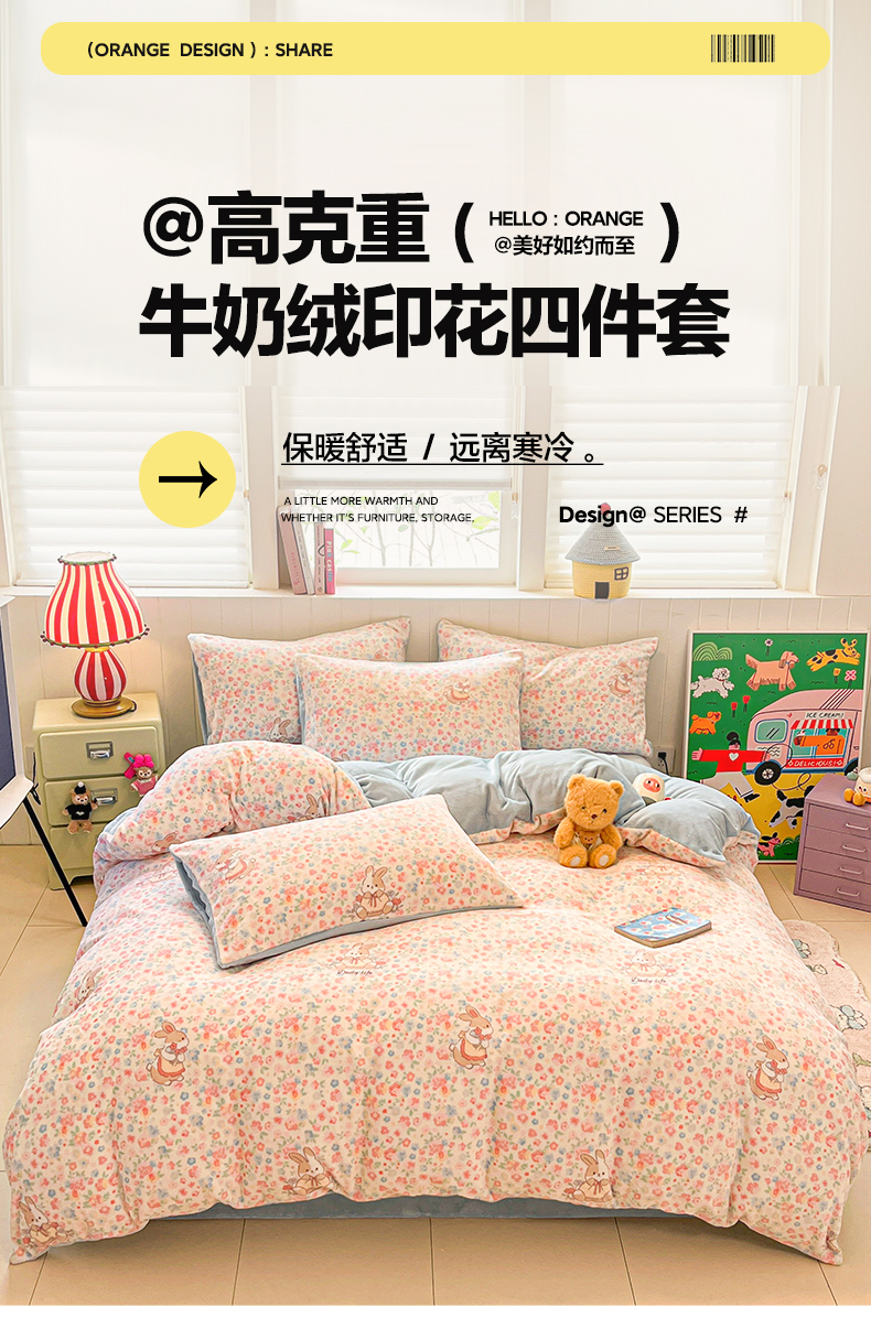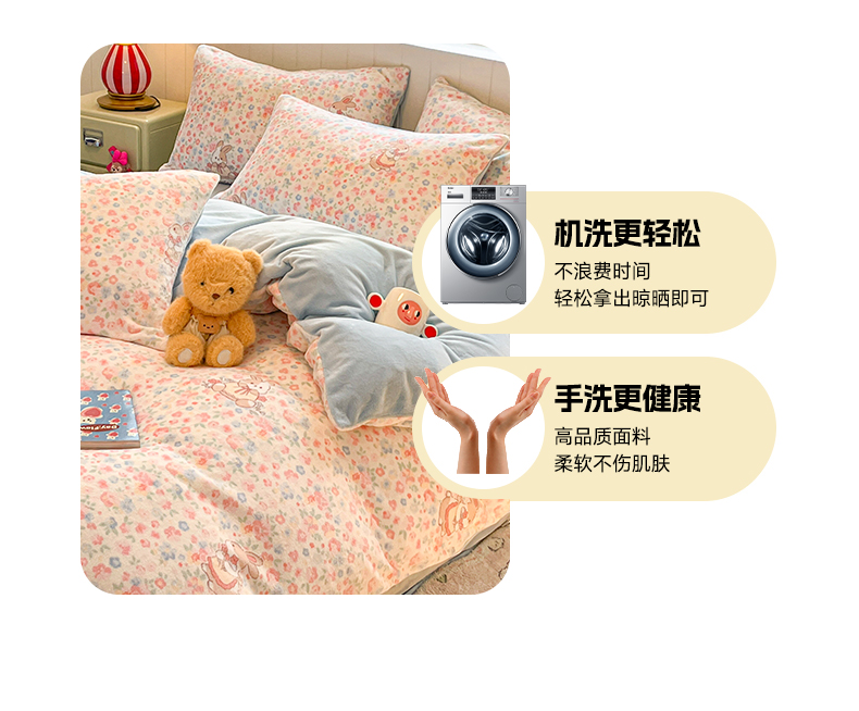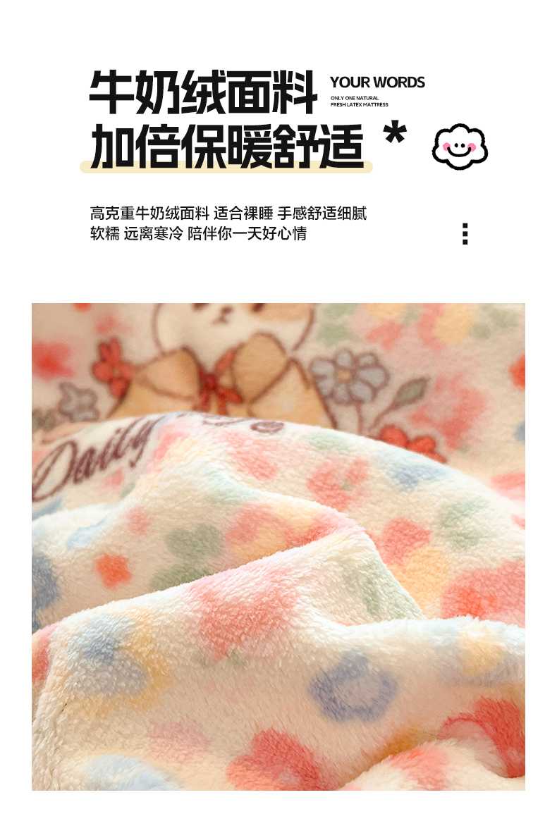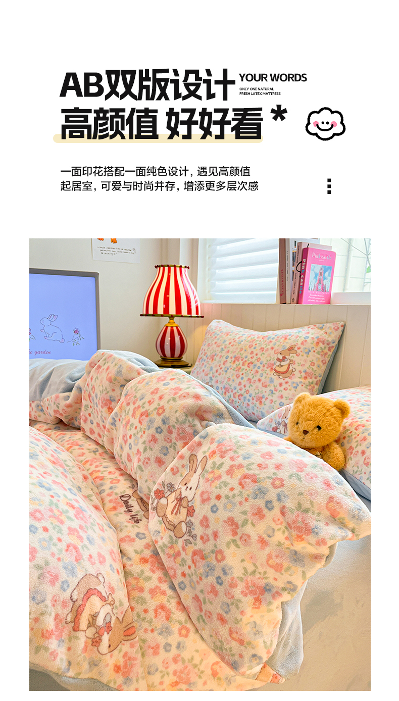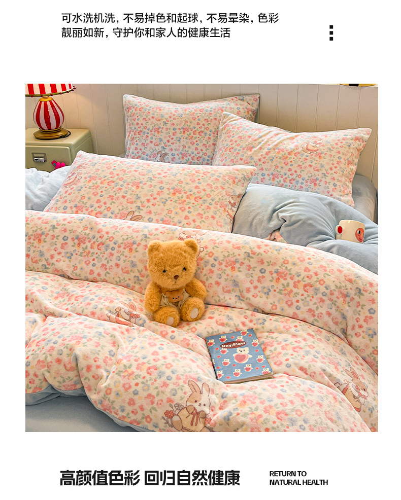 当前位置: 91家纺网 > 商品网购 > 床品套件 > 四件套 > 牛奶绒四件套 > 佳汐蓝家纺 2025新款190克高克重牛奶绒印花四件套 兔兔花田+天空蓝