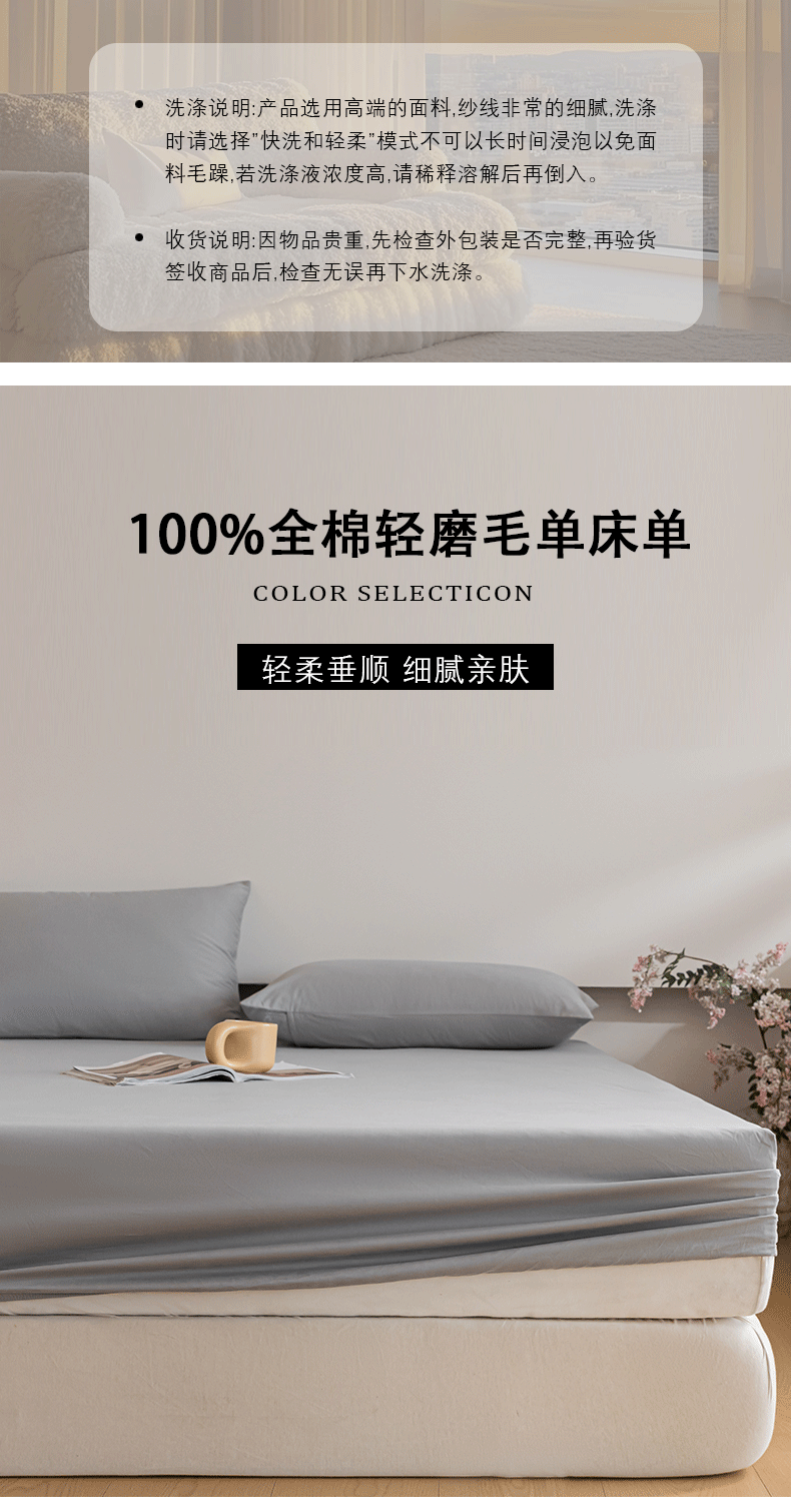 商品名称:618家纺 2025新款全棉100支磨毛单品四件套系列-单床笠 火山灰