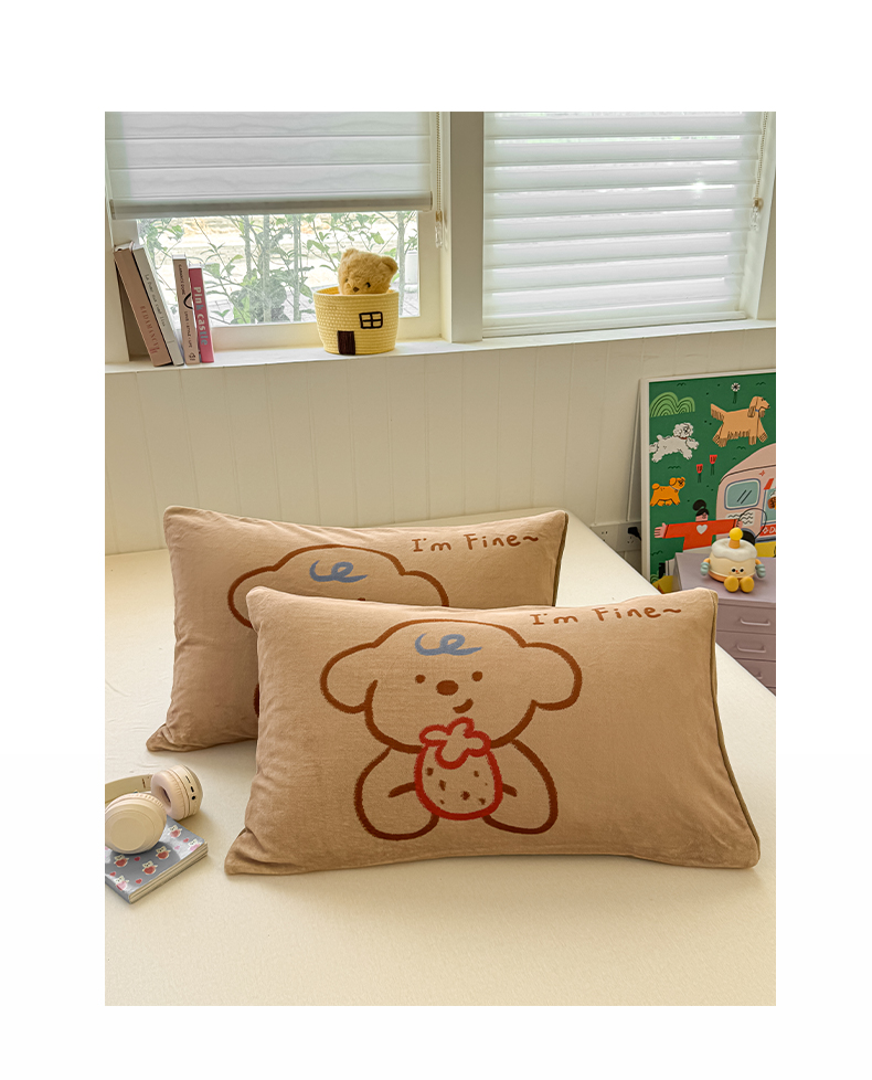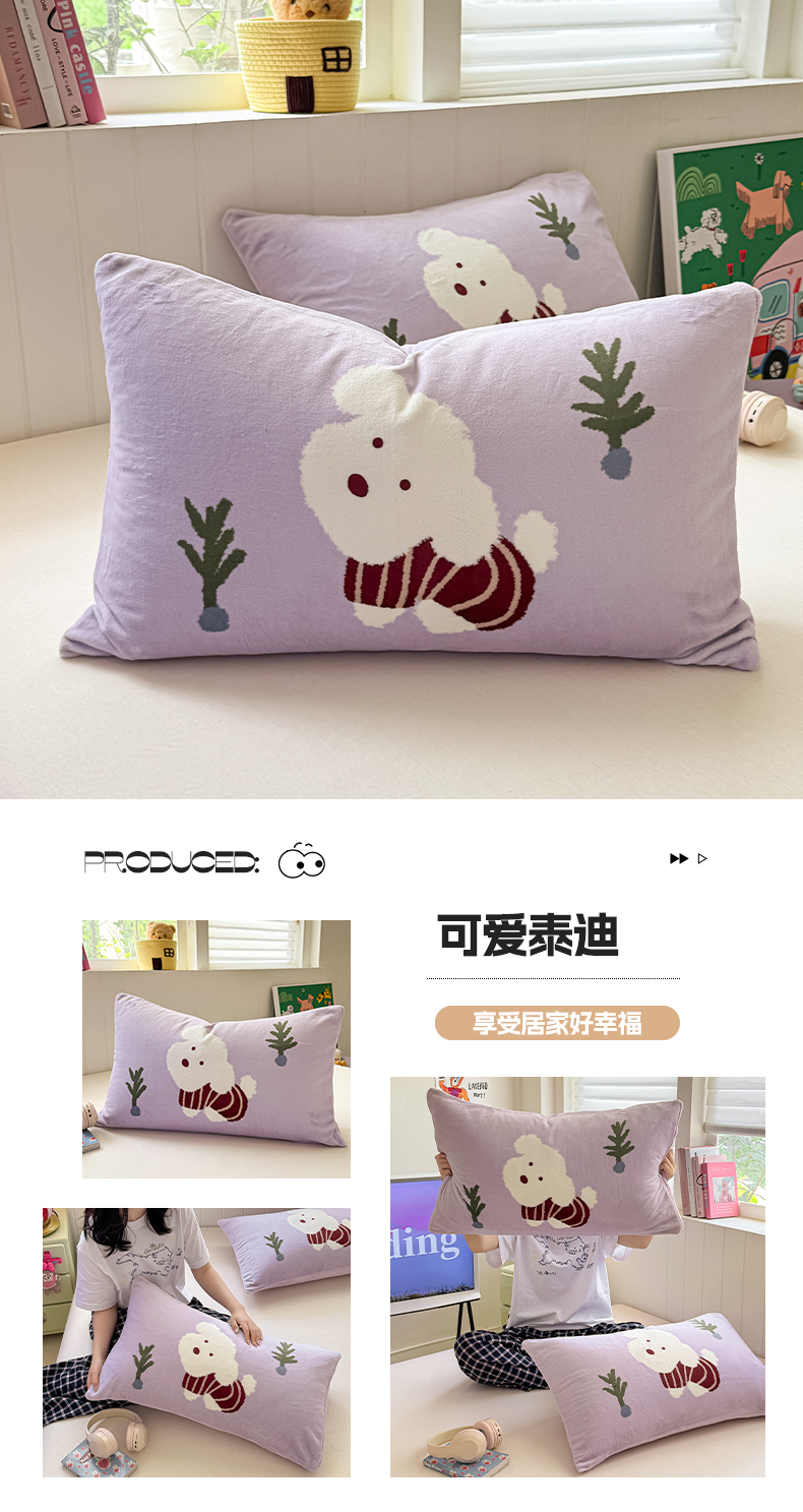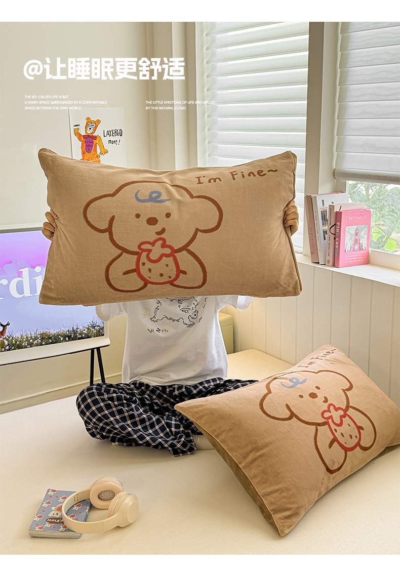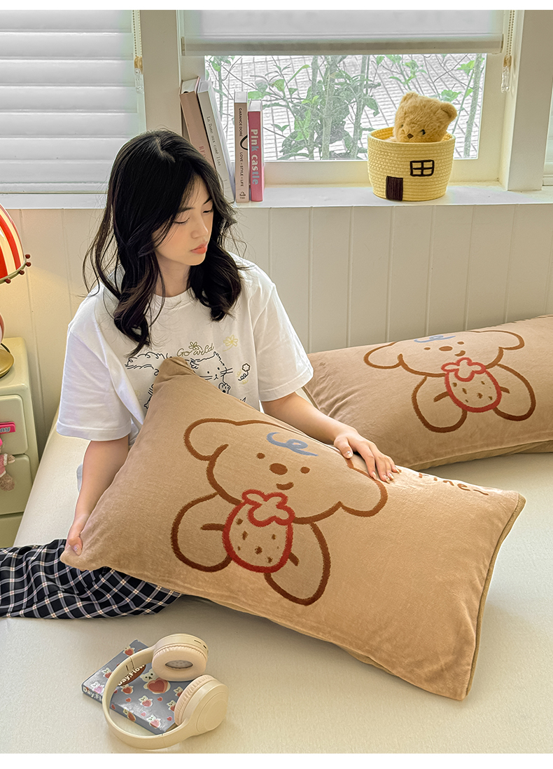 佳汐蓝家纺 2025新款牛奶绒卡通大版枕套 草莓狗