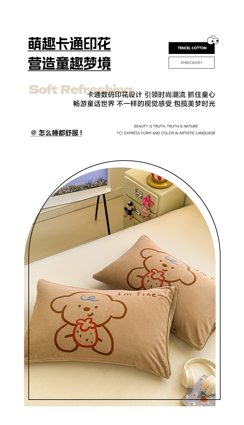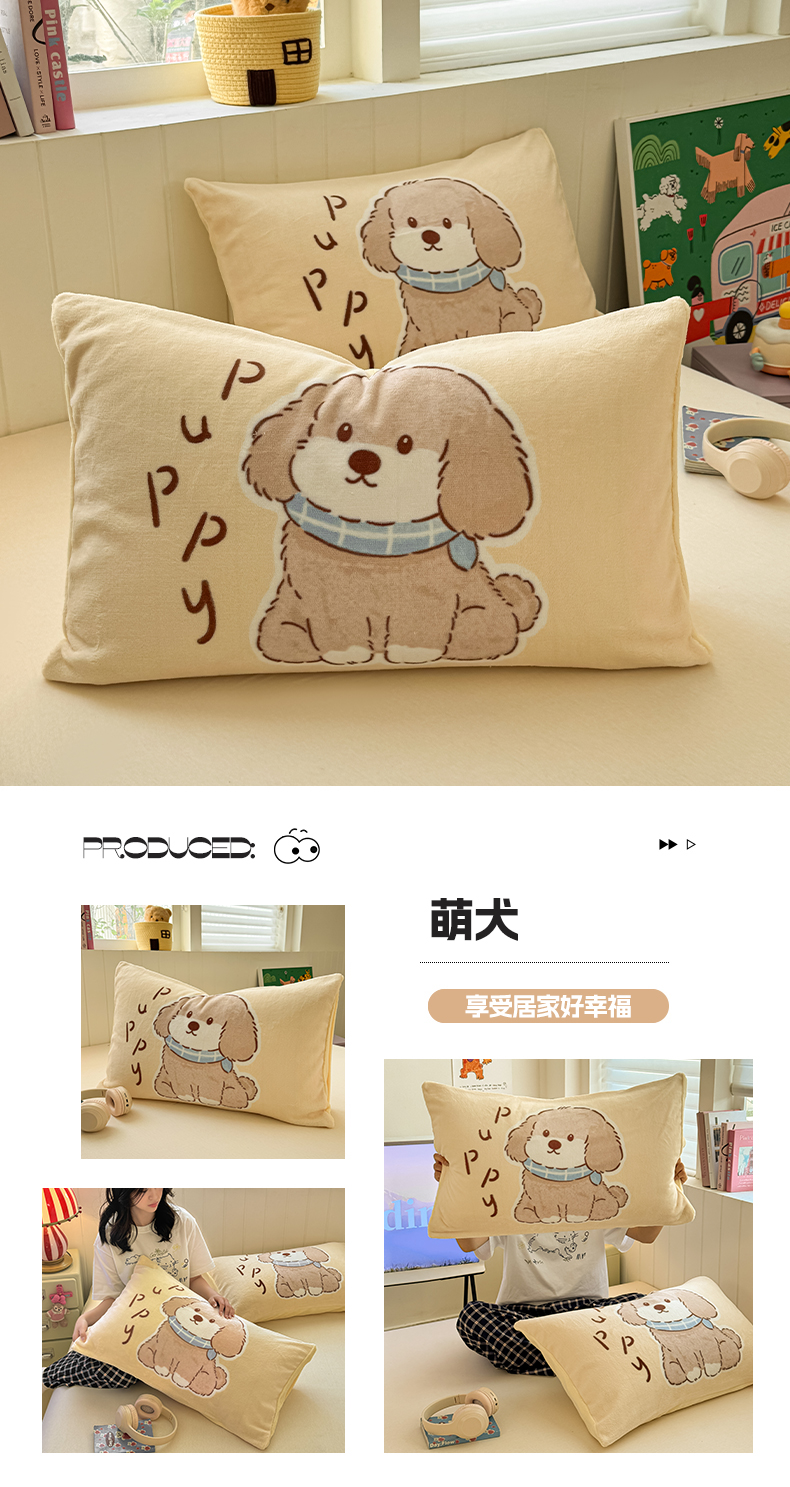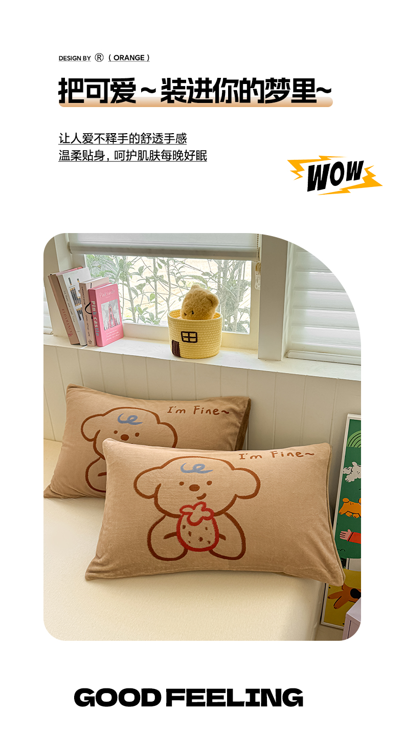 佳汐蓝家纺 2025新款牛奶绒卡通大版枕套 草莓狗