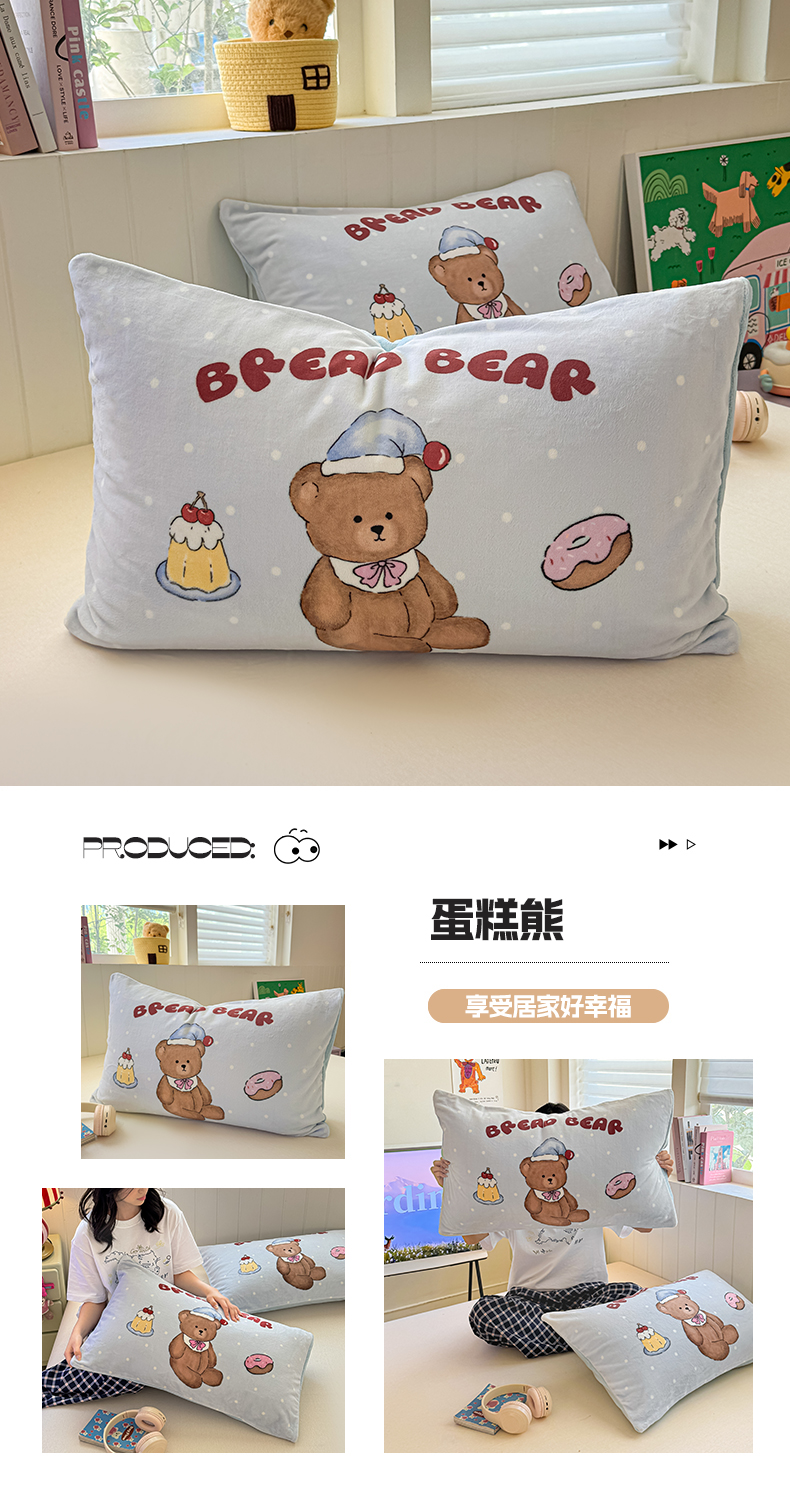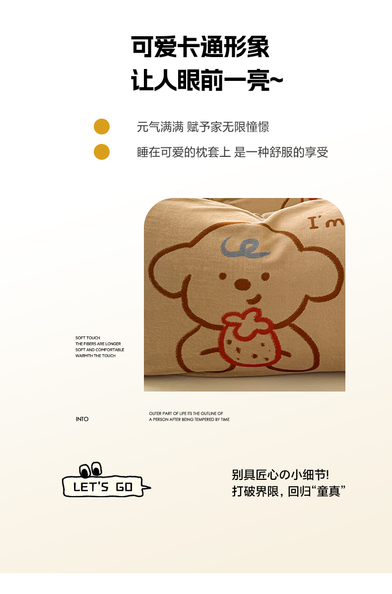 商品名称:佳汐蓝家纺 2025新款牛奶绒卡通大版枕套 草莓狗