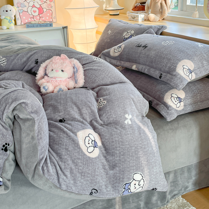 商品名称:一比一 2025新款双面牛奶绒四件套阿奇灰