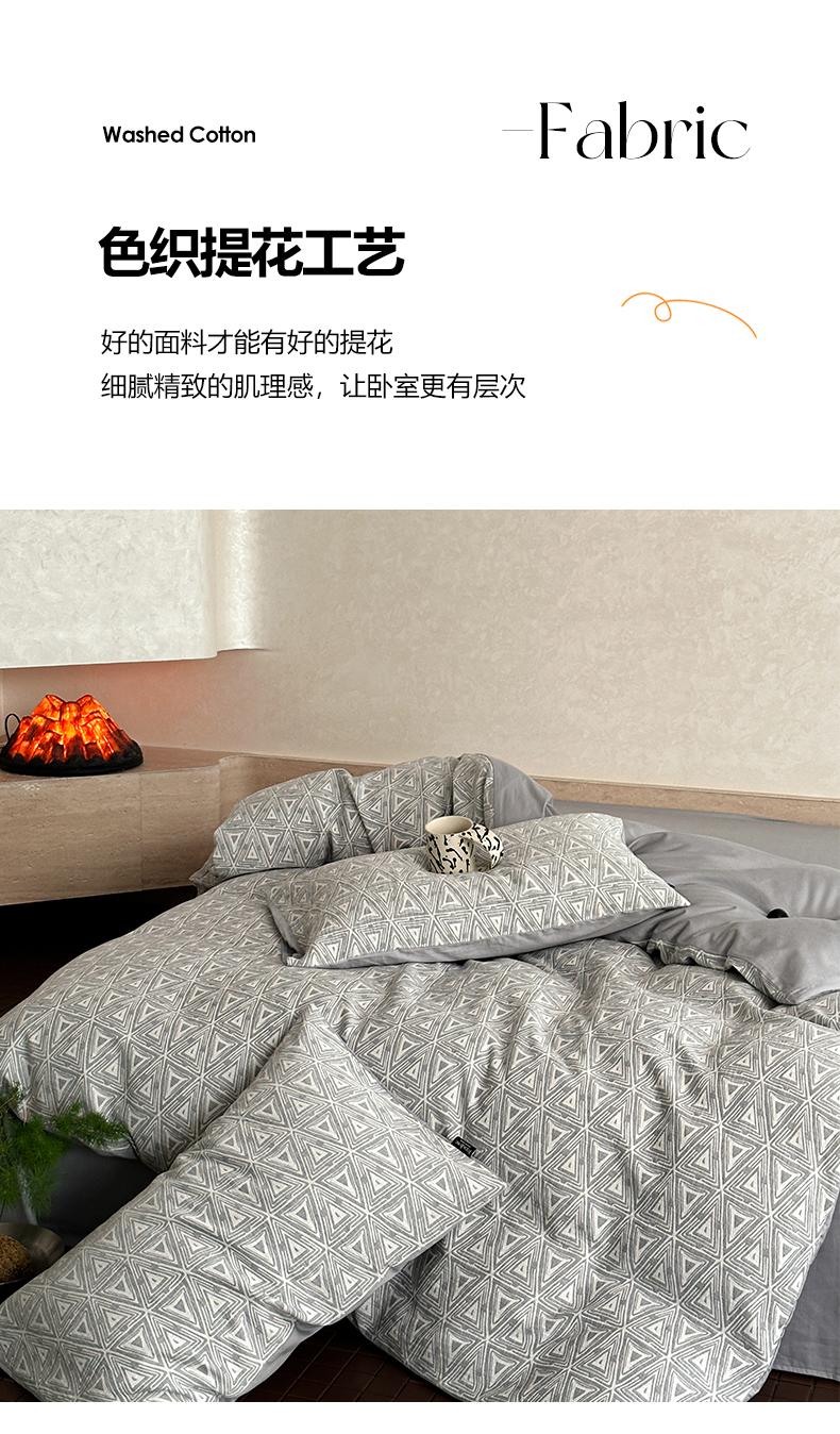 商品名称:宜代光年 2025新款色织水洗棉提花四件套(第一批) 红木林 深灰
