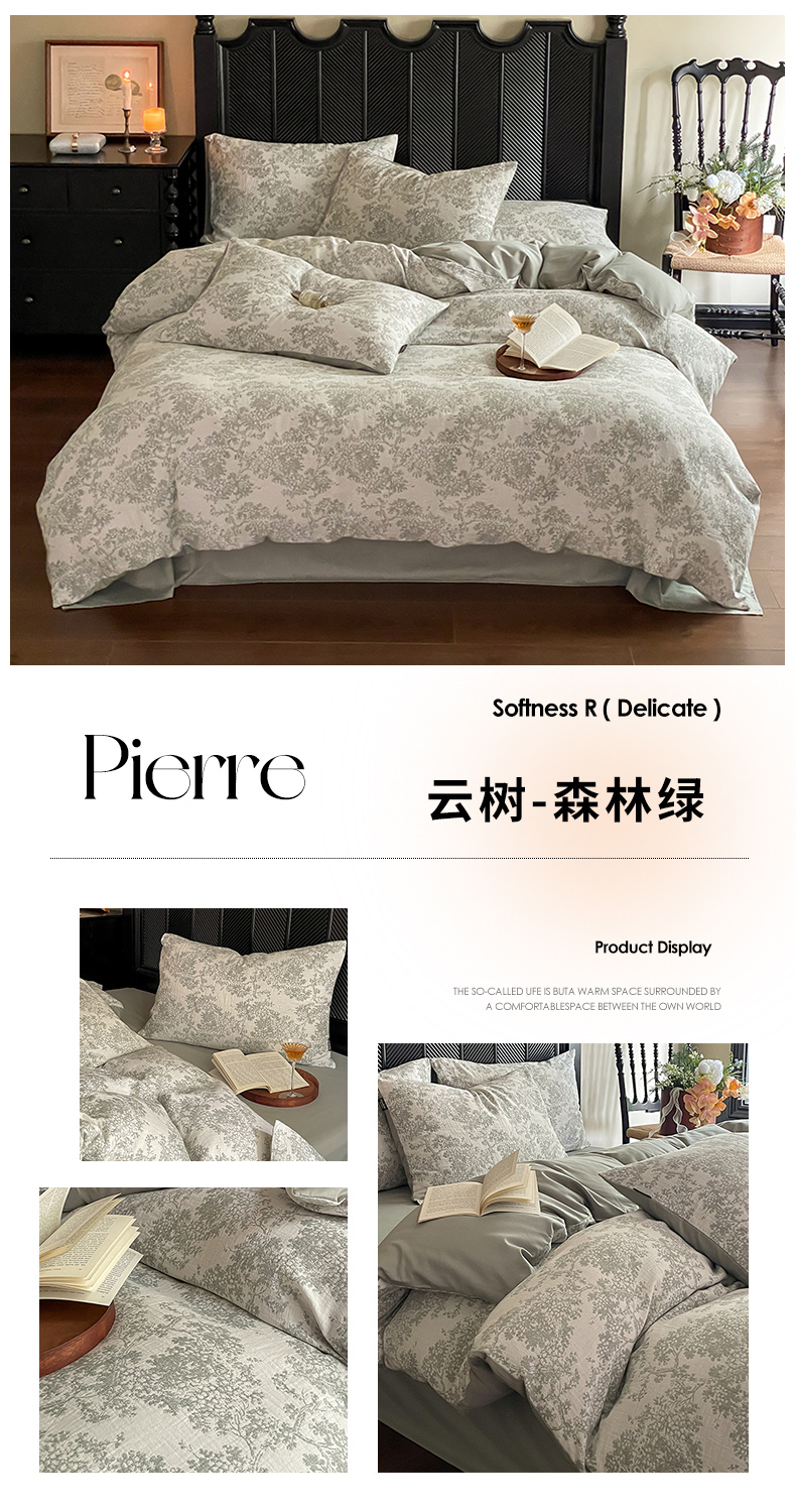 (总)宜代光年 2025新款60s全棉水洗色织提花磨毛四件套,执笔水墨-灰,红木林-深灰,言柒-暖橘,云树-灰,执笔水墨-咖,红木林-森林绿,云树-森林绿