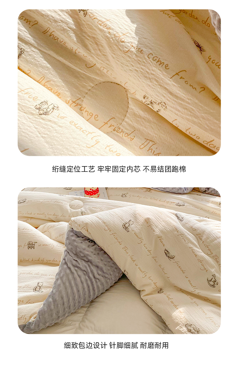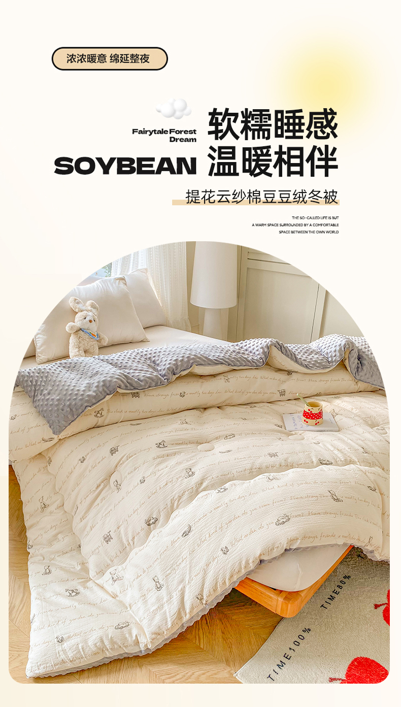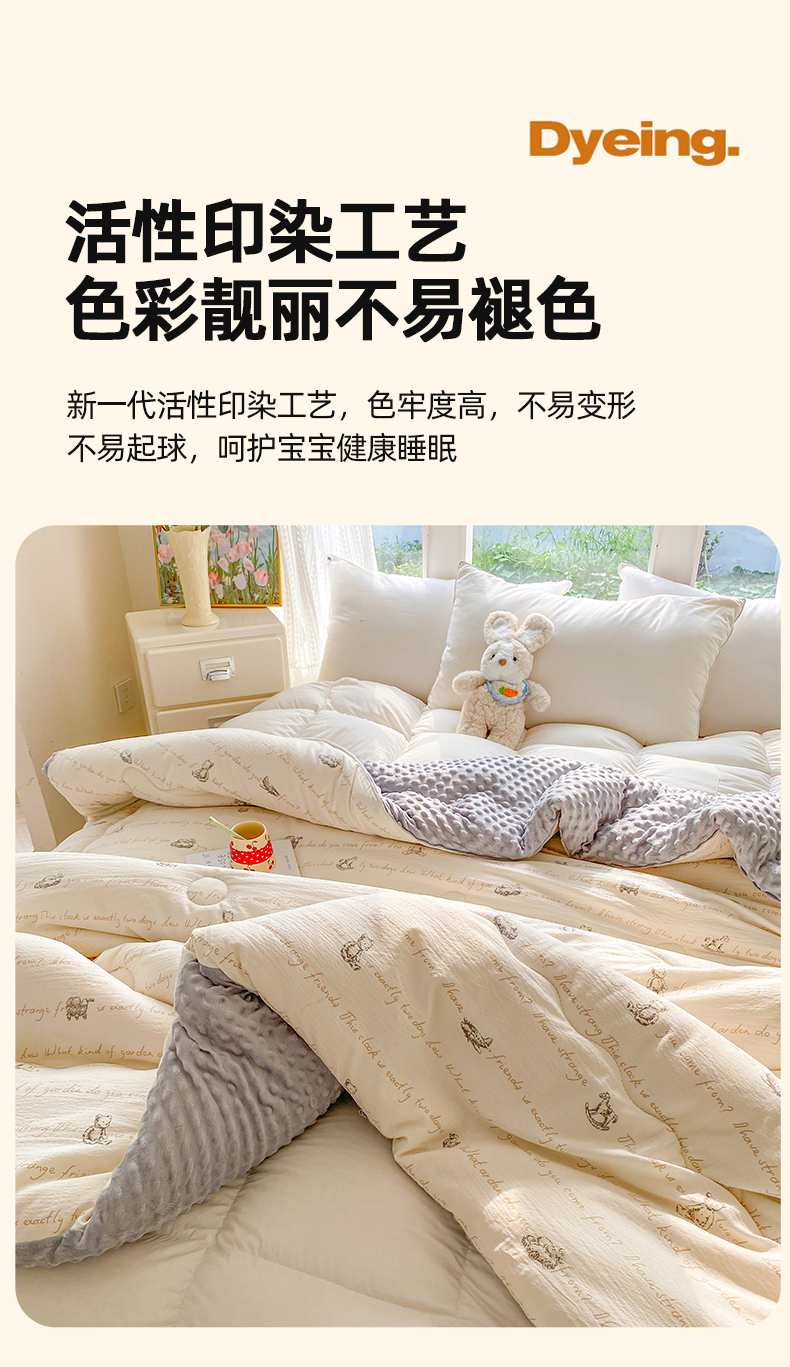 商品名称:美宜家 2025新款豆豆绒冬被子皱皱棉提花春秋被芯豆豆被 花语兔