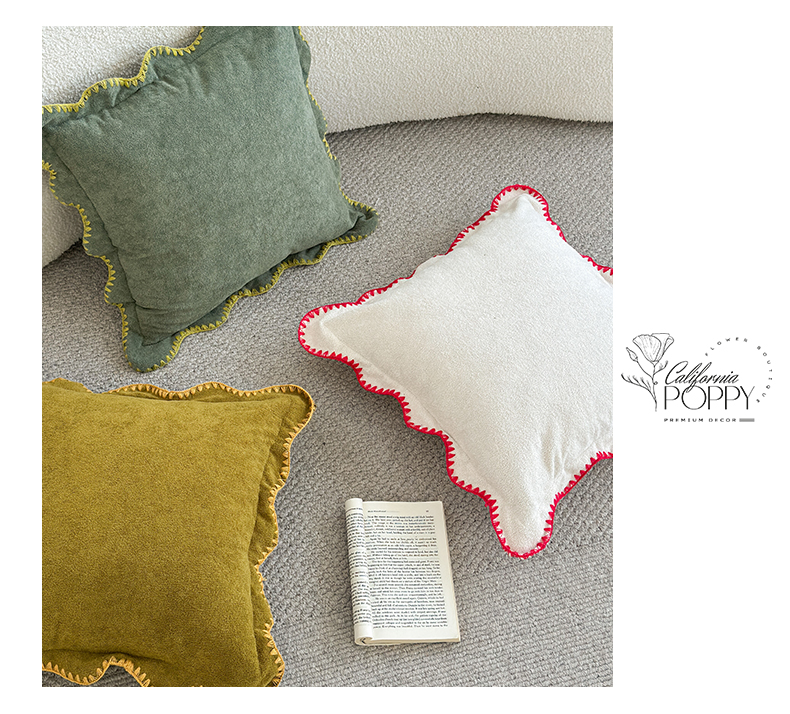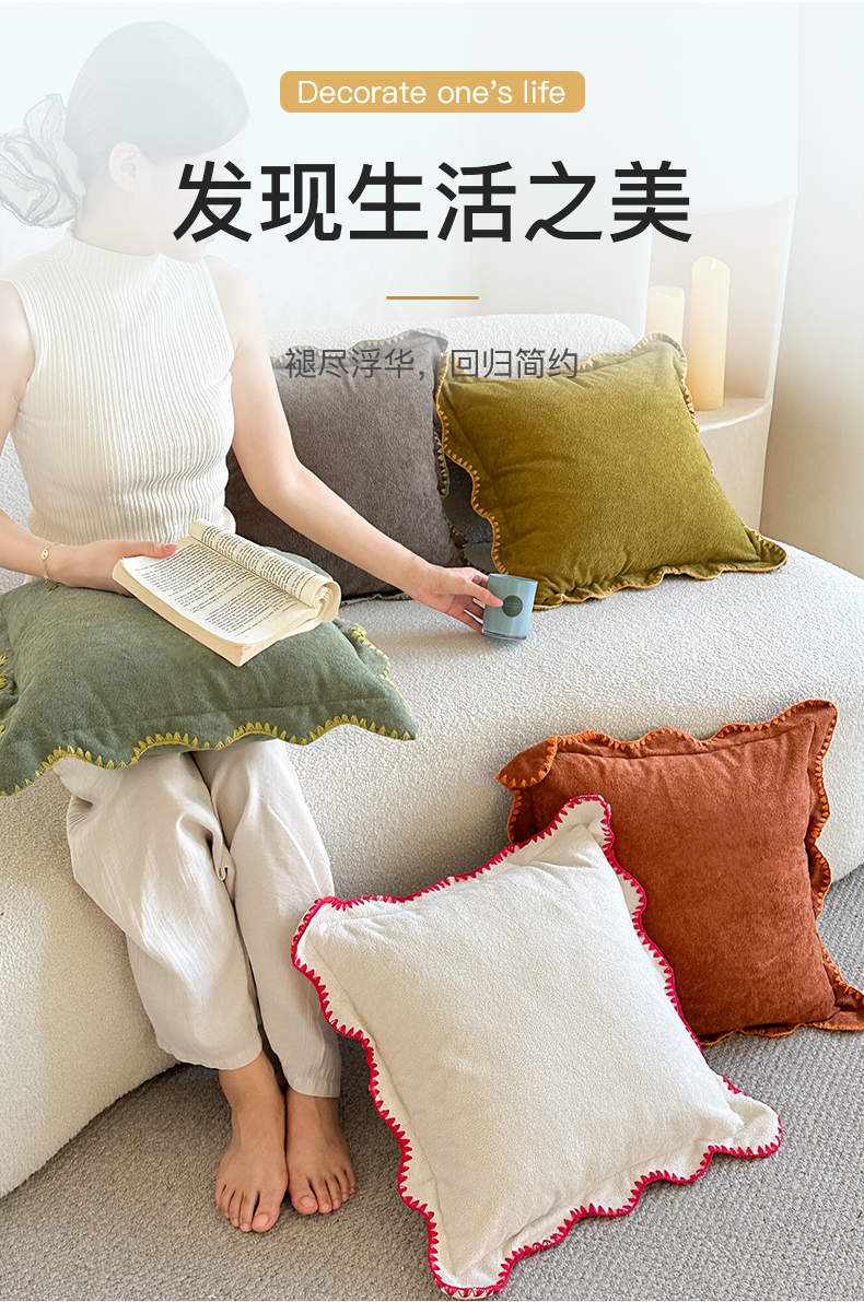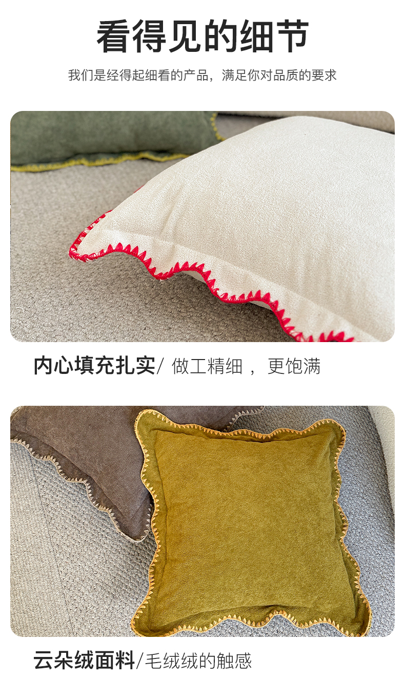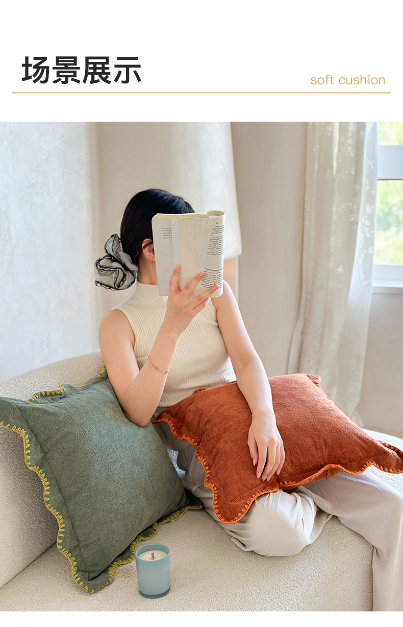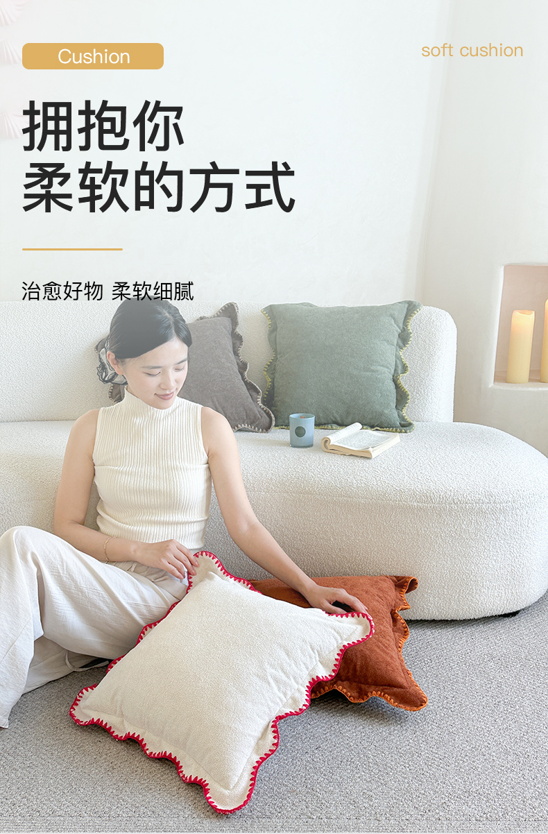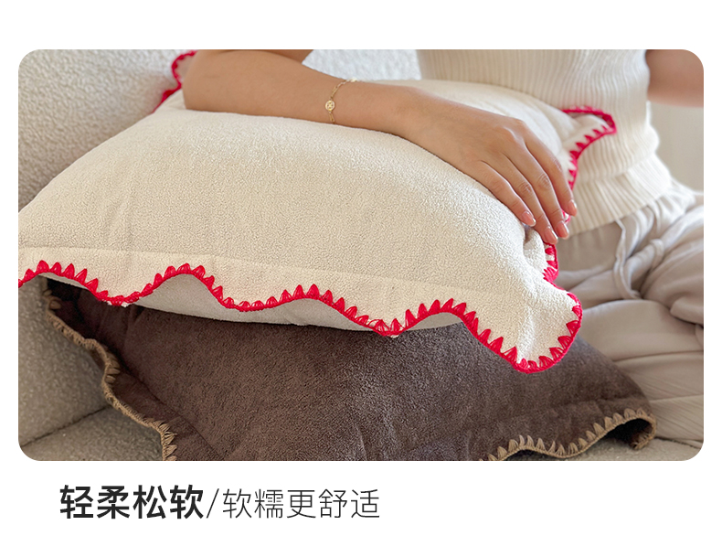 (总)美茉家居 2025新款云朵绒曲边方枕抱枕,草墨灰,枫叶红,芥末黄,米脂白,若竹青