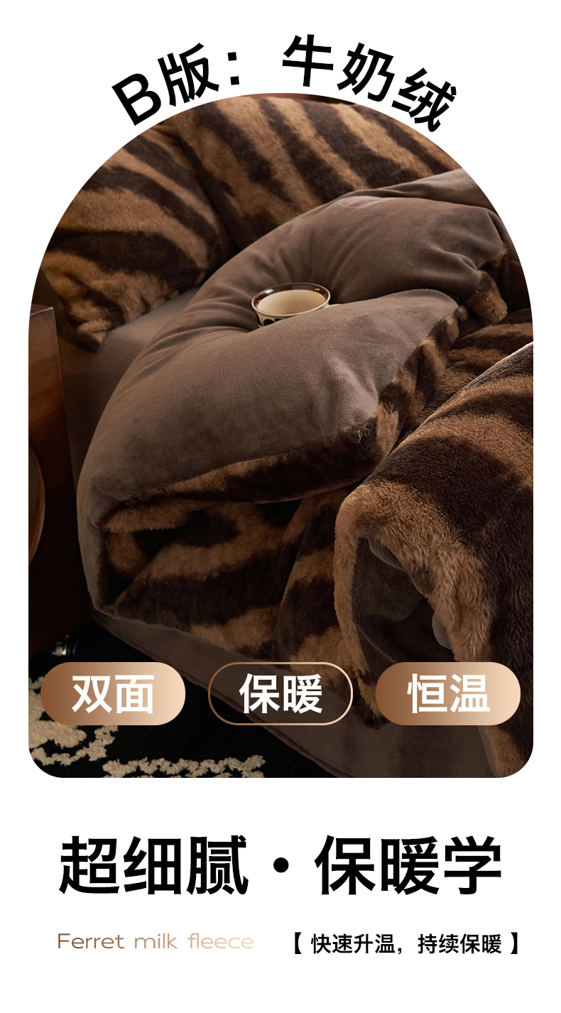 商品名称:金鹰 2025新款暖肤兔毛绒四件套牛奶绒四件套 斑马纹