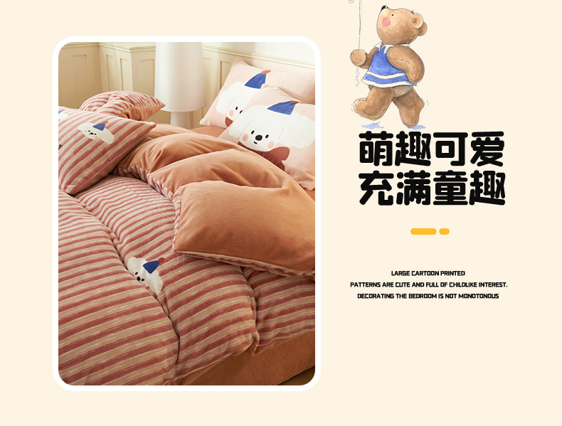 商品名称:(总)金鹰 202新款A类数码印花卡通牛奶绒四件套