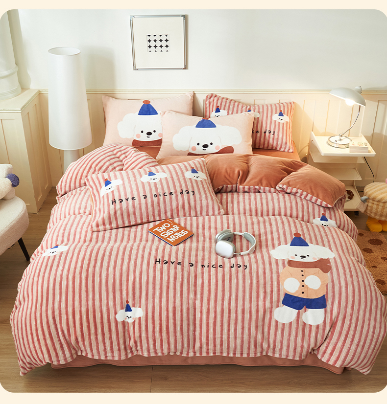 (总)金鹰 202新款A类数码印花卡通牛奶绒四件套