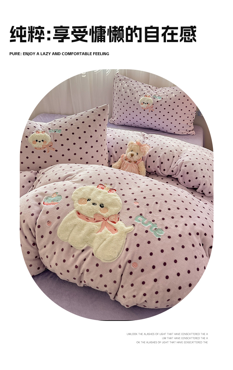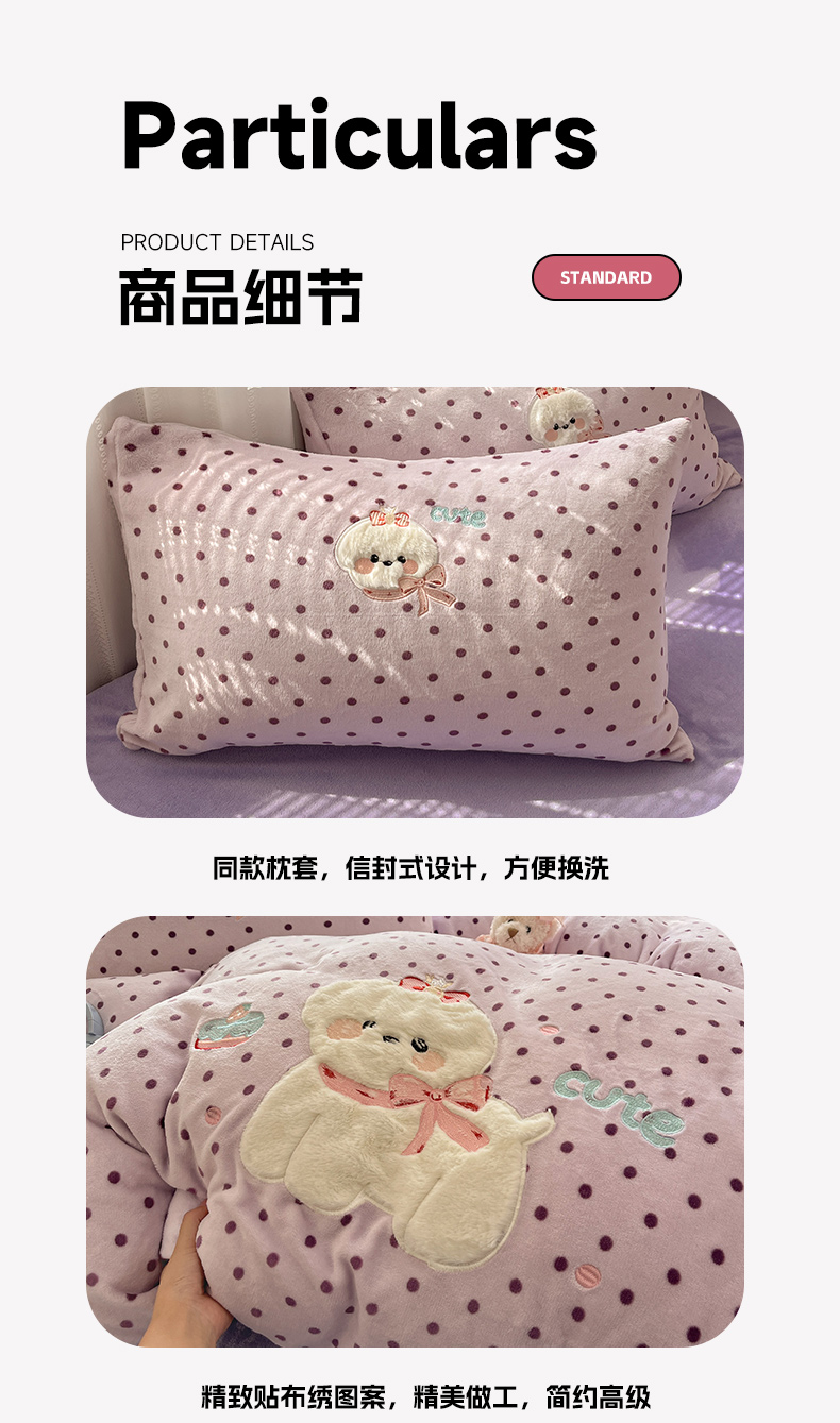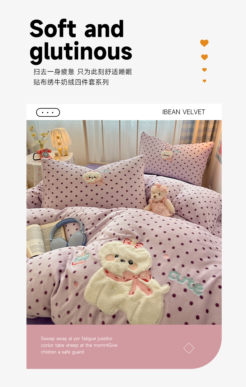 (总)红嘴企鹅 2025新款精致贴布绣牛奶绒四件套,棒棒糖-粉,Bunny兔-粉,Bunny兔-蓝,Bunny兔-紫,Cute狗-粉,Cute狗-蓝,Cute狗-紫