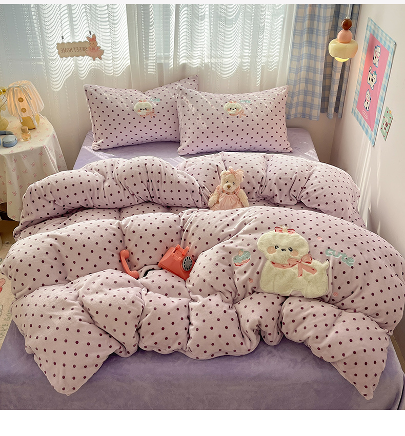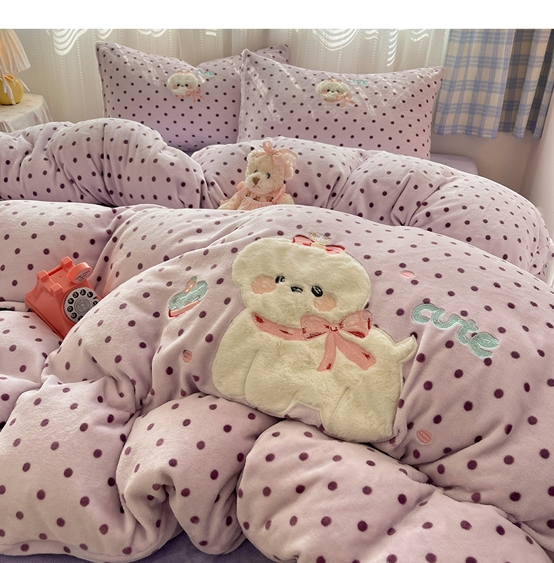 红嘴企鹅 2025新款精致贴布绣牛奶绒四件套 Cute狗-紫