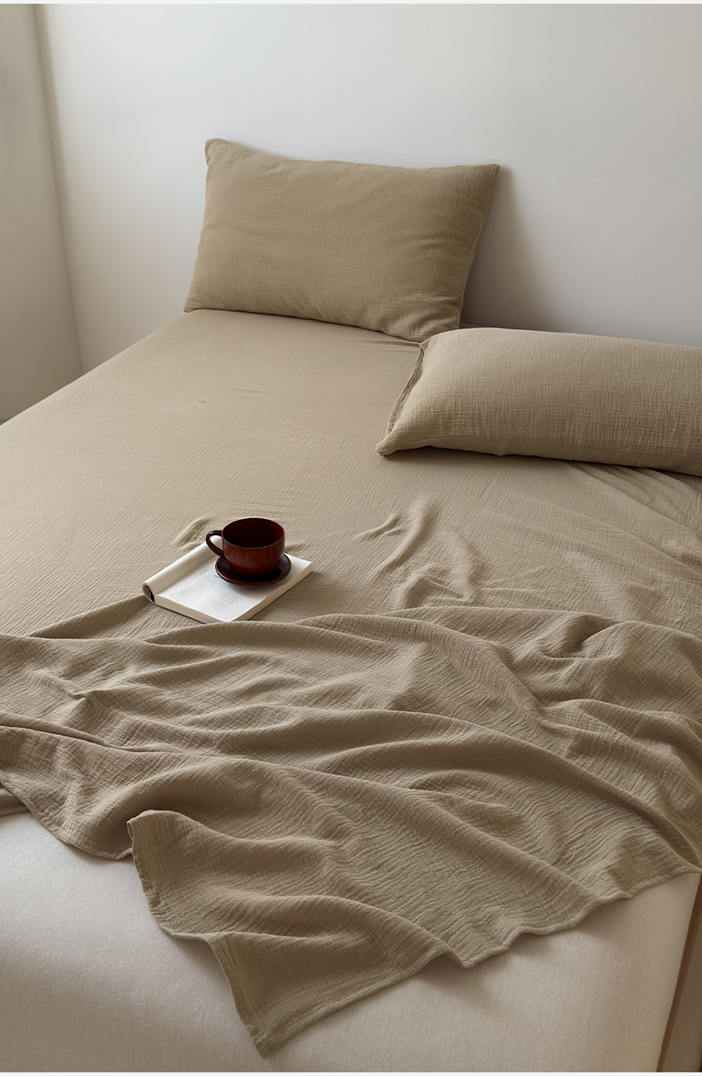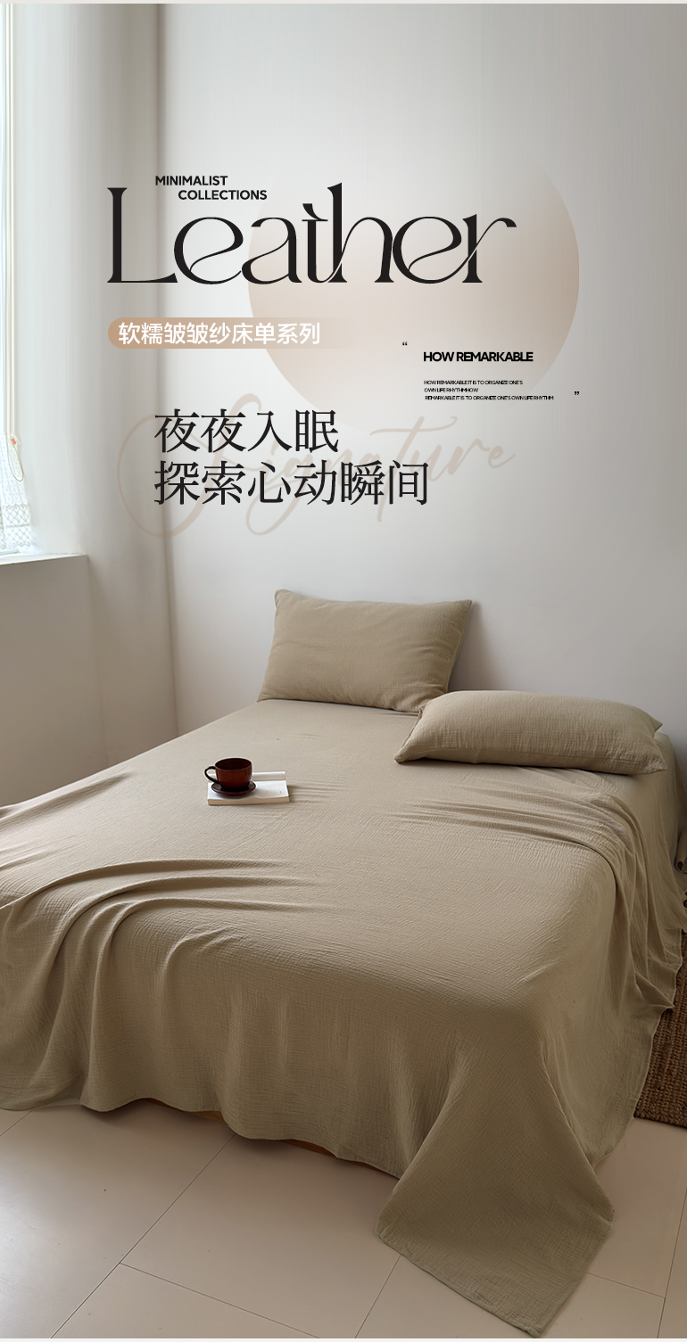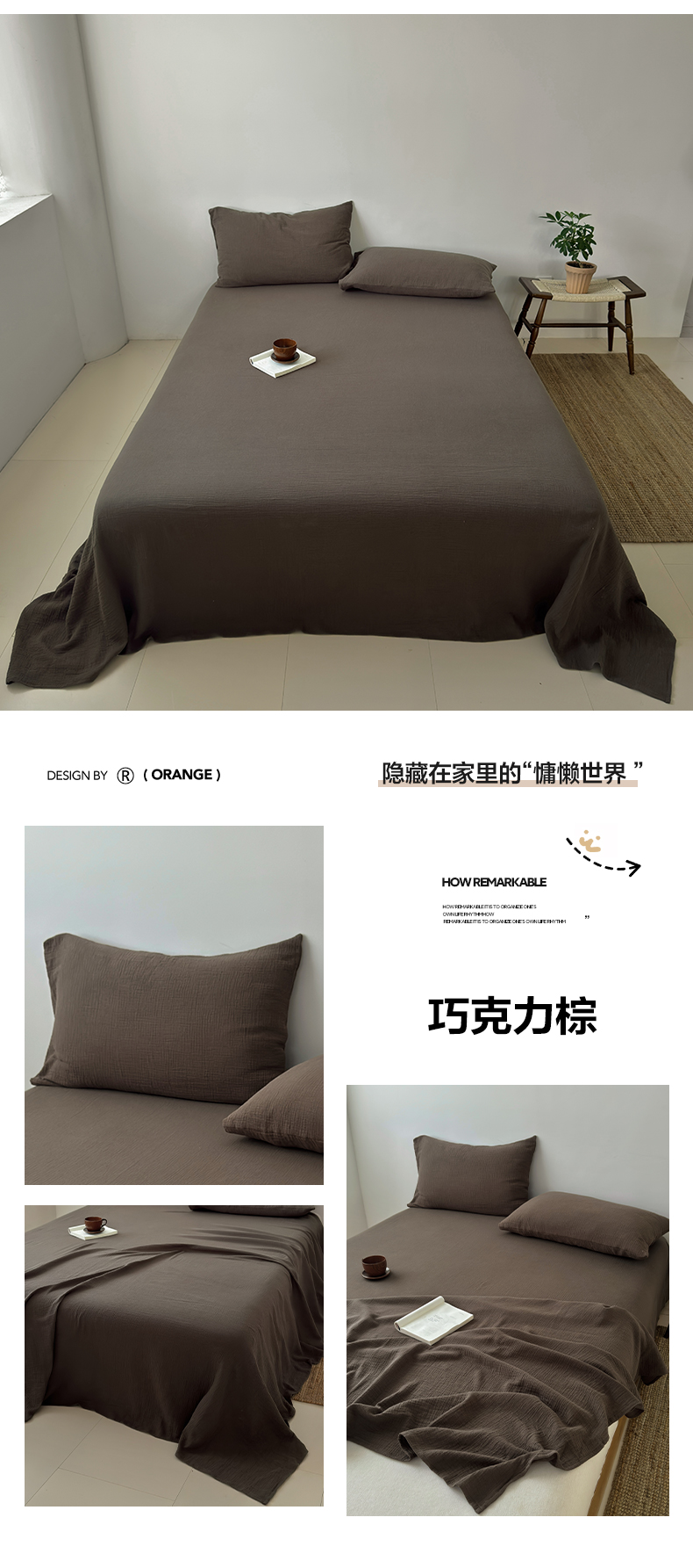(总)玖弘家居 2025新款软糯皱皱纱单品床单系列,安格拉红,香芋紫,巧克力棕,太妃棕,杏仁,橄榄绿,奶白,黑巧,燕麦