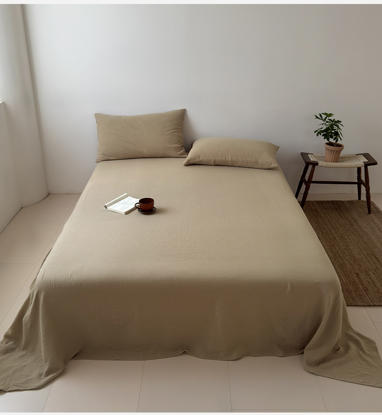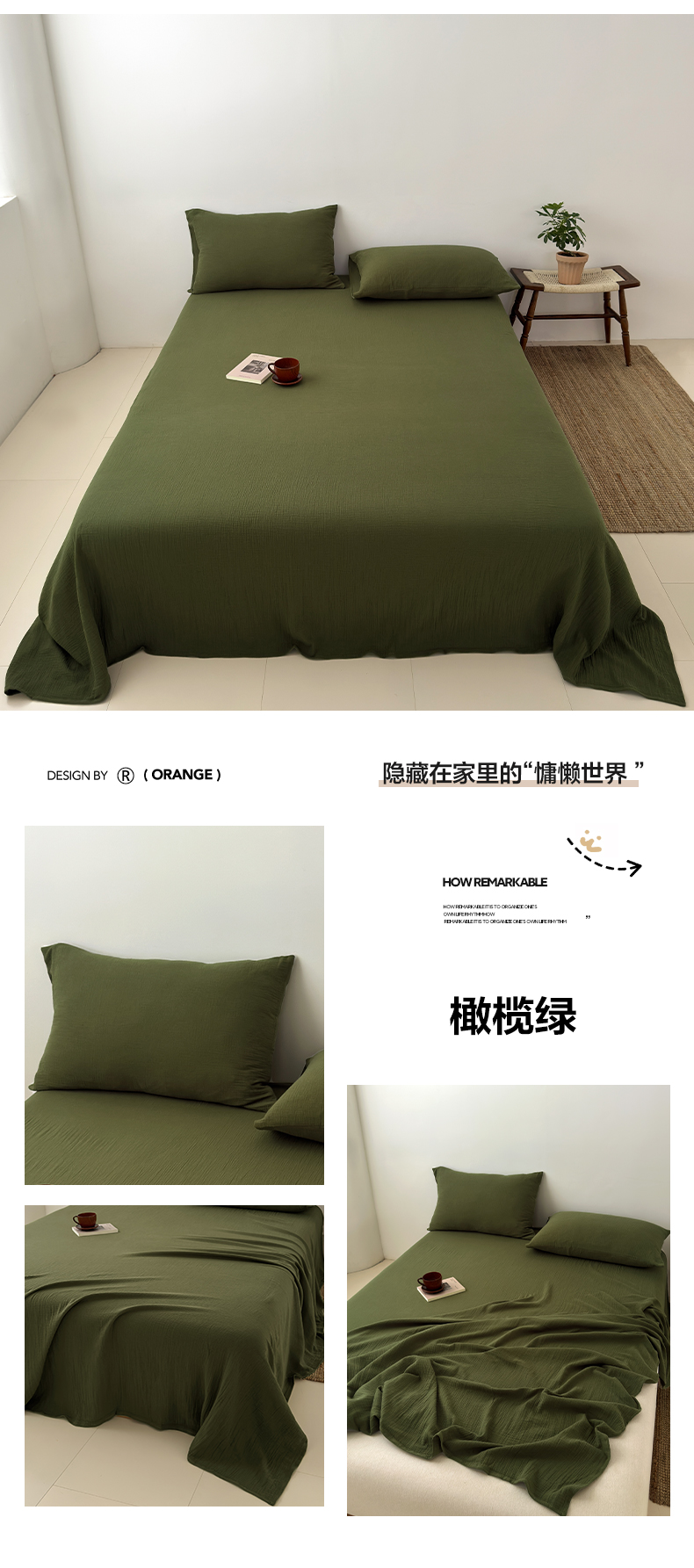 玖弘家居 2025新款软糯皱皱纱单品床单系列 橄榄绿