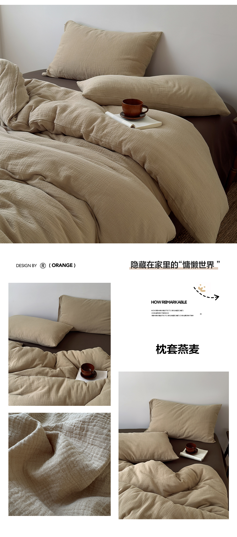 玖弘家居 2025新款软糯皱皱纱单品枕套系列 燕麦