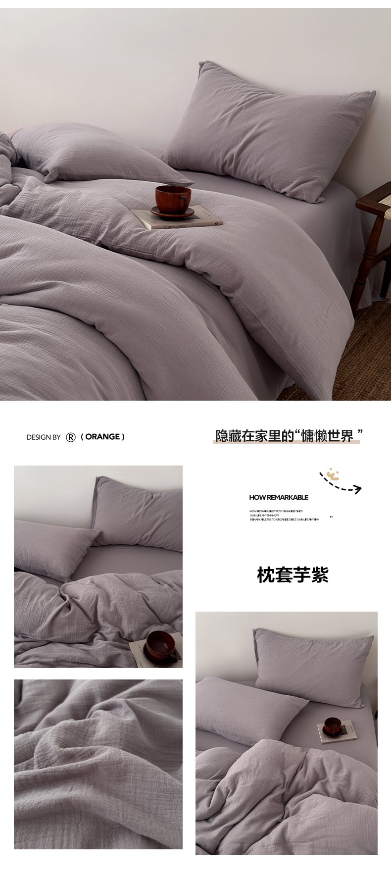 (总)玖弘家居 2025新款软糯皱皱纱单品被套系列,安哥拉红,黑巧,燕麦,杏仁,巧克力棕,奶白,太妃棕,橄榄绿,芋紫,组合