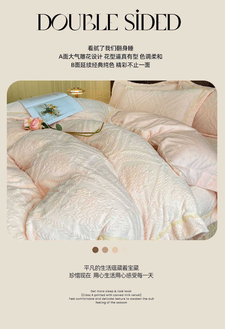 (总)美伦美焕 2025新款加厚雕花绒床盖款四件套-浅叶,浅叶-粉玉,浅叶-卡其,浅叶-绅士灰,浅叶-蔚蓝,浅叶-胭脂红