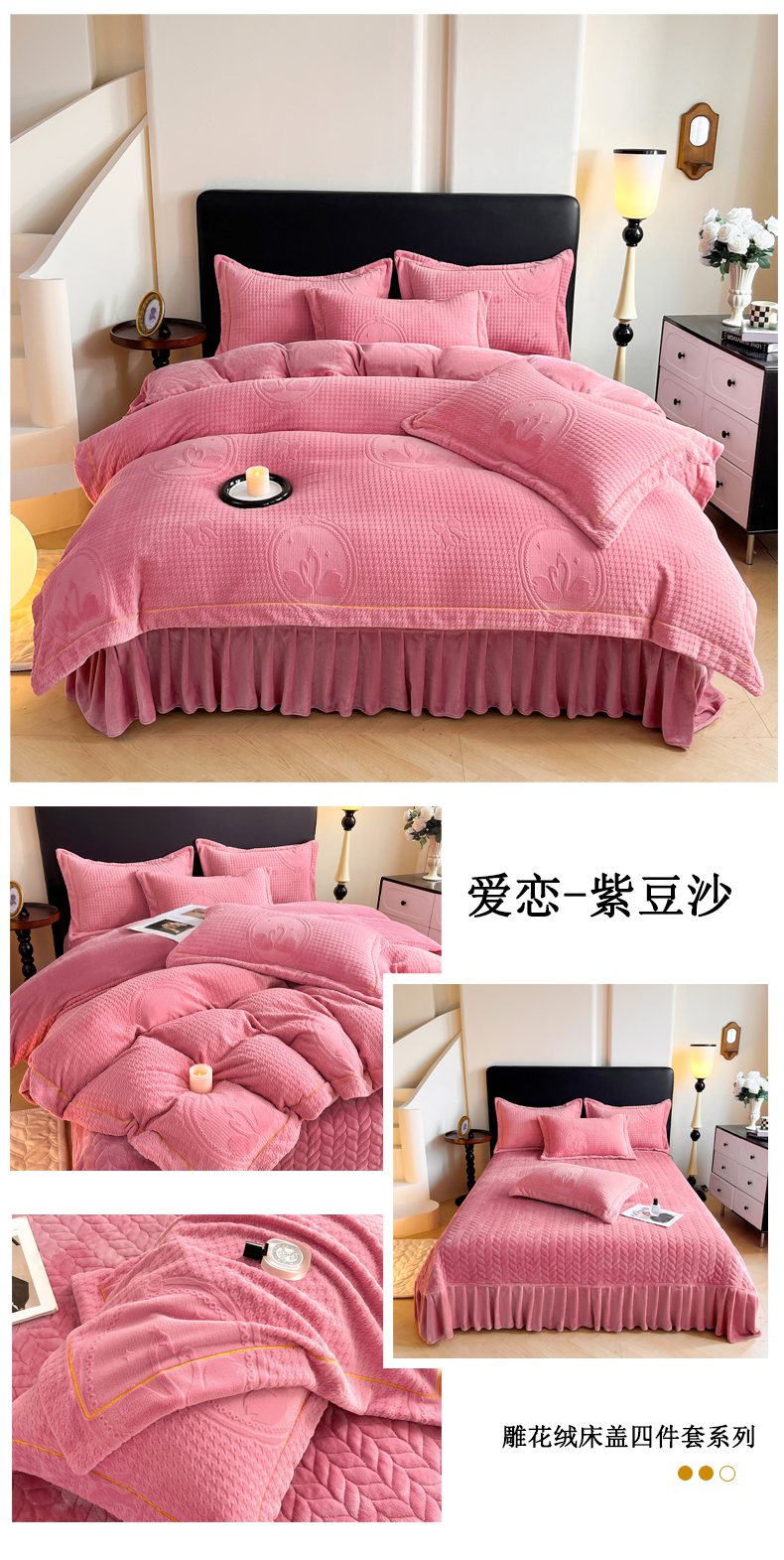 (总)代芙家纺 2025新款宝宝绒夹棉床盖款四件套,甜心-粉豆沙,甜心-海蓝,甜心-火山红,甜心-魔力紫,甜心-优雅灰