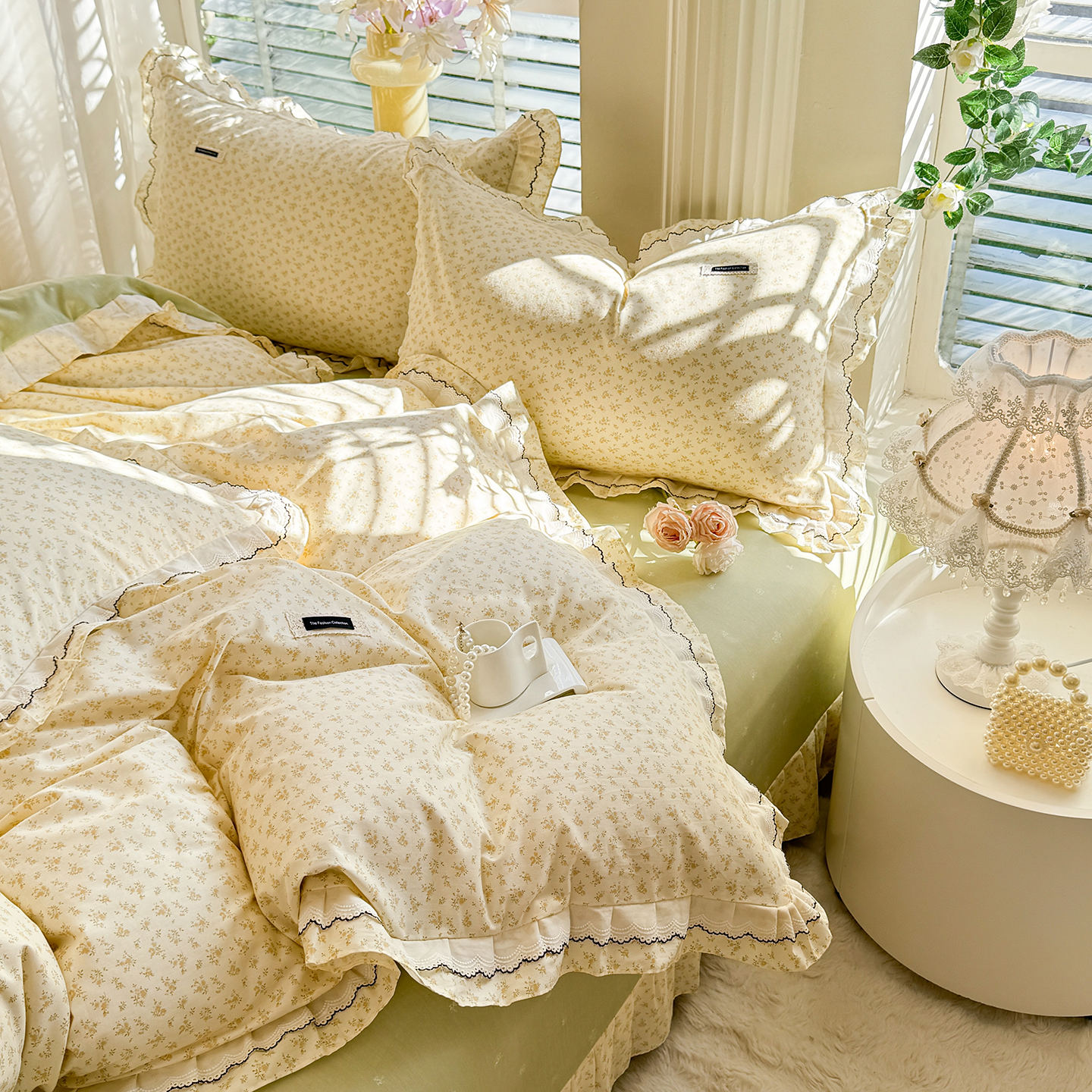 (总)艾唯希家纺 2025新款全棉双层花边四件套纯棉小碎花10个花型-花边系列,春意萌,恋之晴空,奶芙蓉-绿,奶芙蓉-粉,林间物语-绿,林间物语-紫,花冉,花艺漫漫,梳璃,雾里花