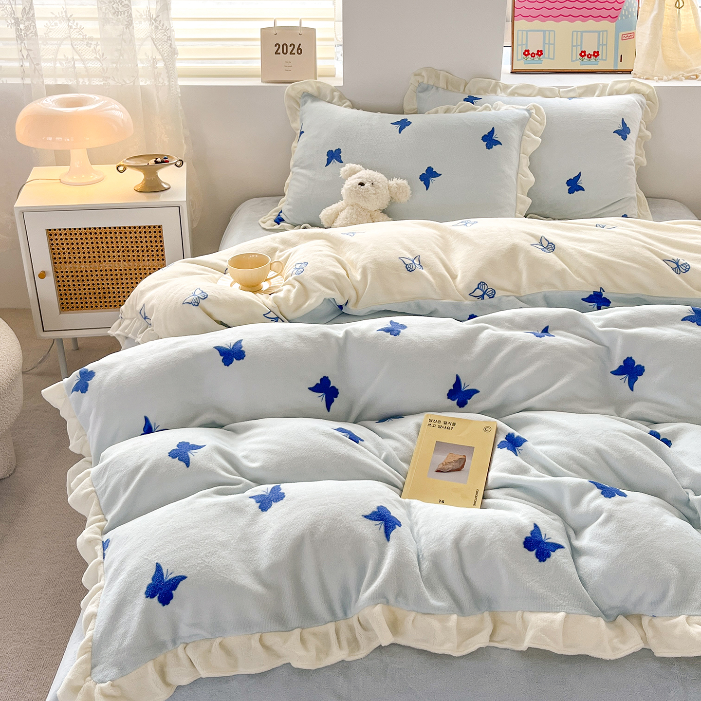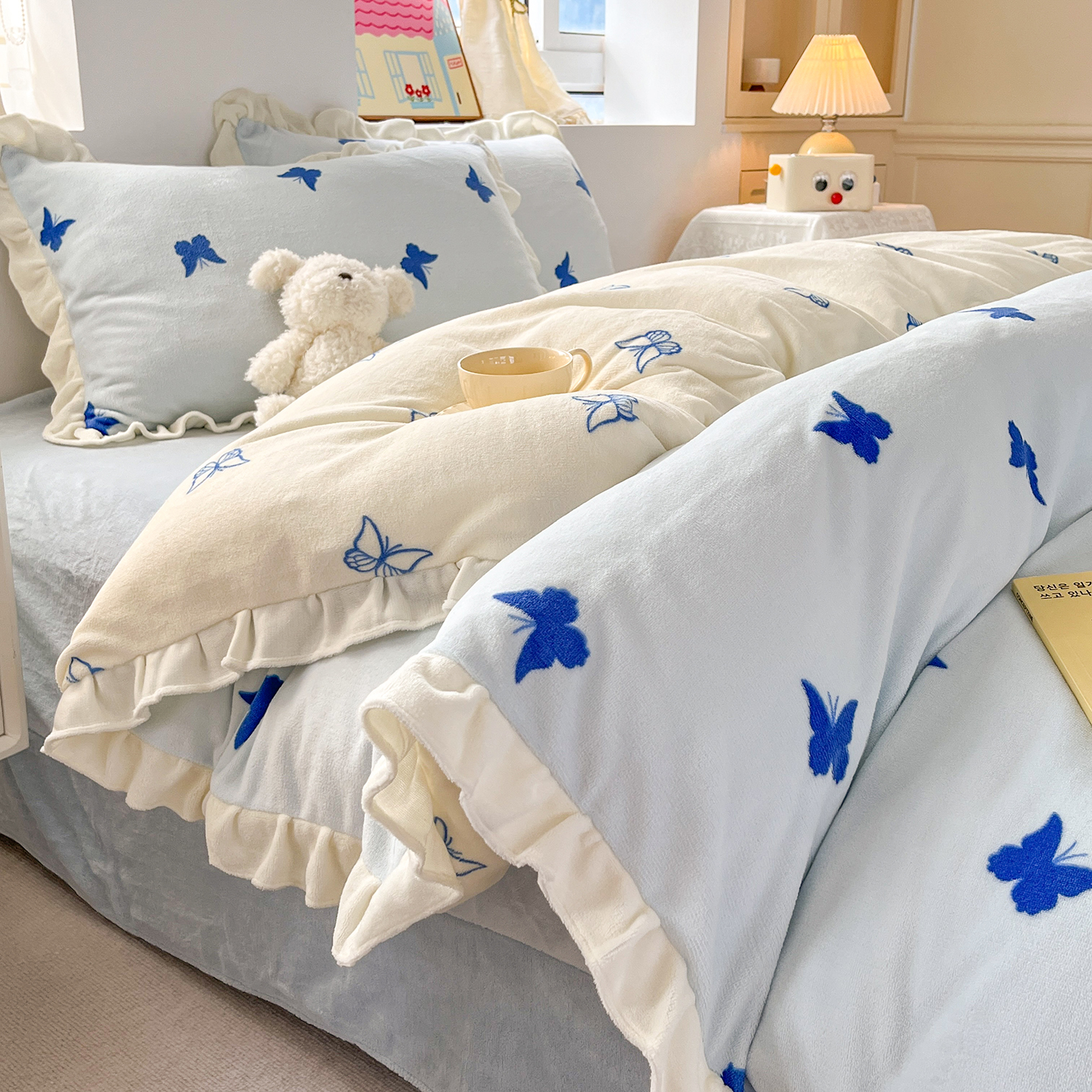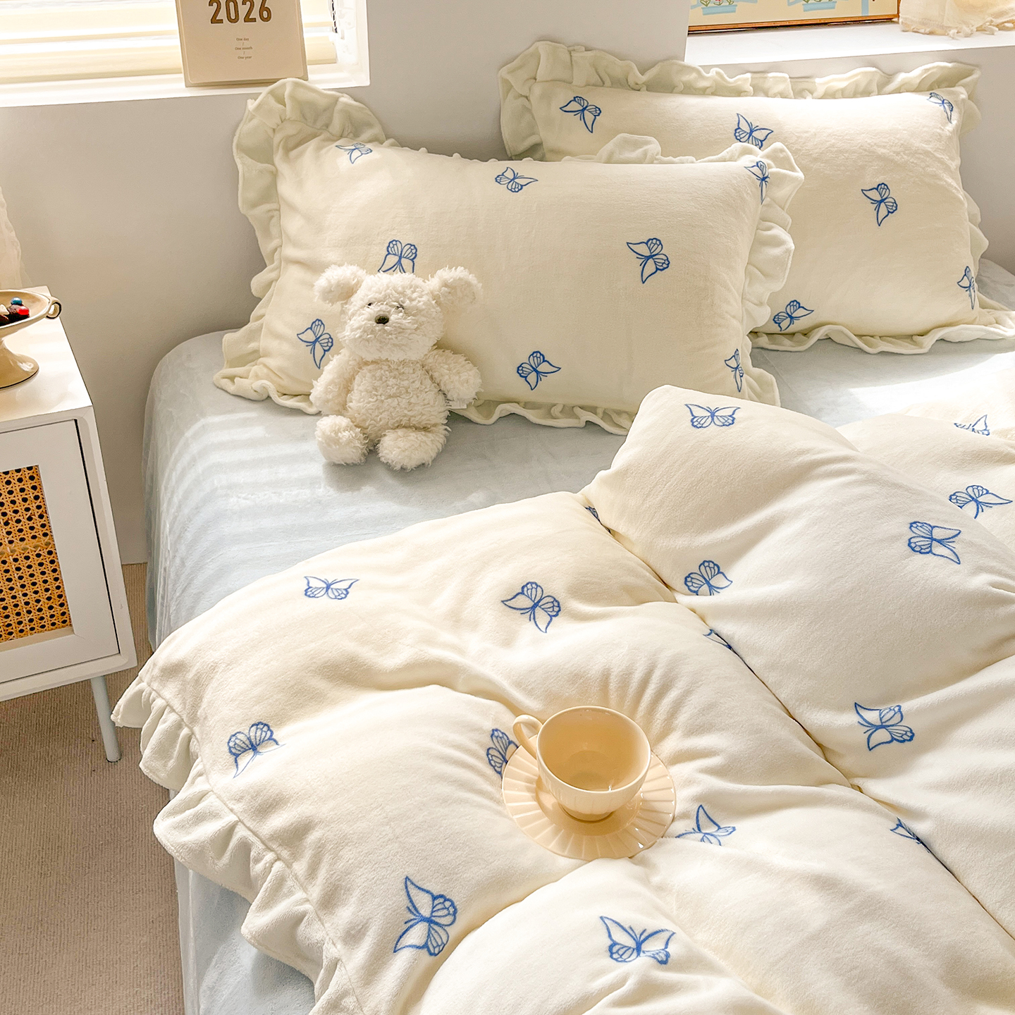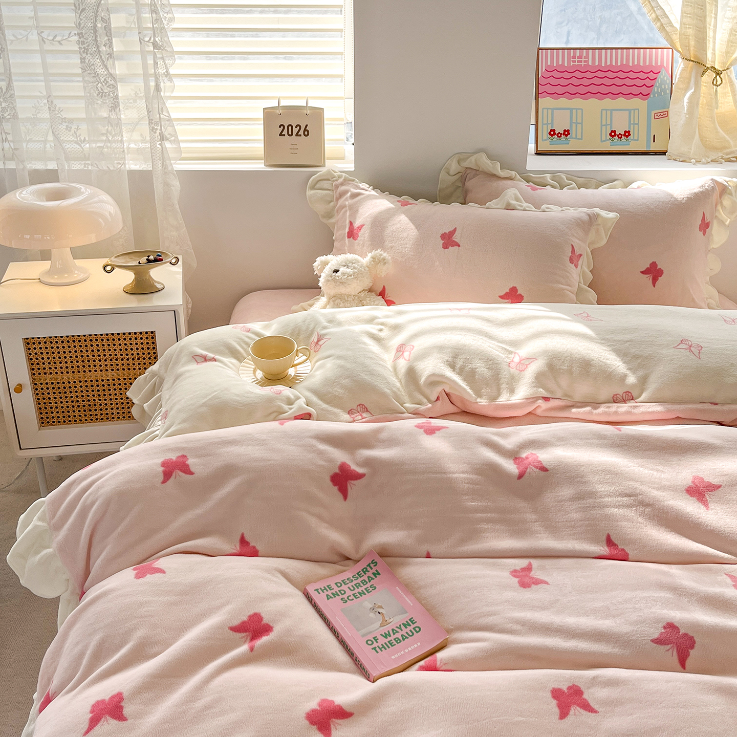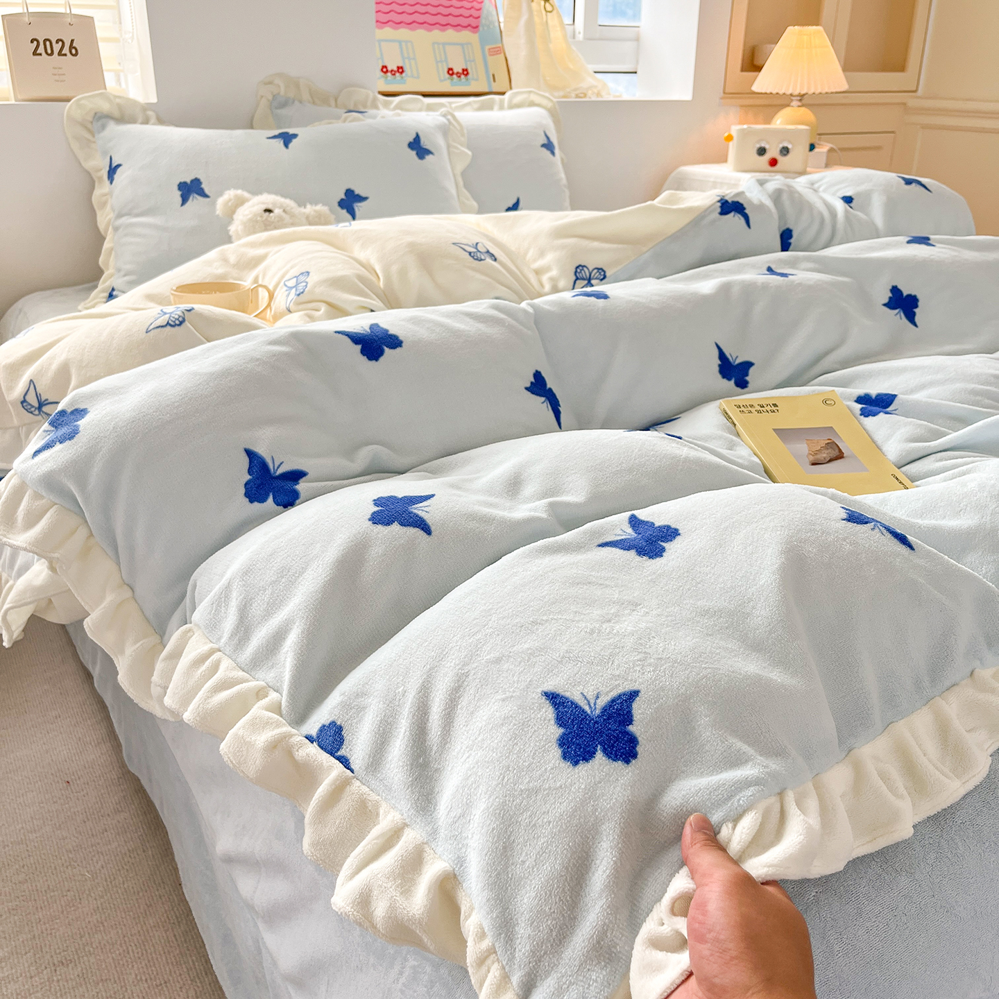 当前位置: 91家纺网 > 商品网购 > 床品套件 > 四件套 > 牛奶绒四件套 > 麦朵家居 2025新款10斤重床盖款花边牛奶绒四件套雕花绒法莱绒四件套兔兔绒四件套床笠三件套-梦蝶 梦蝶白粉