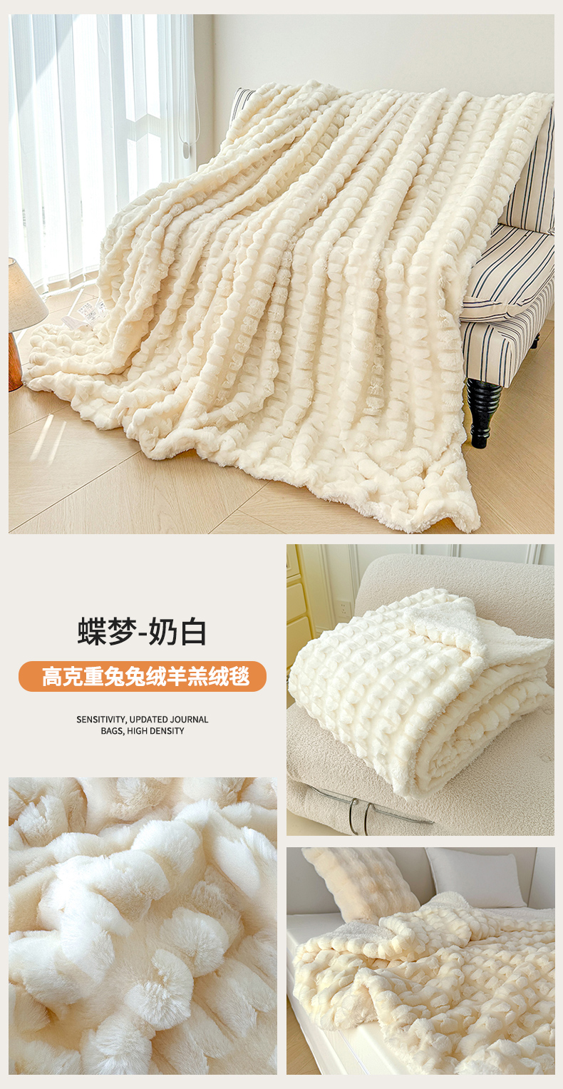 商品名称:乐坊 2025新款高克重蝶梦兔毛毯羊羔绒毛毯 组合