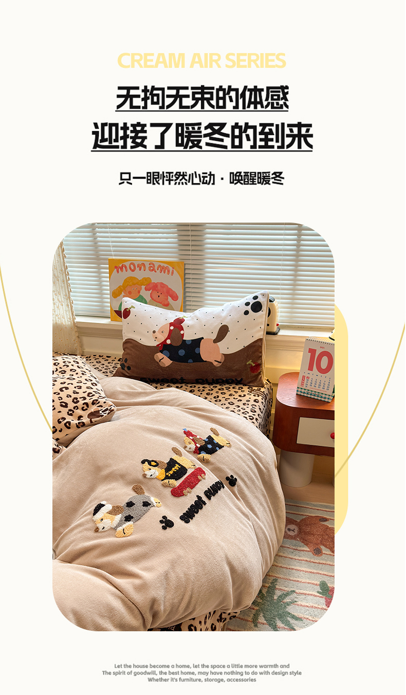 当前位置: 91家纺网 > 商品网购 > 床品套件 > 四件套 > 牛奶绒四件套 > 乐童家纺 2025新款小清新牛奶绒毛巾绣四件套-第二波 面包腊肠狗