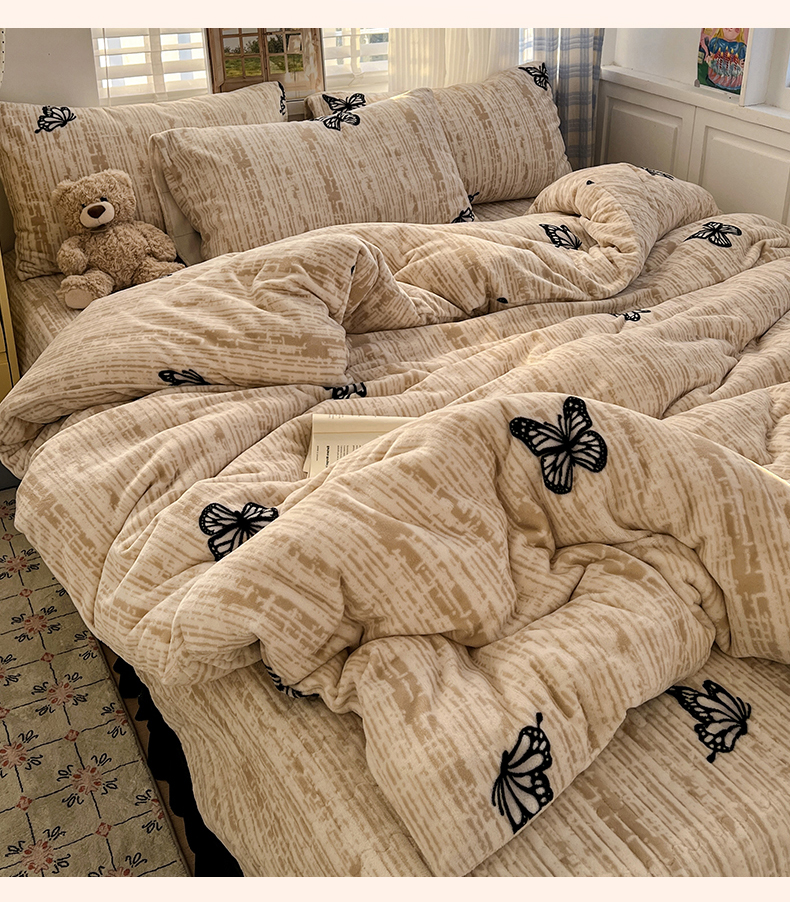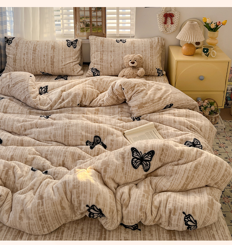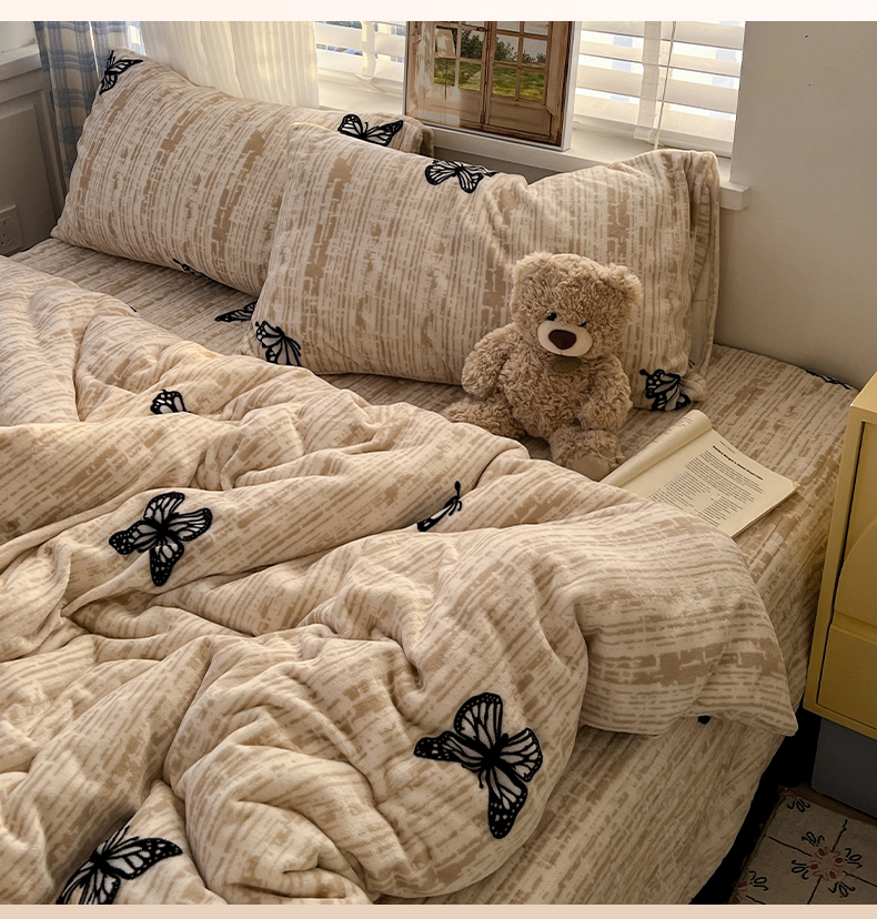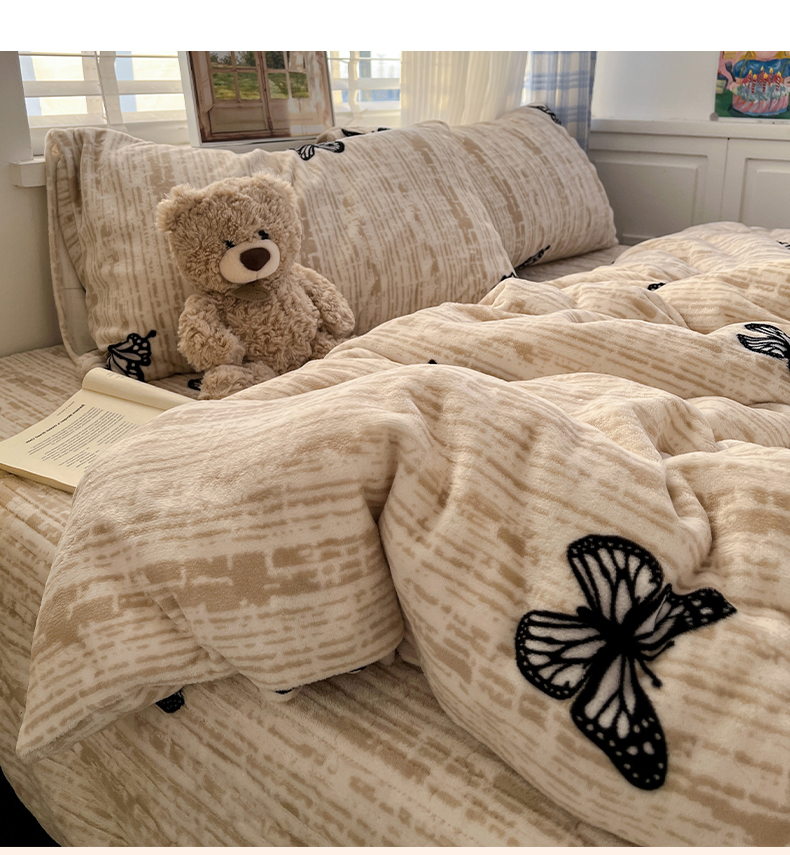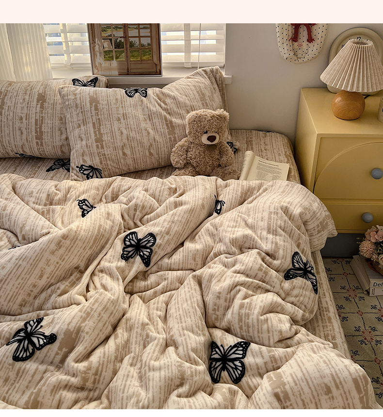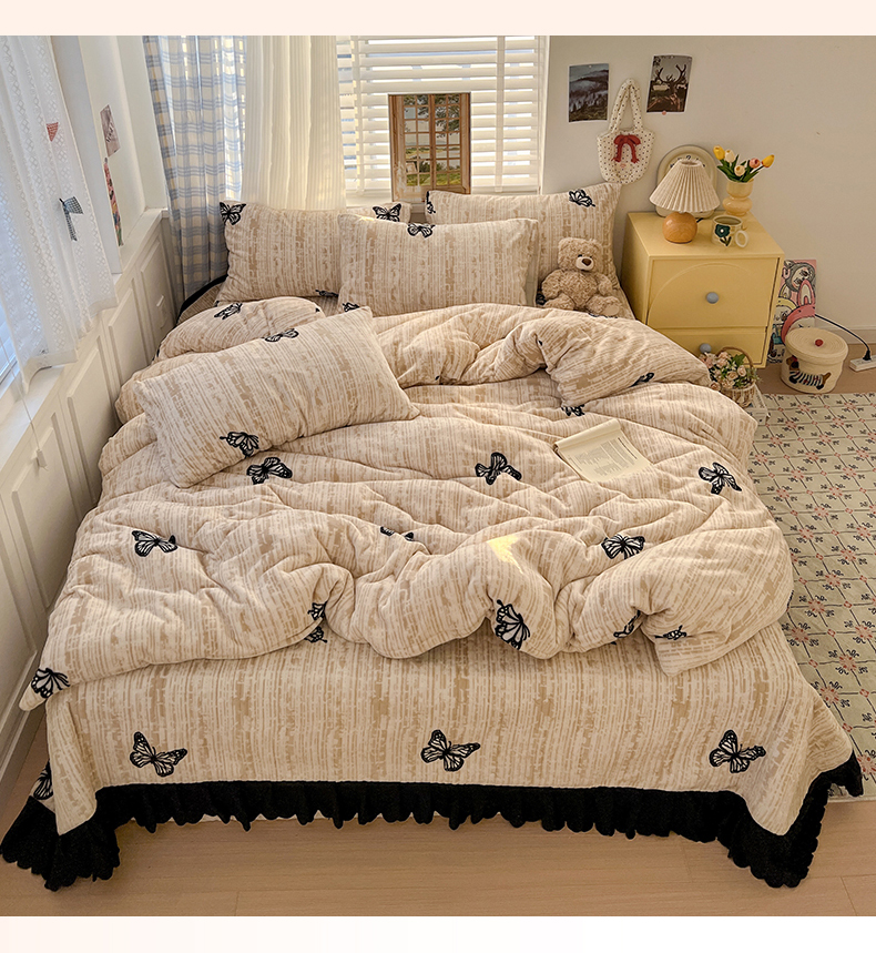 当前位置: 91家纺网 > 商品网购 > 床品套件 > 四件套 > 牛奶绒四件套 > 鑫利来家纺 2025新款牛奶绒加厚印花法式赫本风花边床盖四件套 床盖款-法式蝴蝶