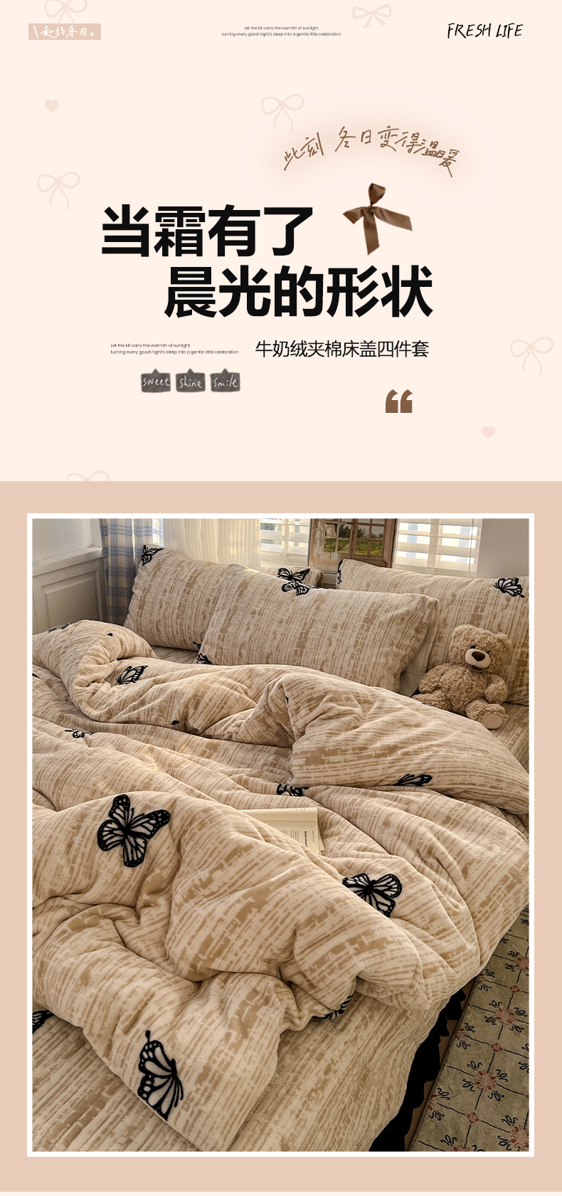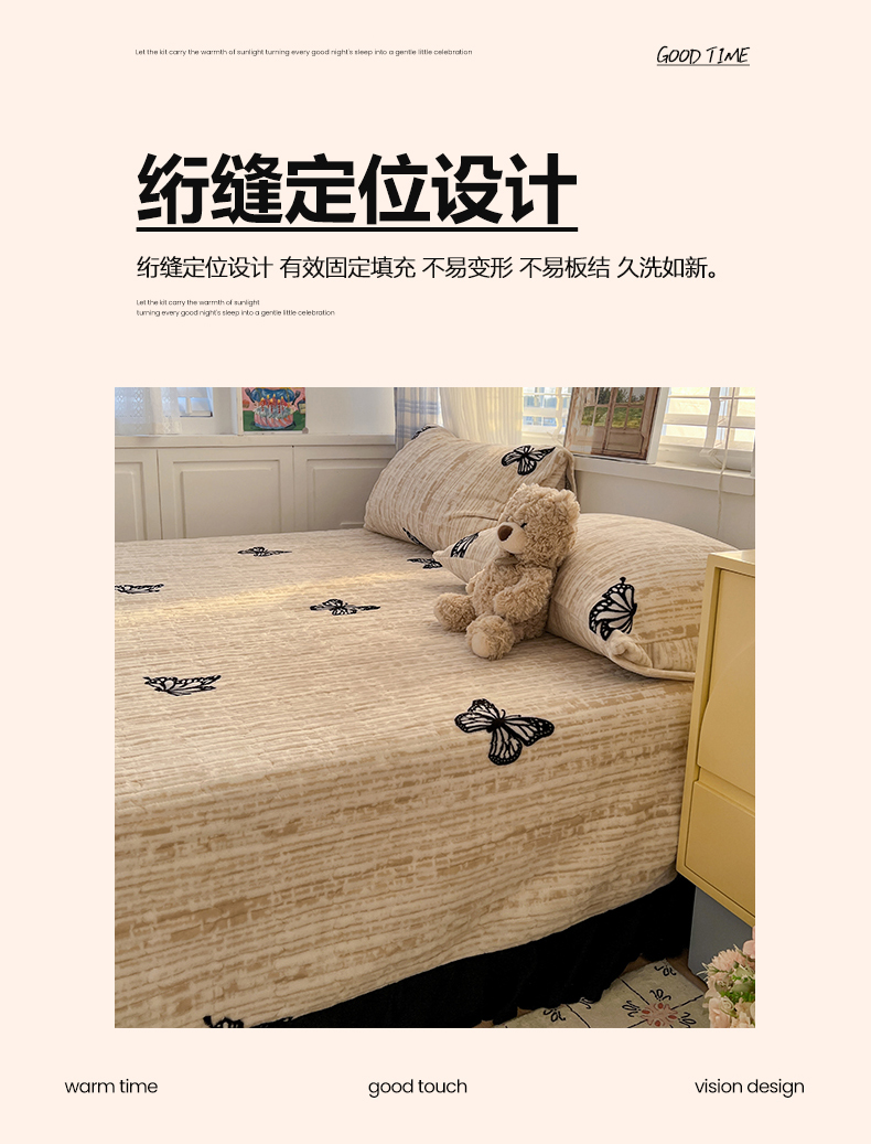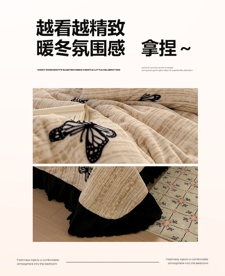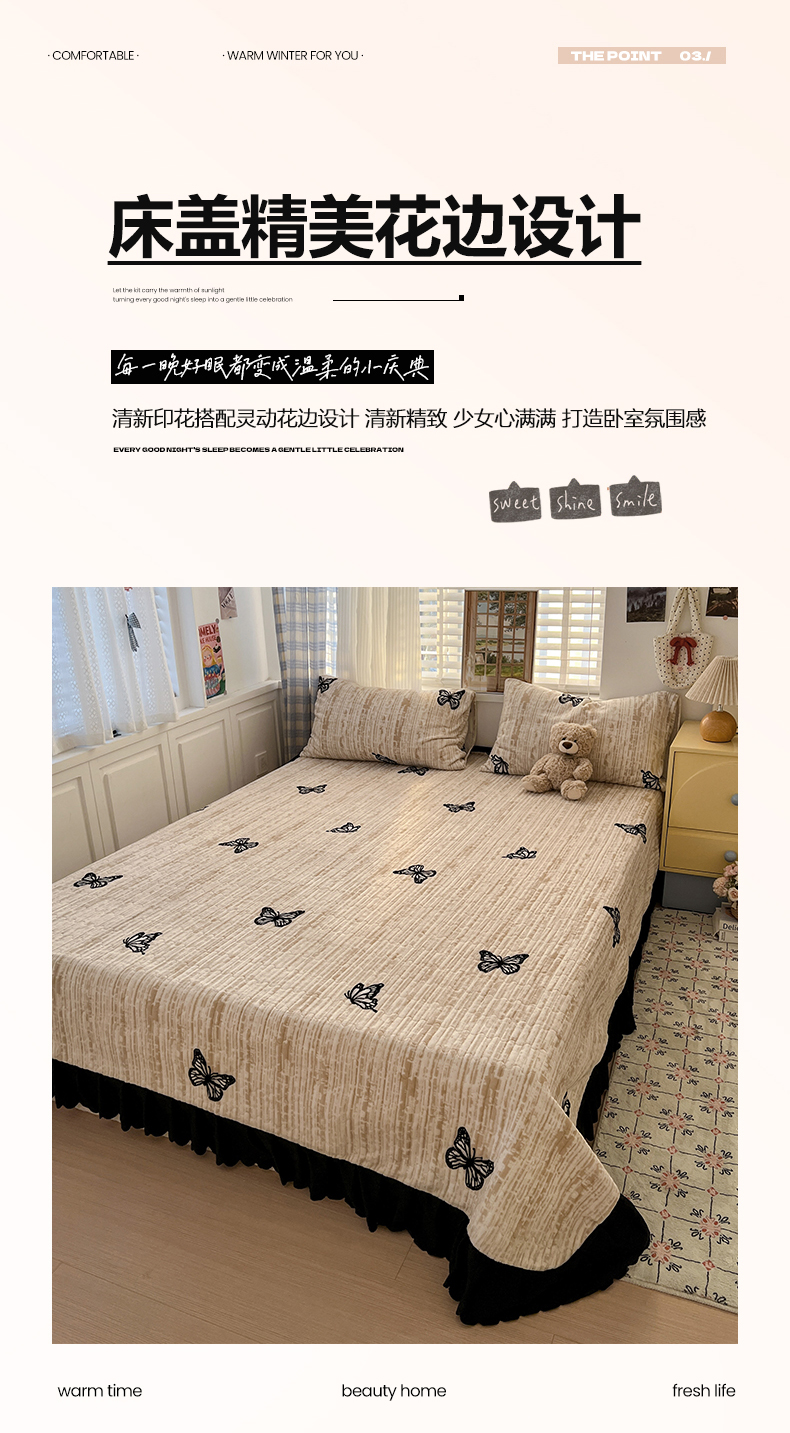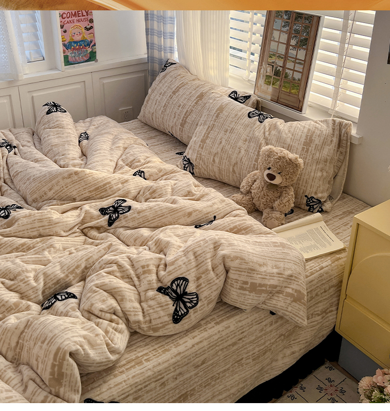当前位置: 91家纺网 > 商品网购 > 床品套件 > 四件套 > 牛奶绒四件套 > 鑫利来家纺 2025新款牛奶绒加厚印花法式赫本风花边床盖四件套 床盖款-法式蝴蝶