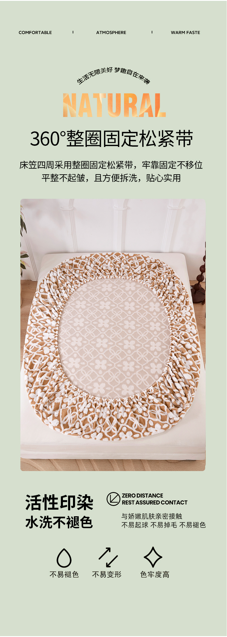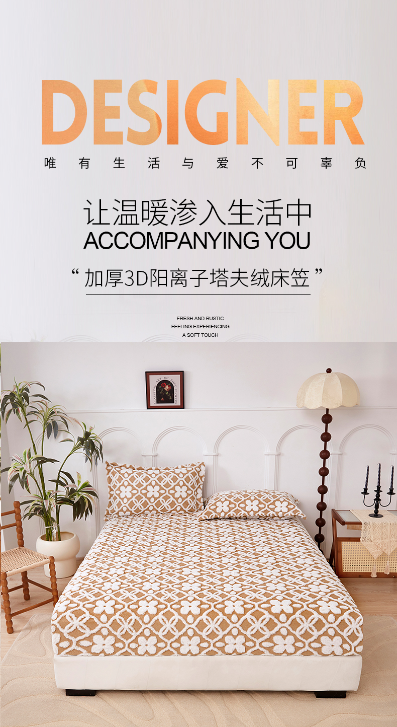 商品名称:云玲时尚 2025新款阳离子塔芙绒床笠 菱格深咖