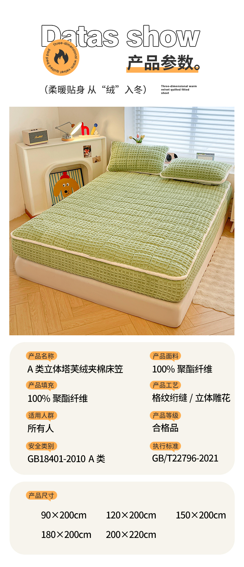 (总)予梦家纺 2025新款塔芙绒加厚夹棉床笠床垫保护套,萌萌熊 苍蓝,萌萌熊 果绿,萌萌熊 卡其,萌萌熊 星灰,星梦格 苍蓝,星梦格 果绿,星梦格 卡其,星梦格 星灰