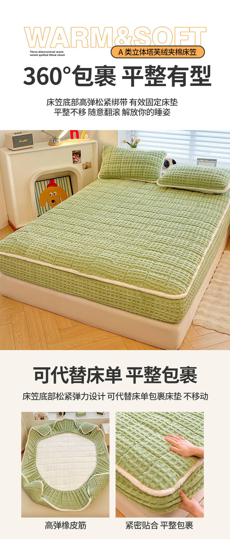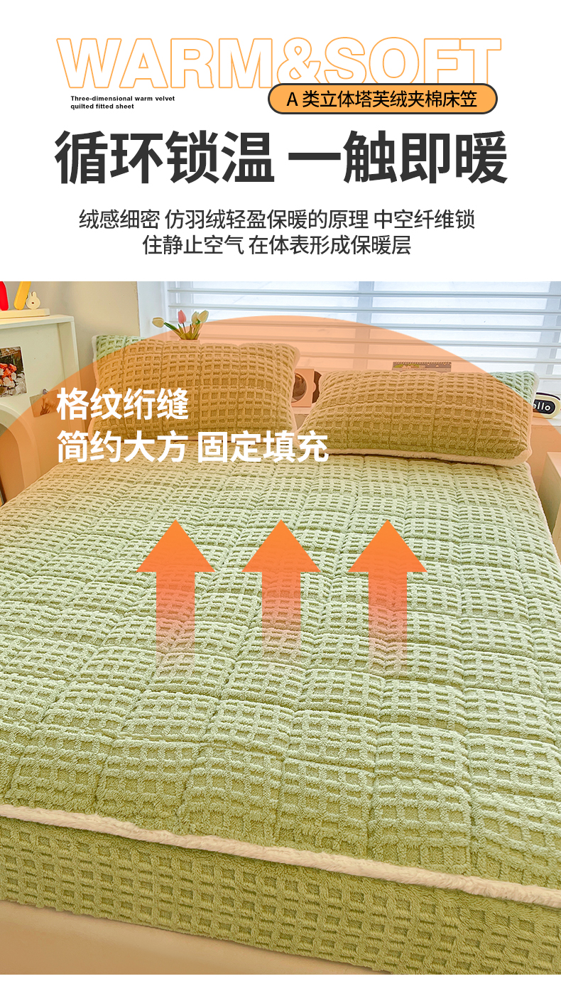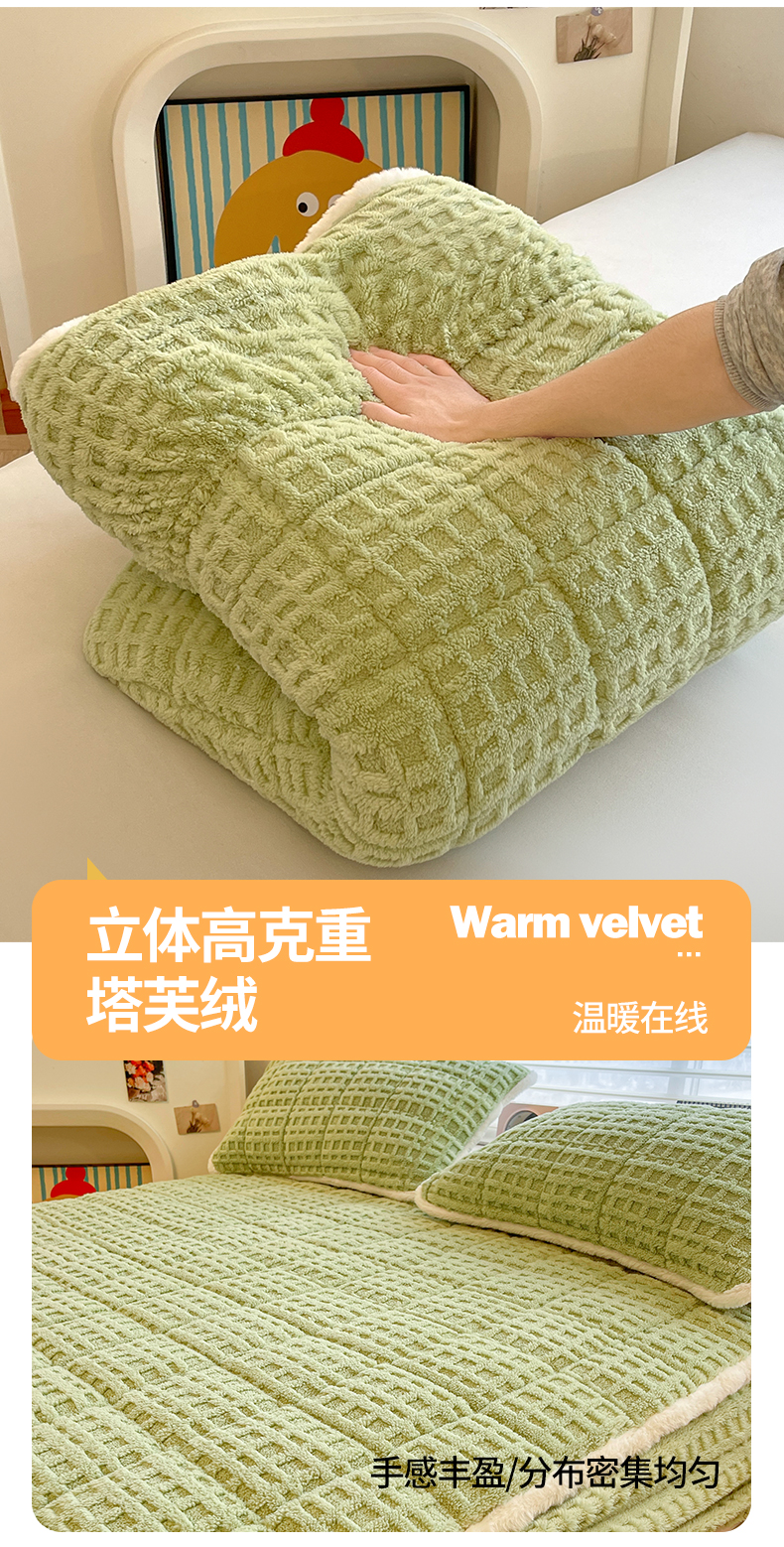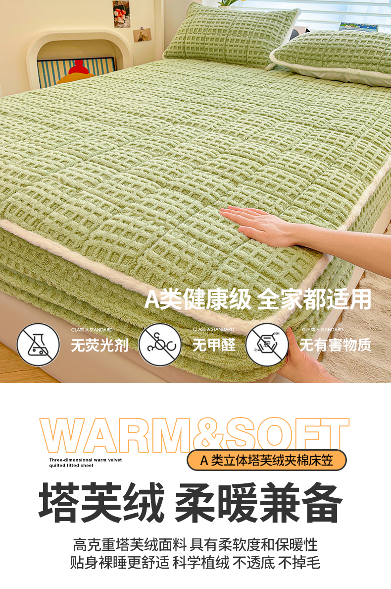 予梦家纺 2025新款塔芙绒加厚夹棉床笠床垫保护套 星梦格 果绿