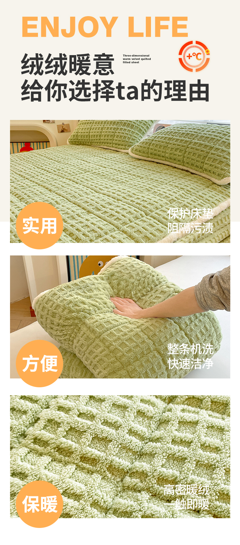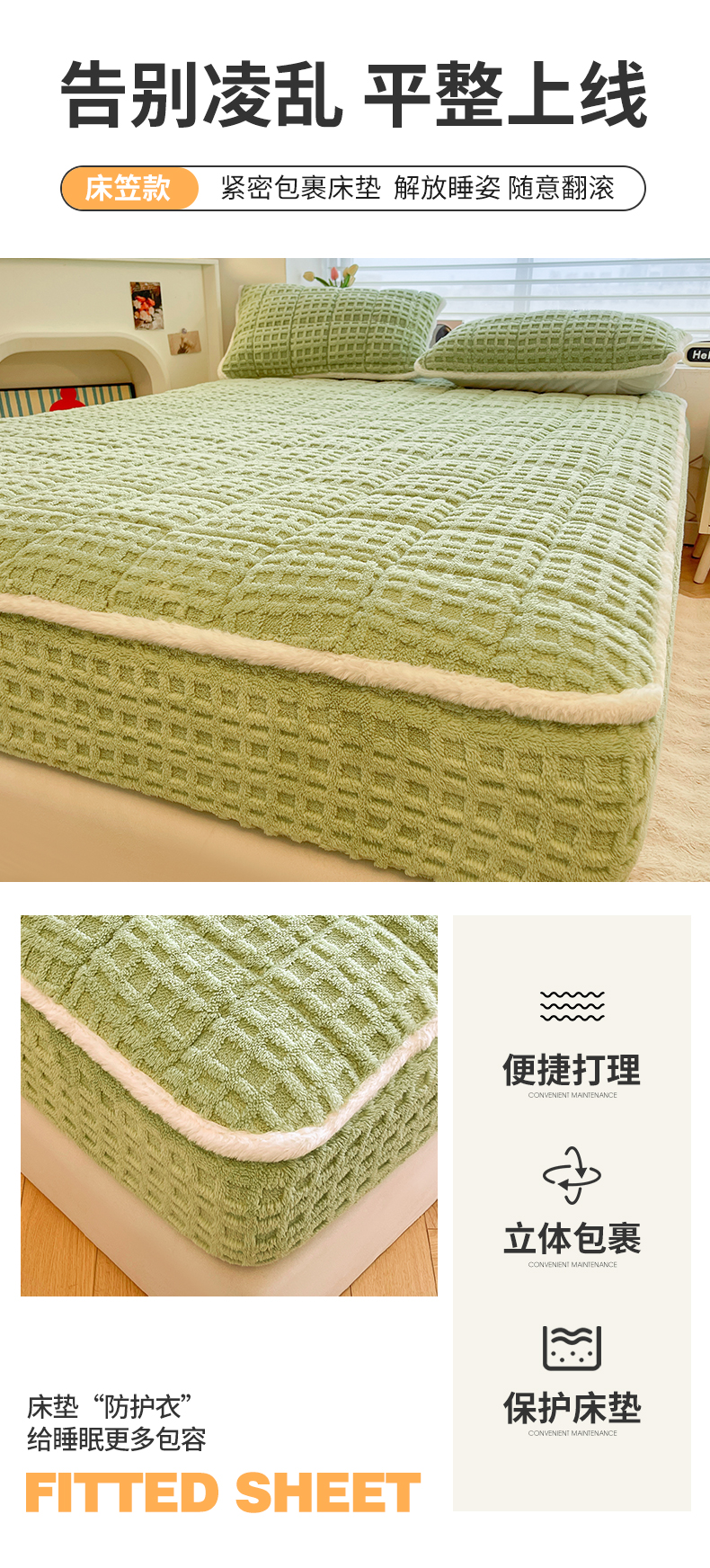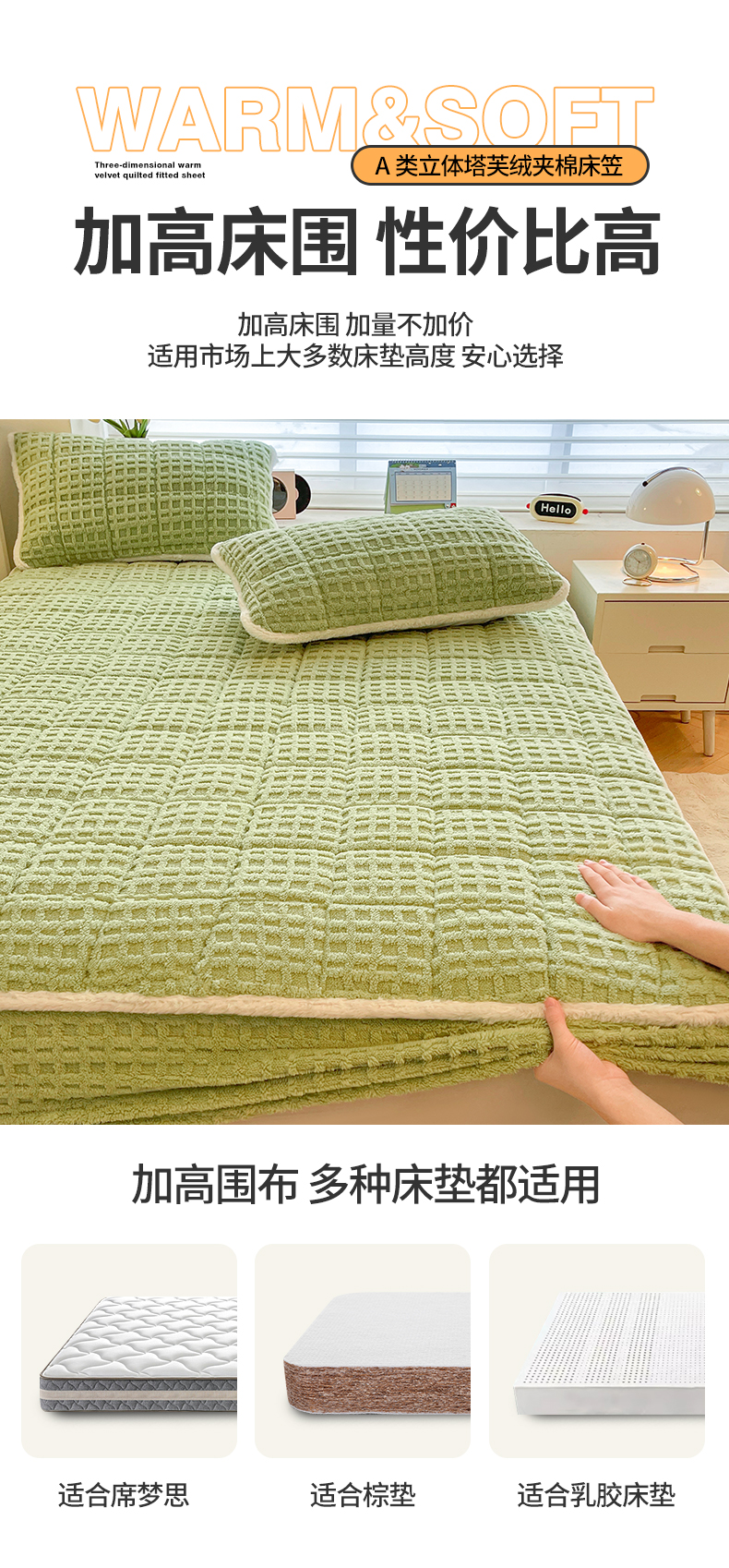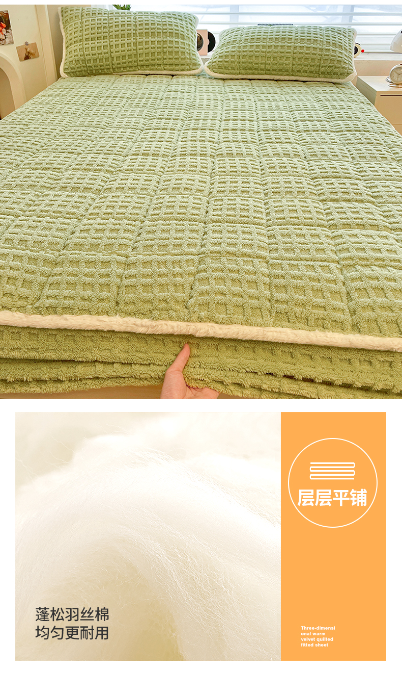 商品名称:予梦家纺 2025新款塔芙绒加厚夹棉床笠床垫保护套 星梦格 果绿