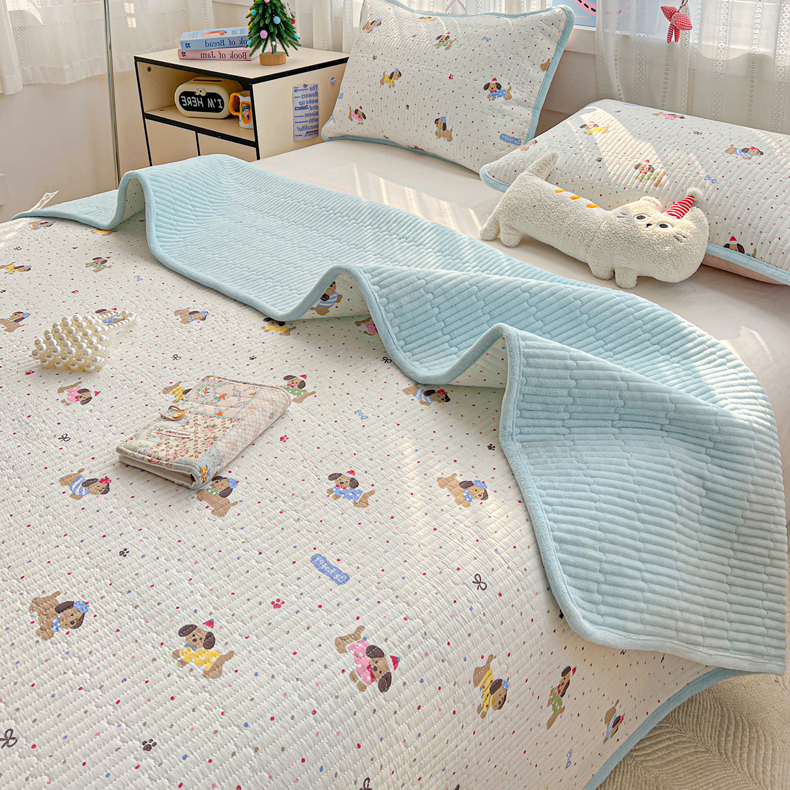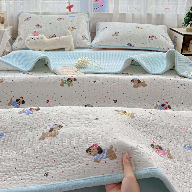 恒尚居 2025新款双层纱牛奶绒床盖双面两用夹棉床单床垫-秋冬款 四季通用 波点狗狗【A双层纱-B牛奶绒】