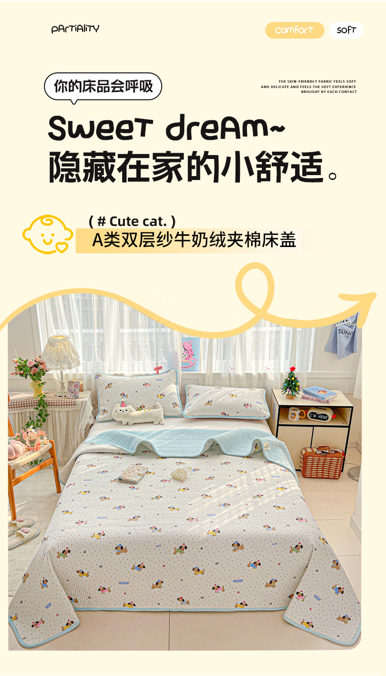 (总)恒尚居 2026新款A双层纱B牛奶绒床盖双面两用夹棉床单学生床垫床褥子系列二,KT猫【A双层纱-B牛奶绒】,拉布布【A双层纱-B牛奶绒】,贝拉格-咖啡【A双层纱-B牛奶绒】,波点狗狗【A双层纱-B牛奶绒】,花篮兔【A双层纱-B牛奶绒】,格子小熊【A双层纱-B牛奶绒】,草莓世界【A双层纱-B牛奶绒】,棒棒糖女孩【A双层纱-B牛奶绒】,蓝调【A双层纱-B牛奶绒】,落叶【A双层纱-B牛奶绒】,萌宠乐园【A双层纱-B牛奶绒】,兔子乐队【A双层纱-B牛奶绒】,完美日记【A双层纱-B牛奶绒】,汪汪队【A双层纱-B牛奶绒】,星月【A双层纱-B牛奶绒】,阳光庄园【A双层纱-B牛奶绒】,英伦格【A双层纱-B牛奶绒】,紫罗花【A双层纱-B牛奶绒】,组合图仅供参考不可下单