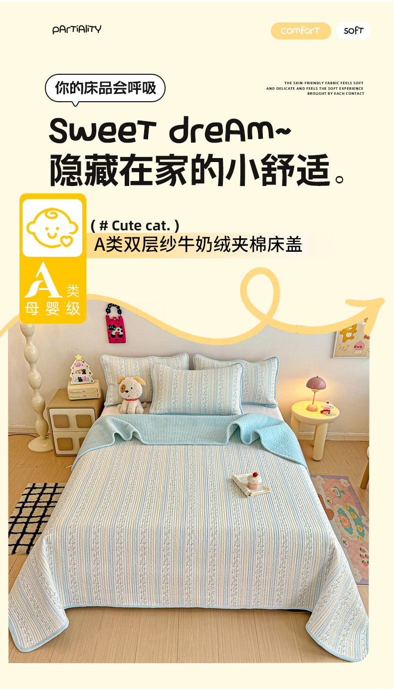 (总)恒尚居 2026新款A双层纱B牛奶绒床盖双面两用夹棉床单学生床垫床褥子系列二,KT猫【A双层纱-B牛奶绒】,拉布布【A双层纱-B牛奶绒】,贝拉格-咖啡【A双层纱-B牛奶绒】,波点狗狗【A双层纱-B牛奶绒】,花篮兔【A双层纱-B牛奶绒】,格子小熊【A双层纱-B牛奶绒】,草莓世界【A双层纱-B牛奶绒】,棒棒糖女孩【A双层纱-B牛奶绒】,蓝调【A双层纱-B牛奶绒】,落叶【A双层纱-B牛奶绒】,萌宠乐园【A双层纱-B牛奶绒】,兔子乐队【A双层纱-B牛奶绒】,完美日记【A双层纱-B牛奶绒】,汪汪队【A双层纱-B牛奶绒】,星月【A双层纱-B牛奶绒】,阳光庄园【A双层纱-B牛奶绒】,英伦格【A双层纱-B牛奶绒】,紫罗花【A双层纱-B牛奶绒】,组合图仅供参考不可下单