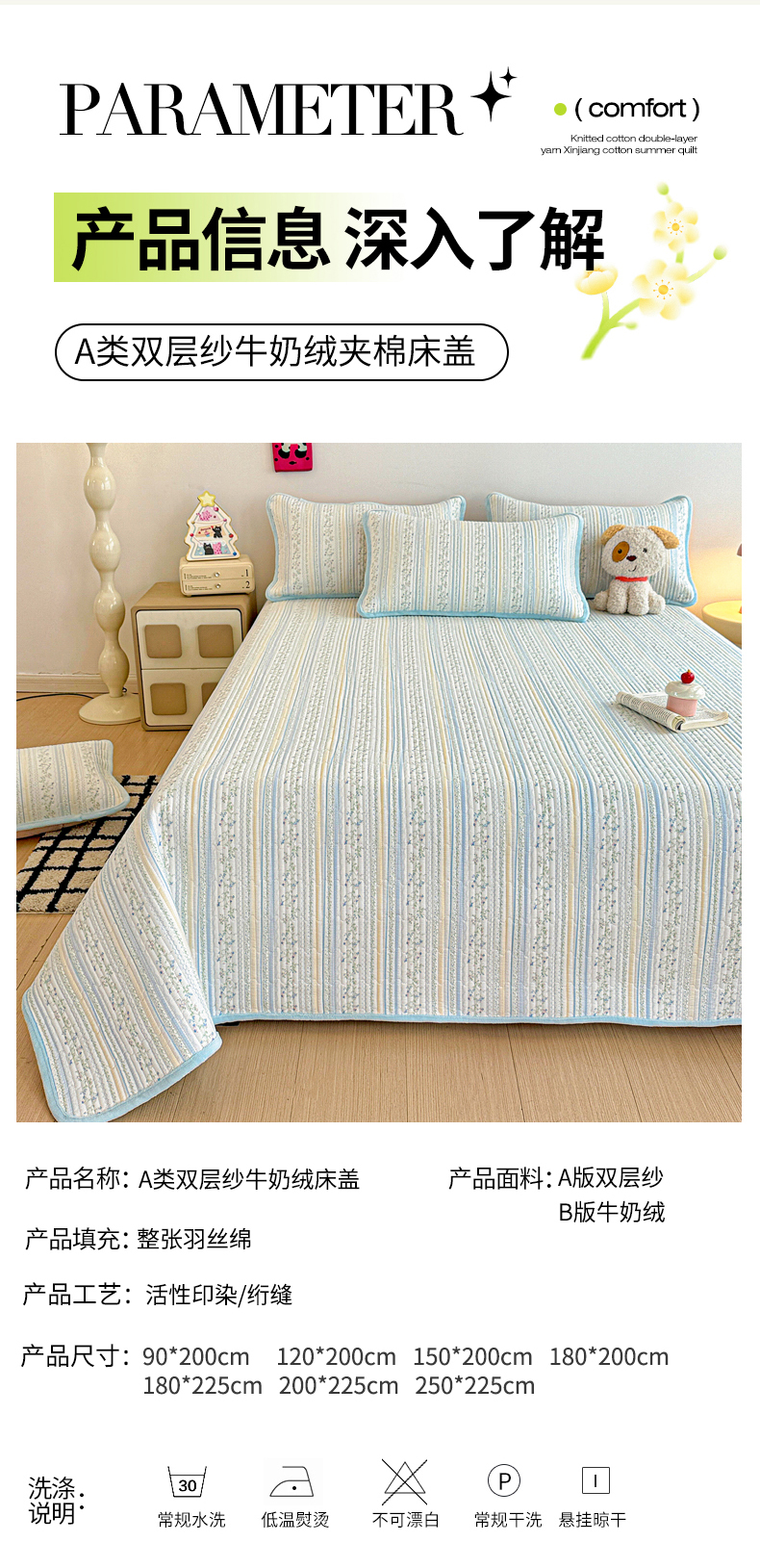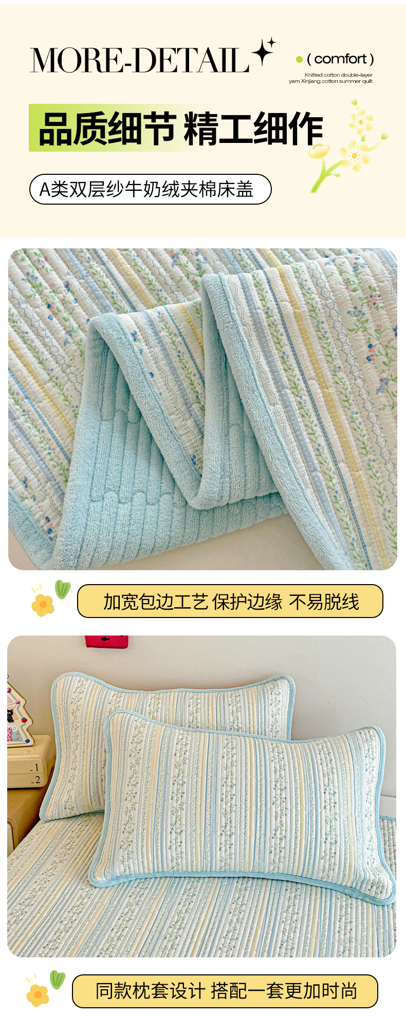 恒尚居 2025新款双层纱牛奶绒床盖双面两用夹棉床单床垫-秋冬款 四季通用 阳光庄园【A双层纱-B牛奶绒】