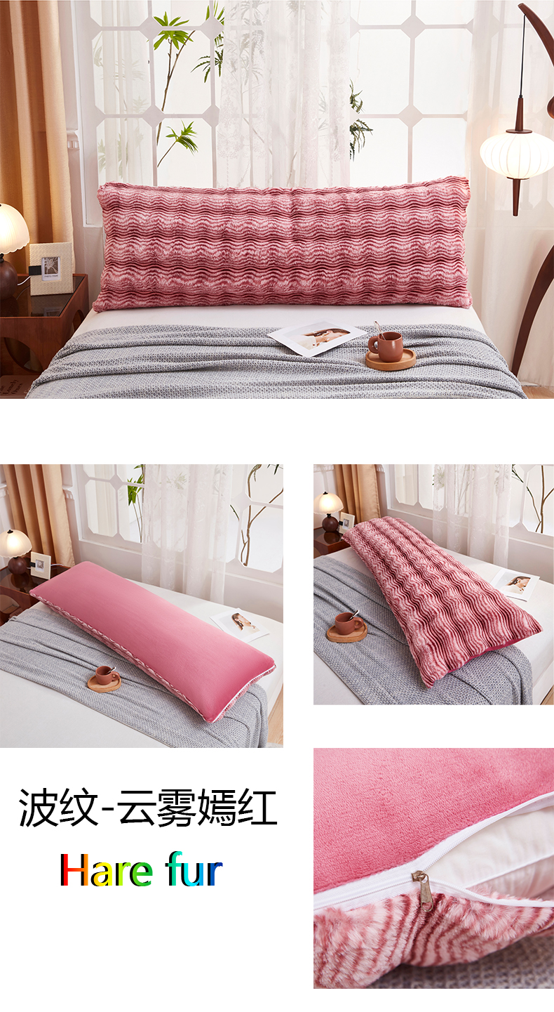商品名称:乐居家纺 2025新款加厚兔毛绒纯色双人枕系列 波纹-云雾嫣红