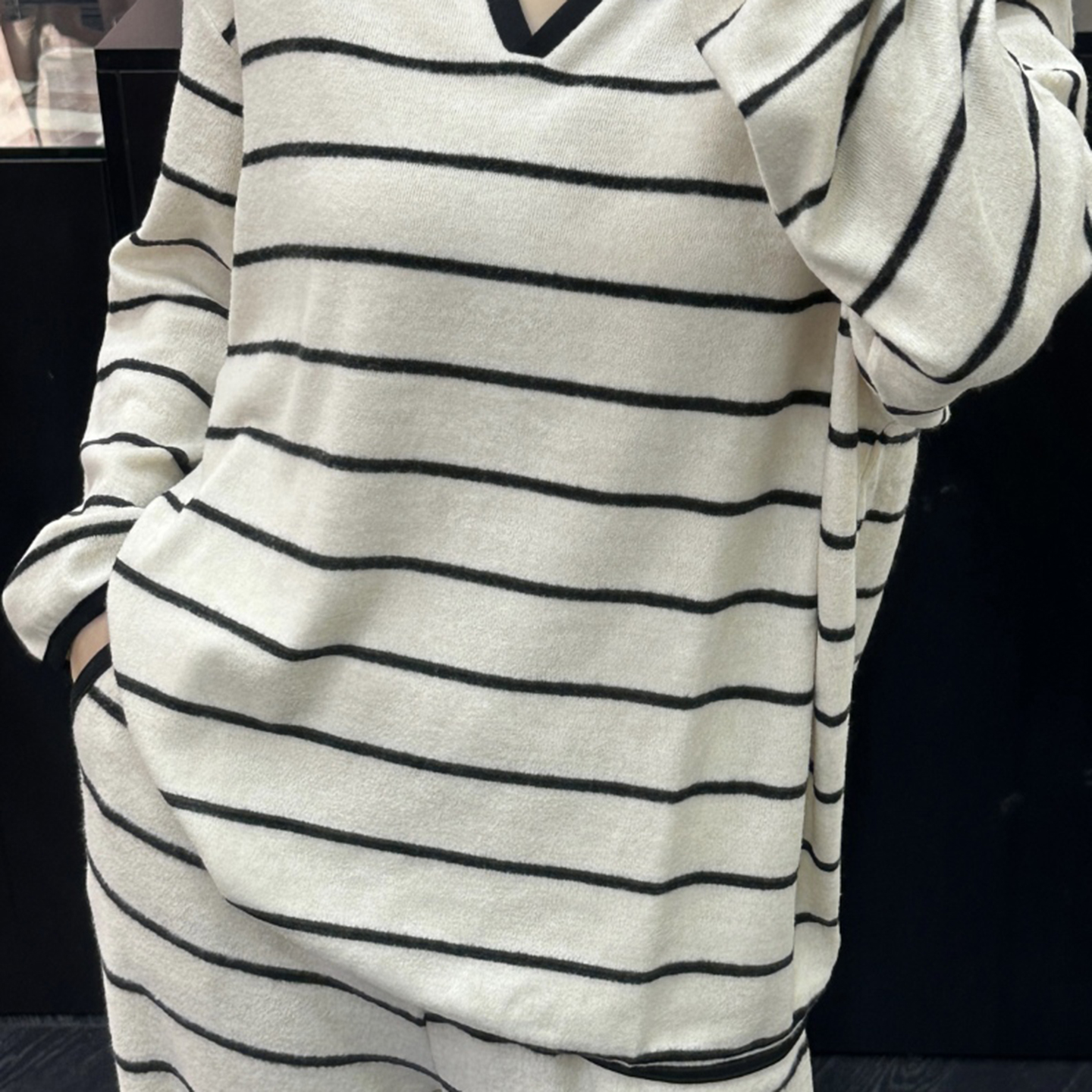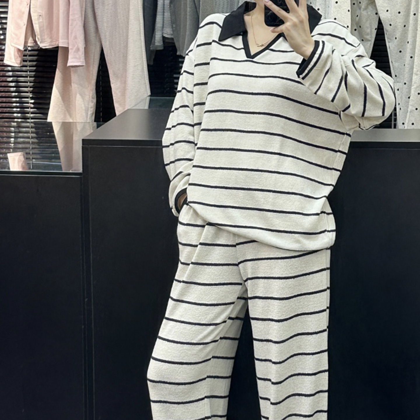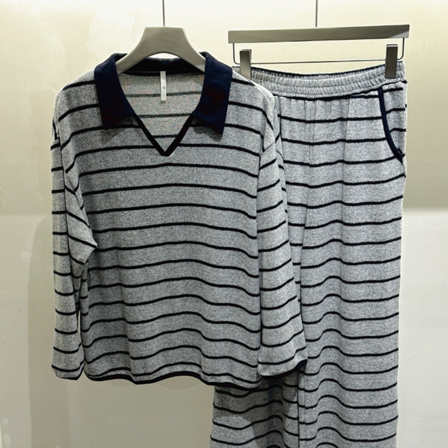 妍景家居生活馆 2025新款复古翻领条纹款 杏色