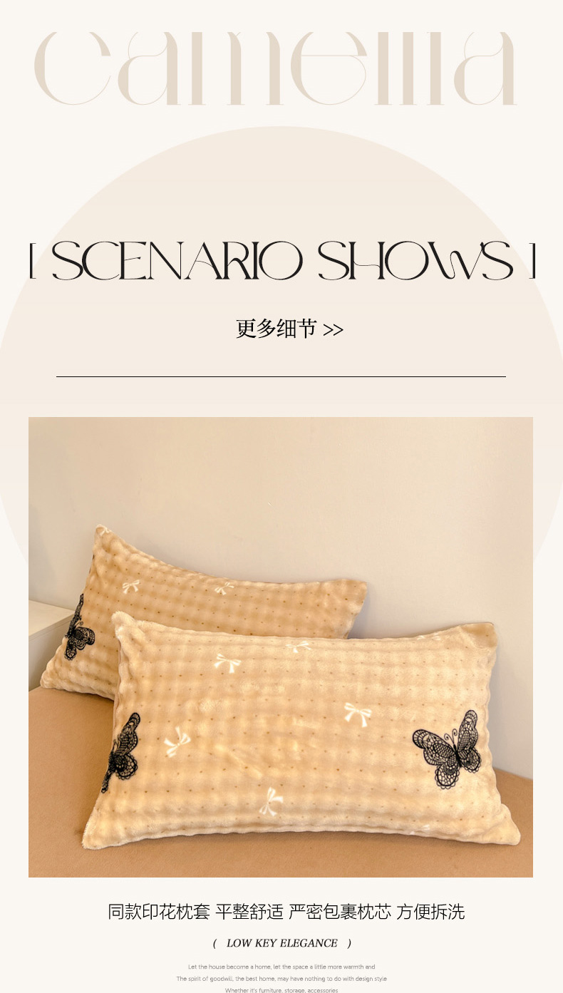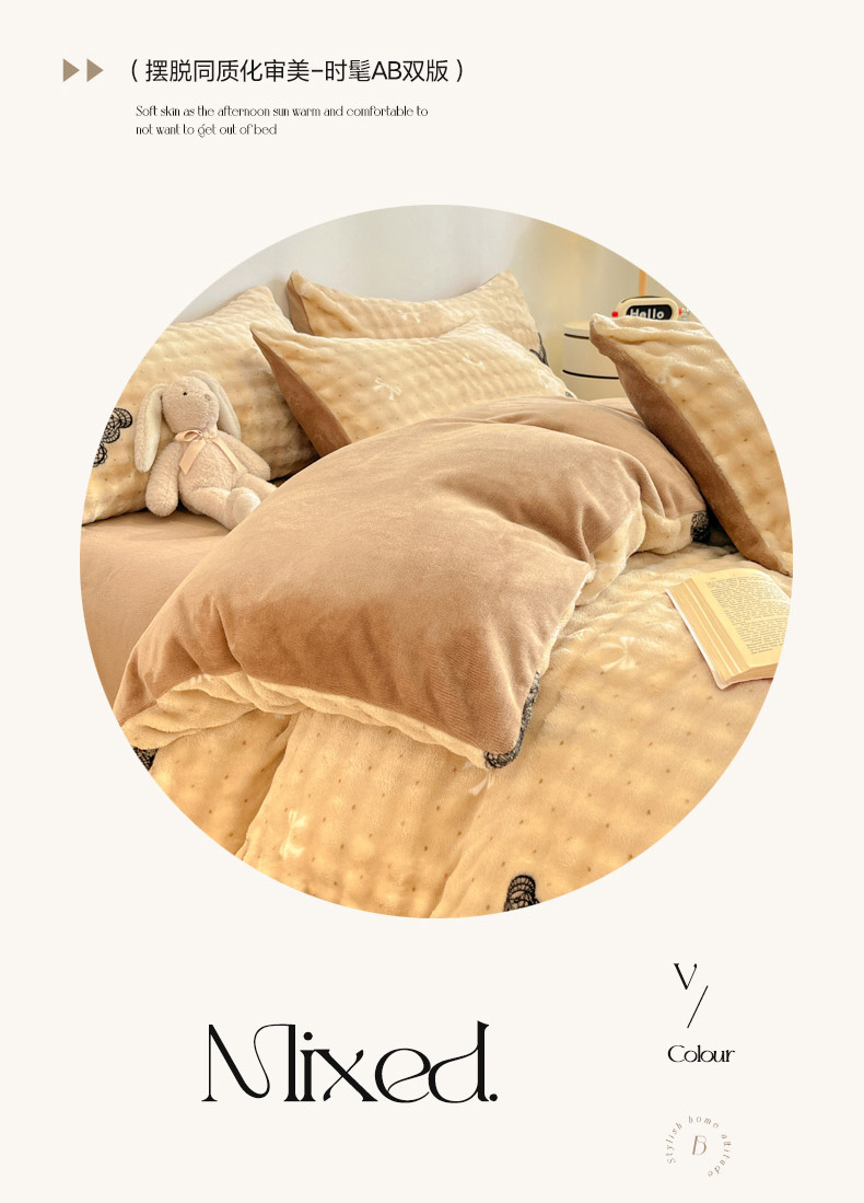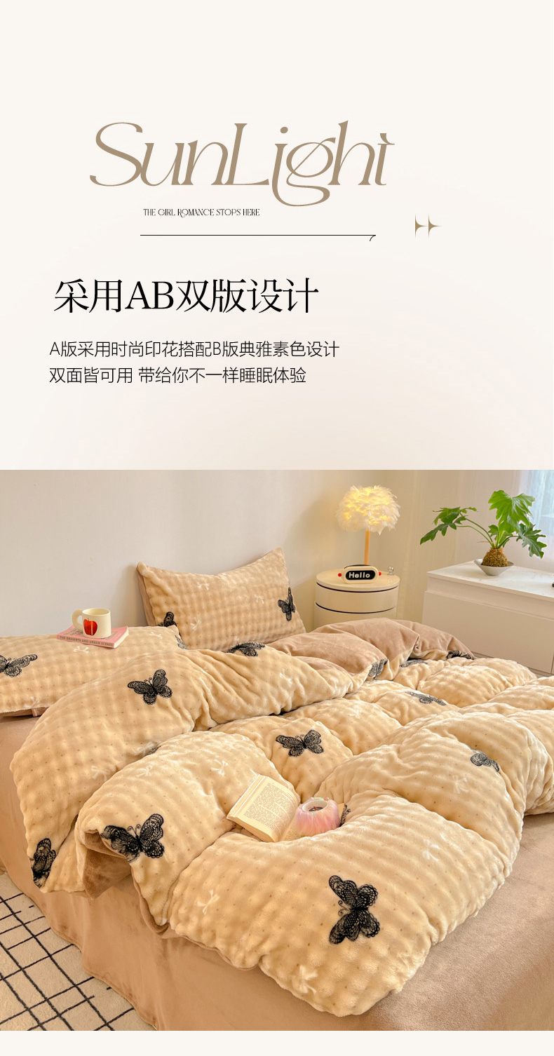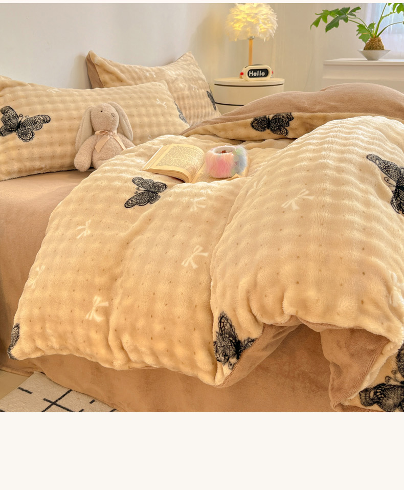 柒月家居 2025新款时尚印花泡泡绒加厚保暖四件套套件 棕色蝴蝶