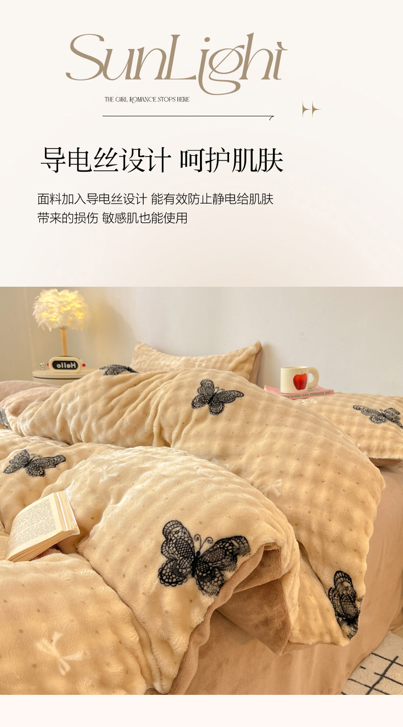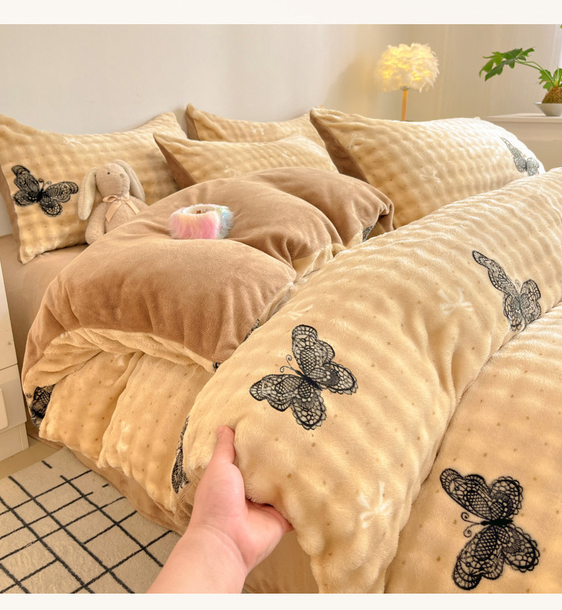 商品名称:柒月家居 2025新款时尚印花泡泡绒加厚保暖四件套套件 棕色蝴蝶