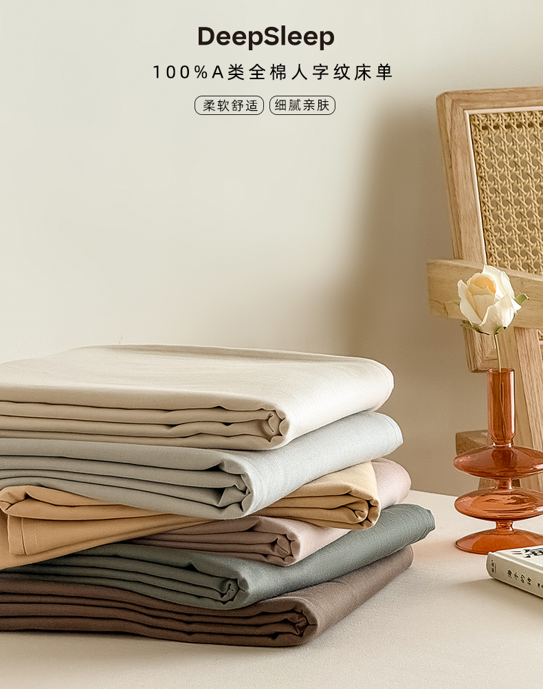 商品名称:Mr.pig猪先生水洗棉 2025新款全棉人字纹单床单 浅咖