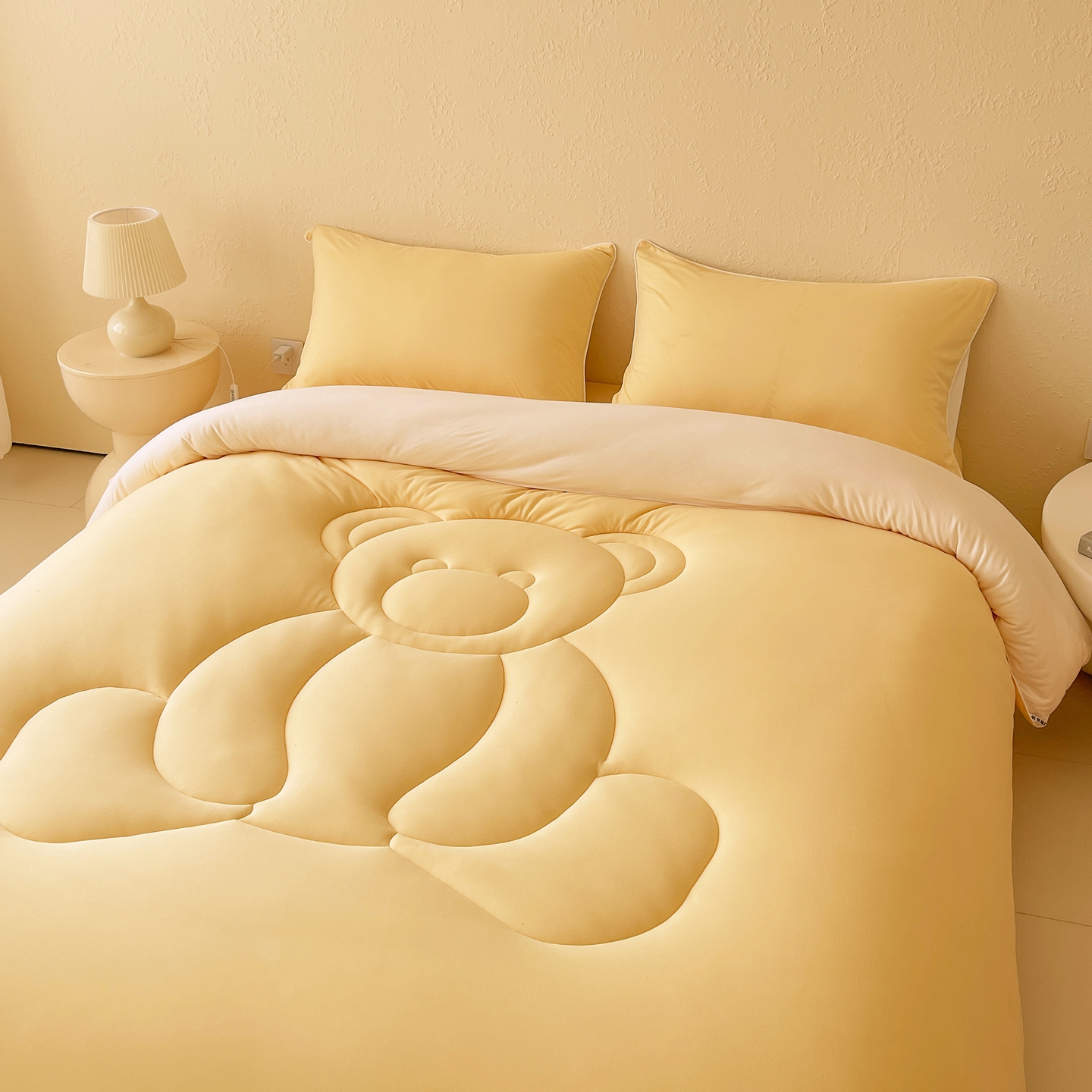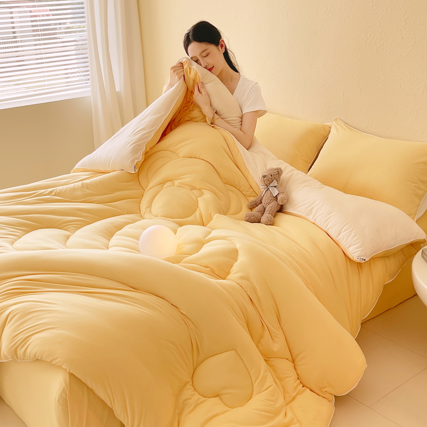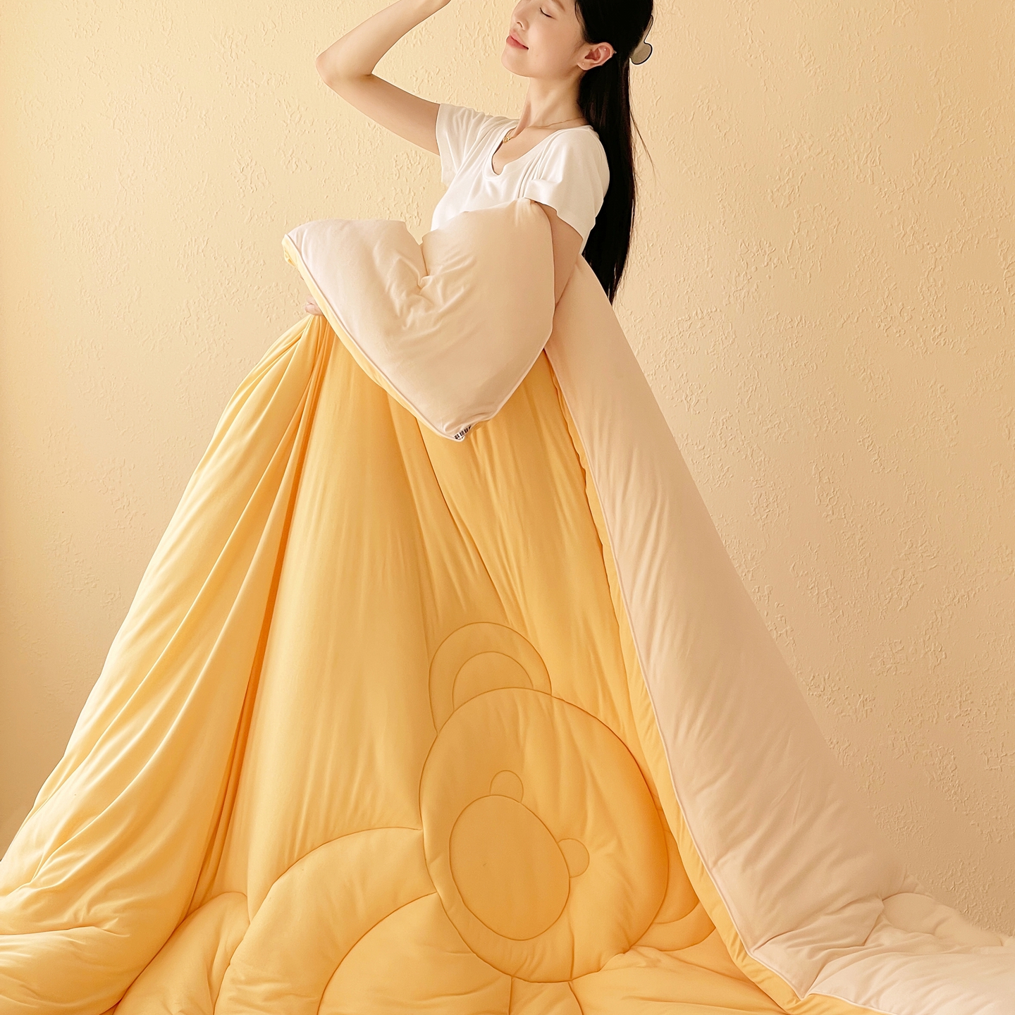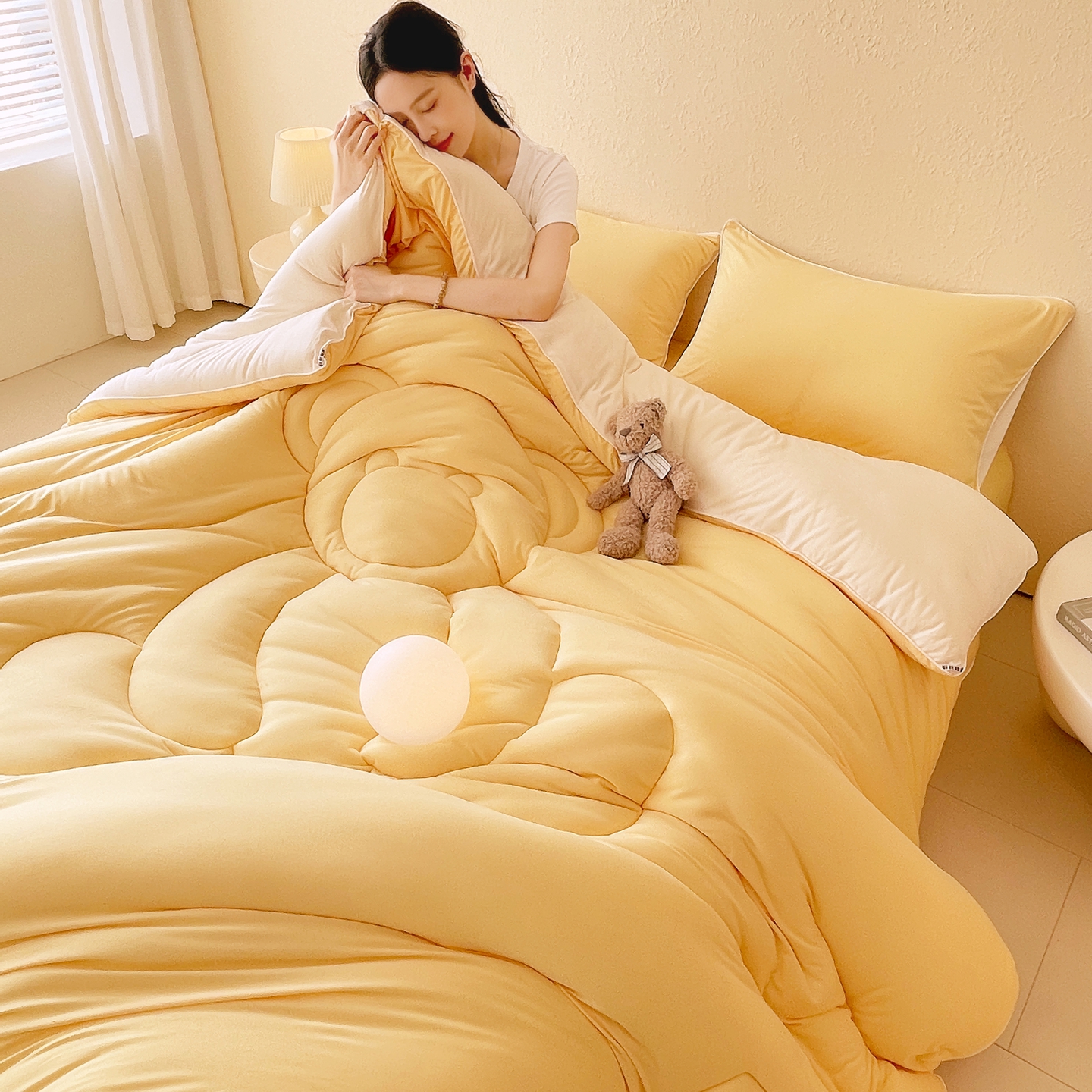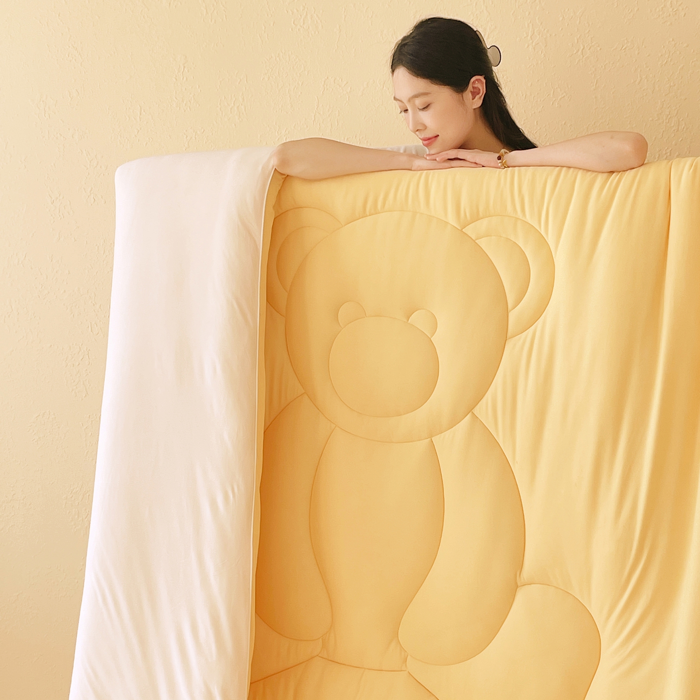商品名称:色鬼布艺高端家居主号 2025新款针织云朵冬被软萌小熊被 黄色