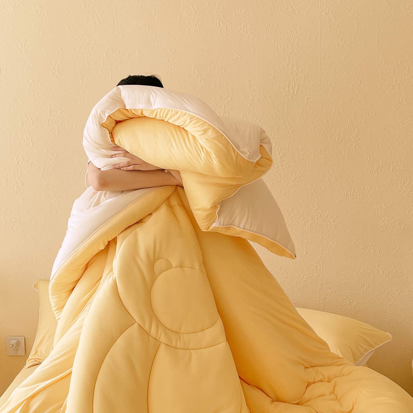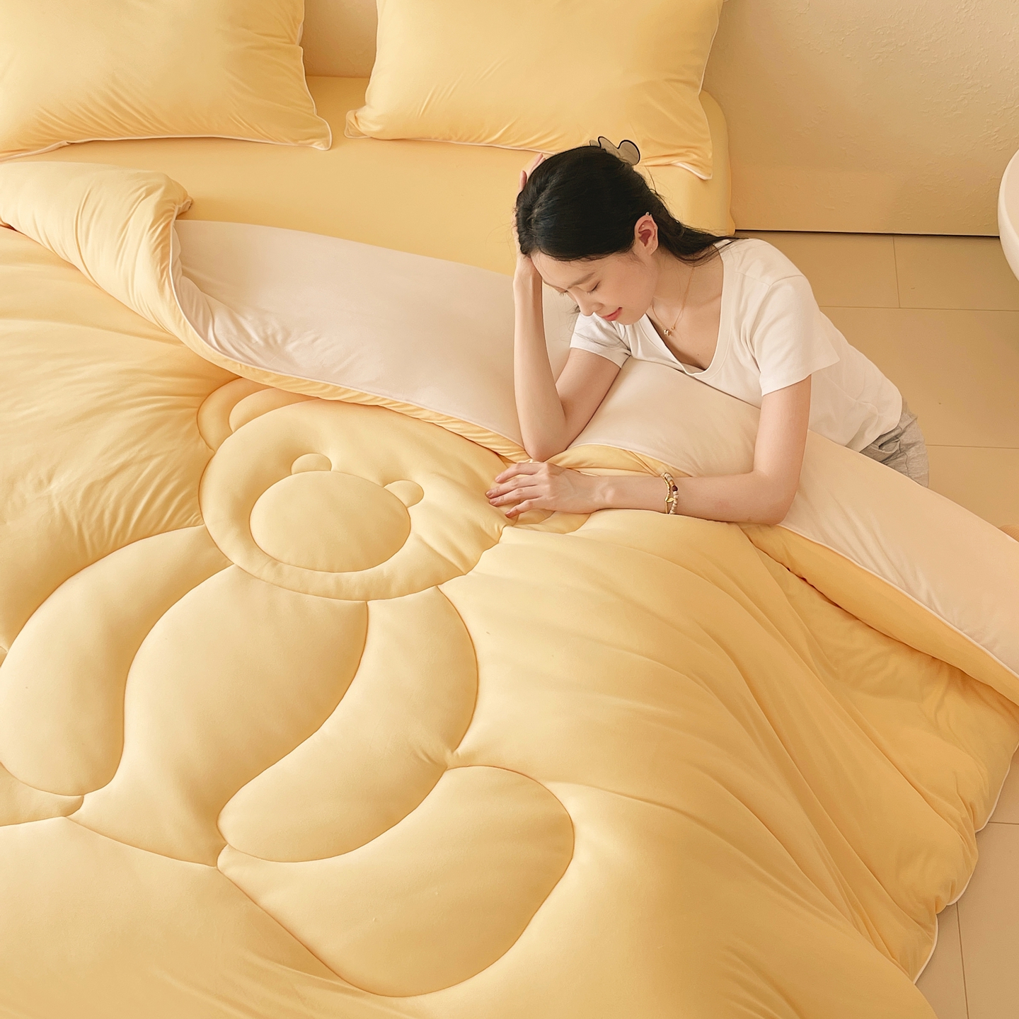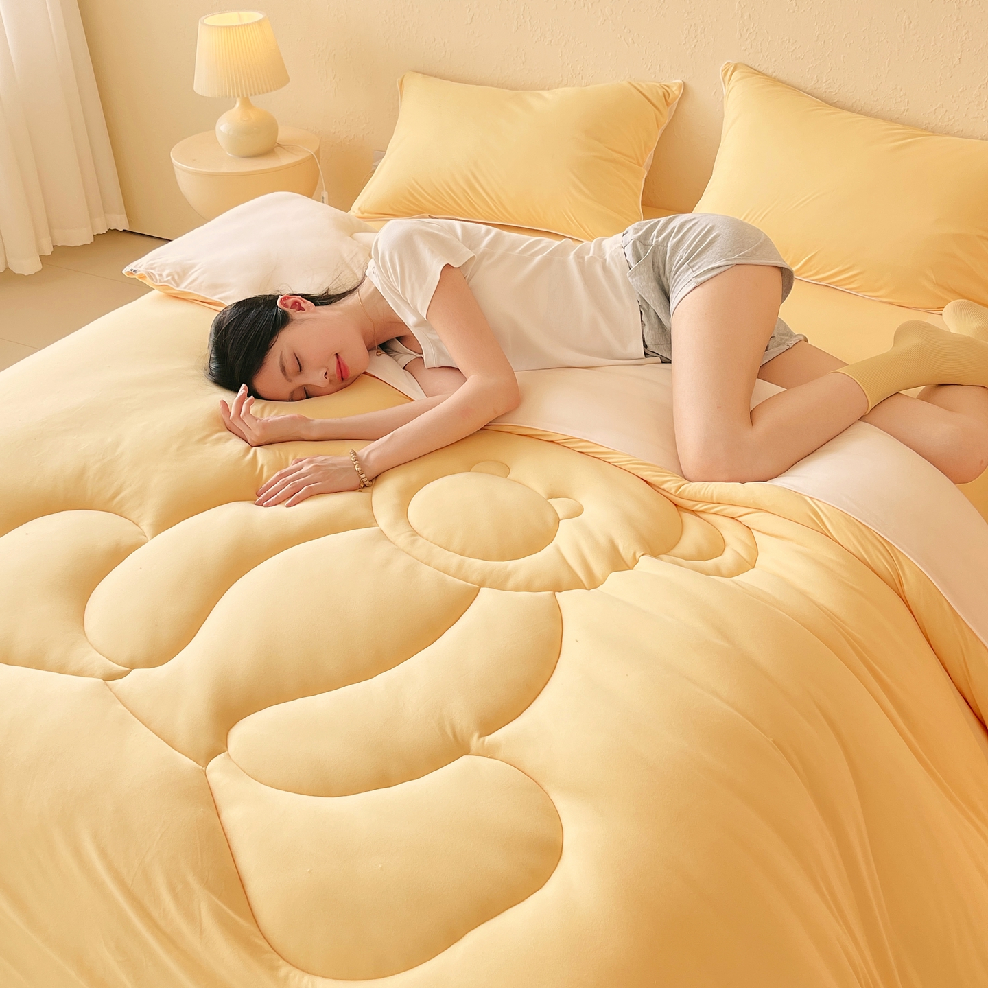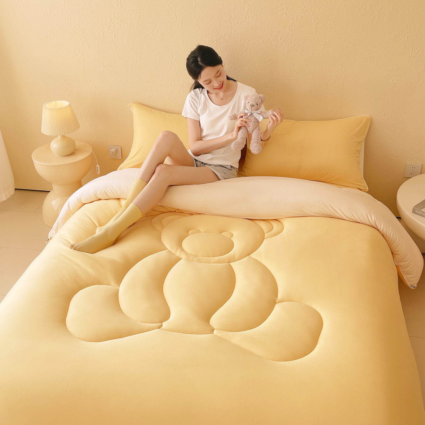 商品名称:色鬼布艺高端家居主号 2025新款针织云朵冬被软萌小熊被 黄色