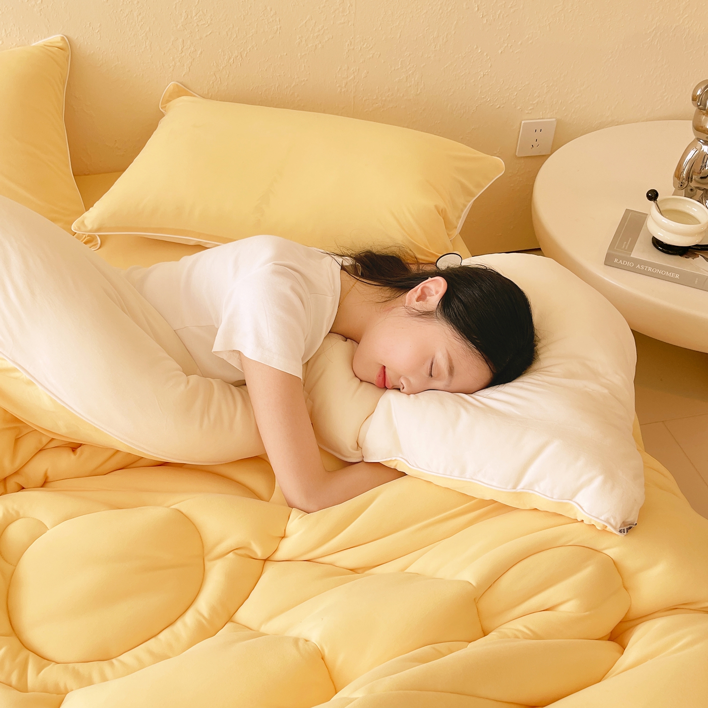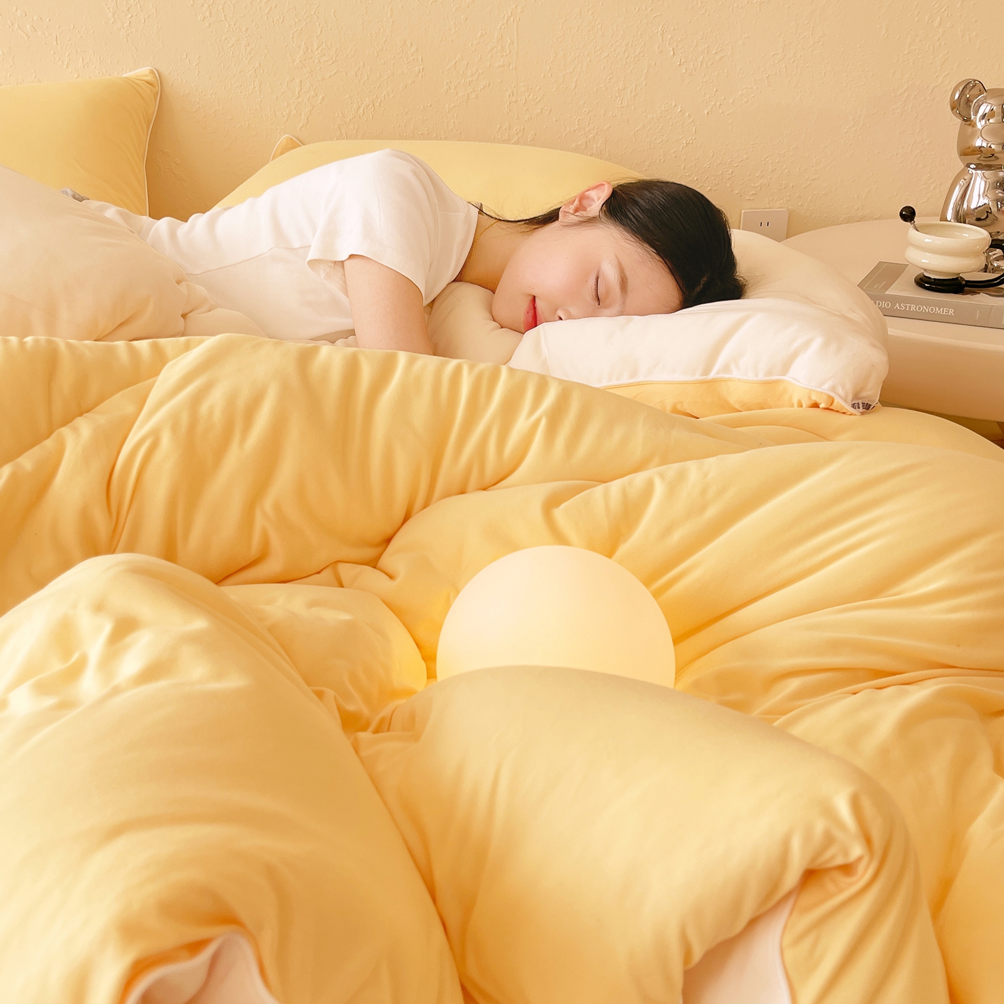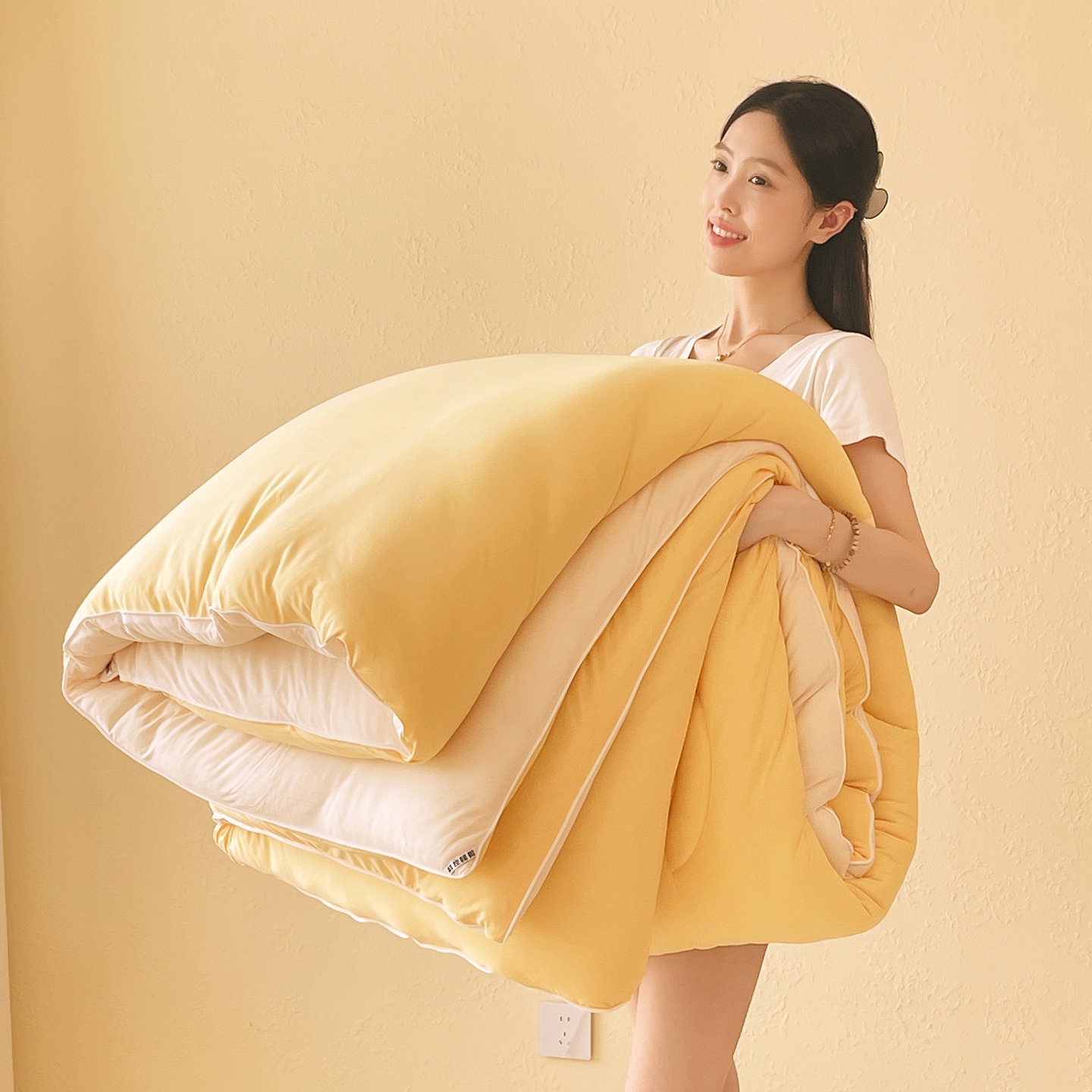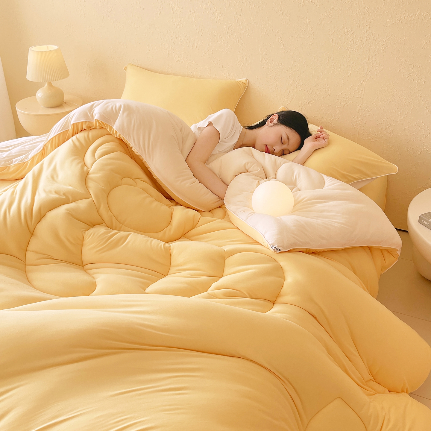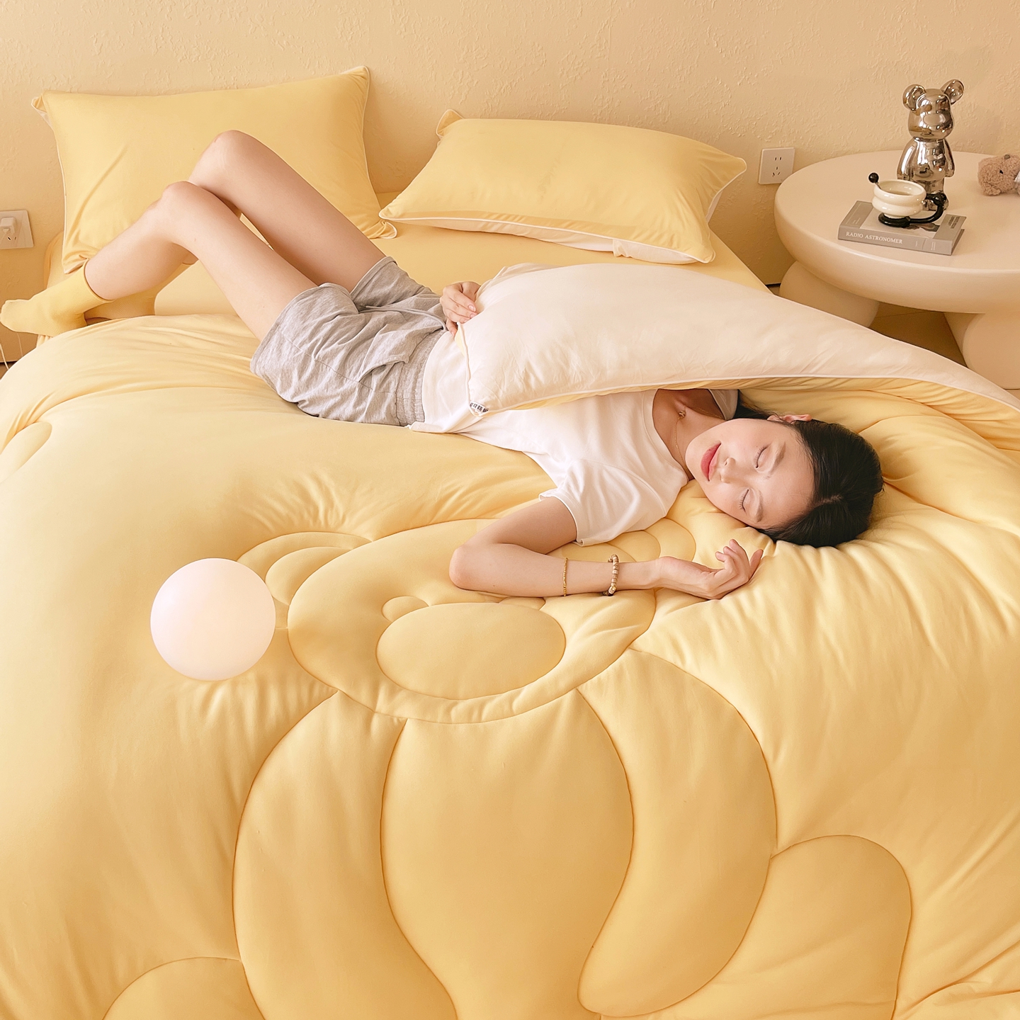 商品名称:色鬼布艺高端家居主号 2025新款针织云朵冬被软萌小熊被 黄色