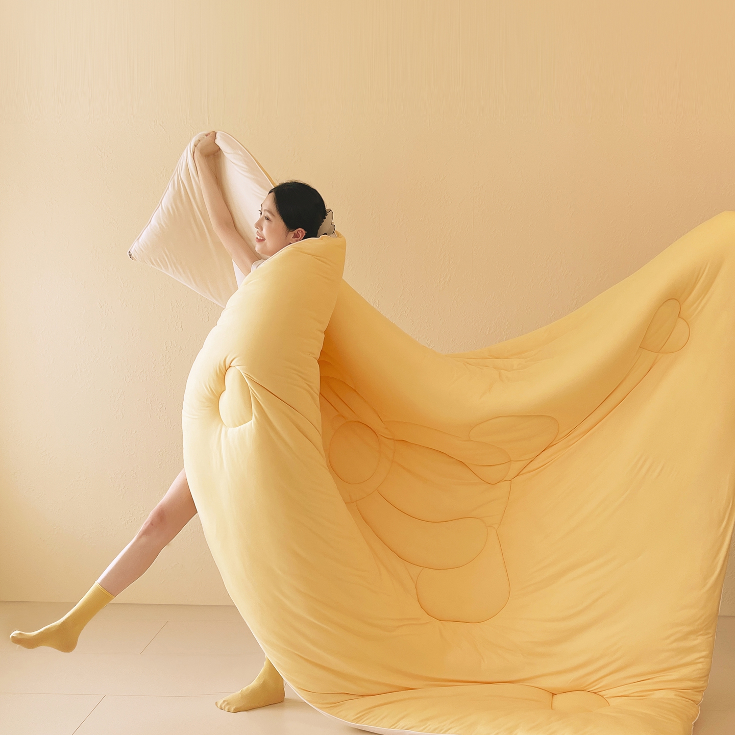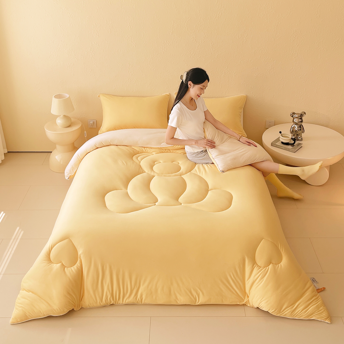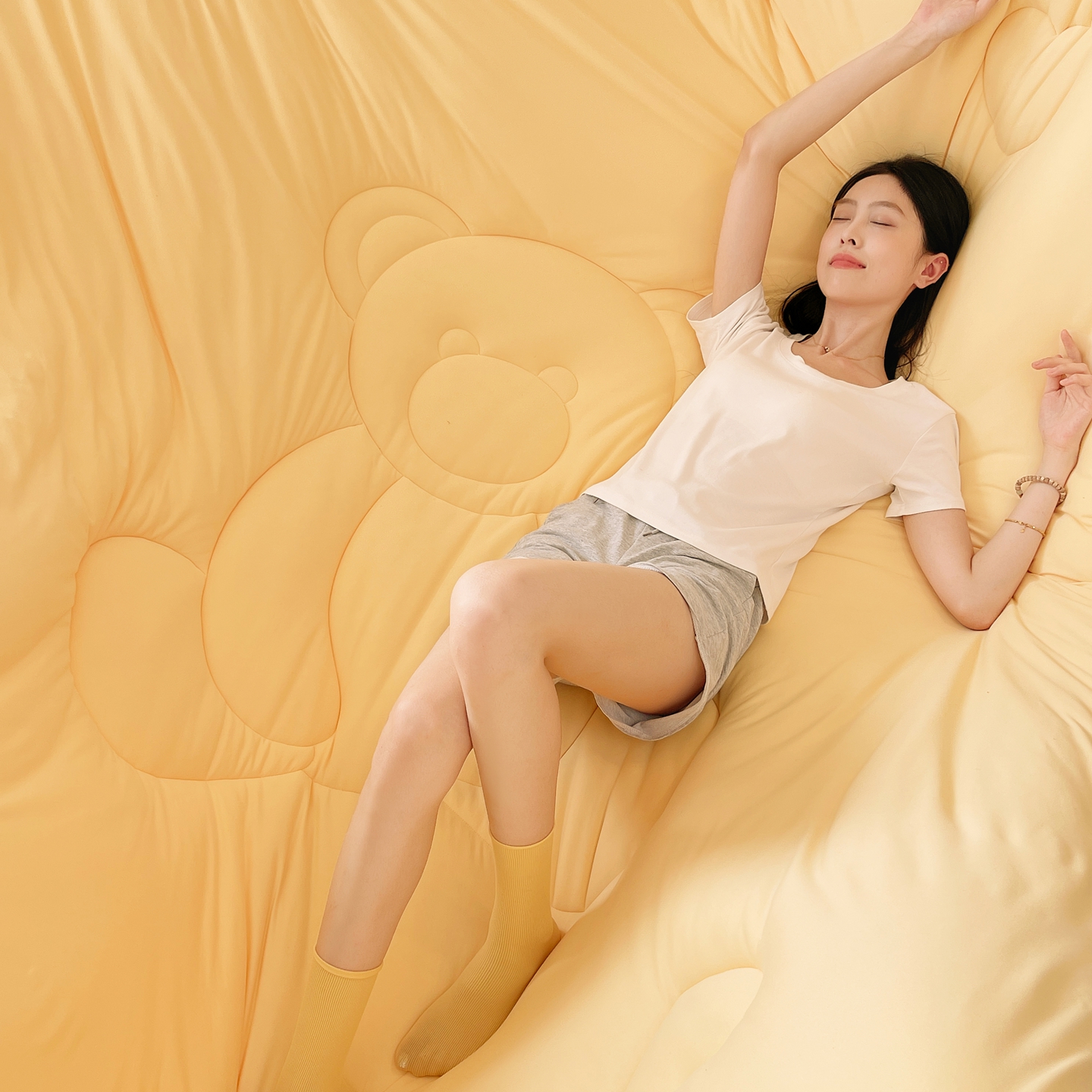 色鬼布艺高端家居主号 2025新款针织云朵冬被软萌小熊被 黄色