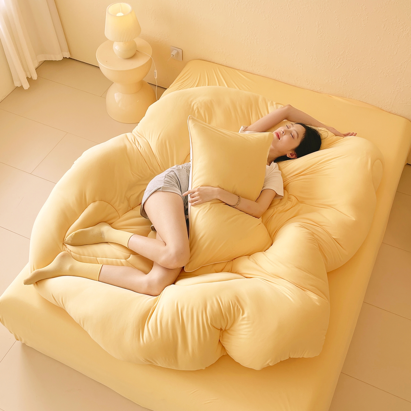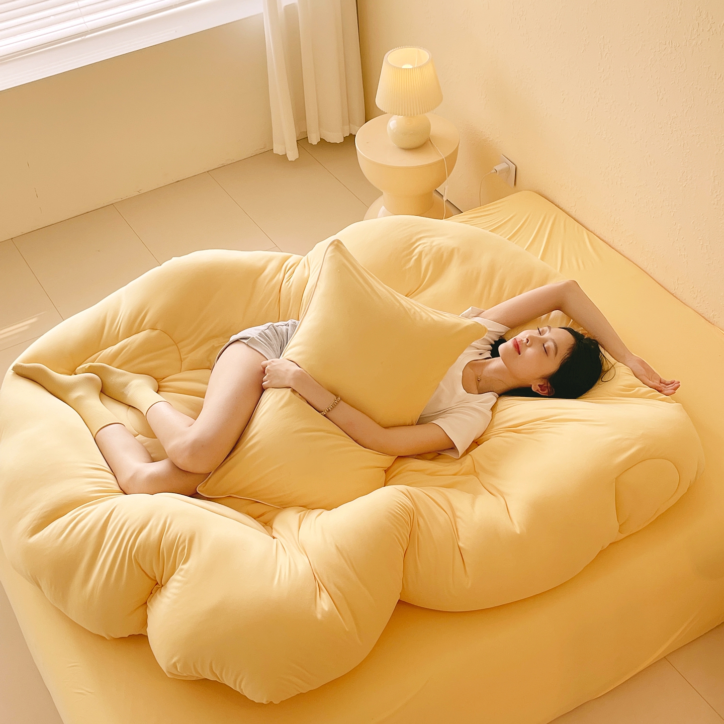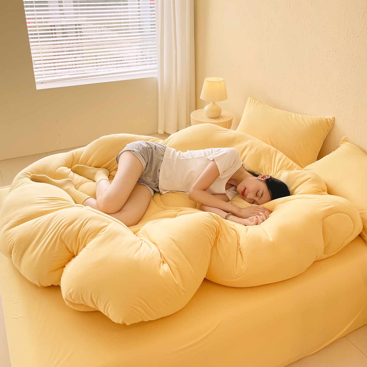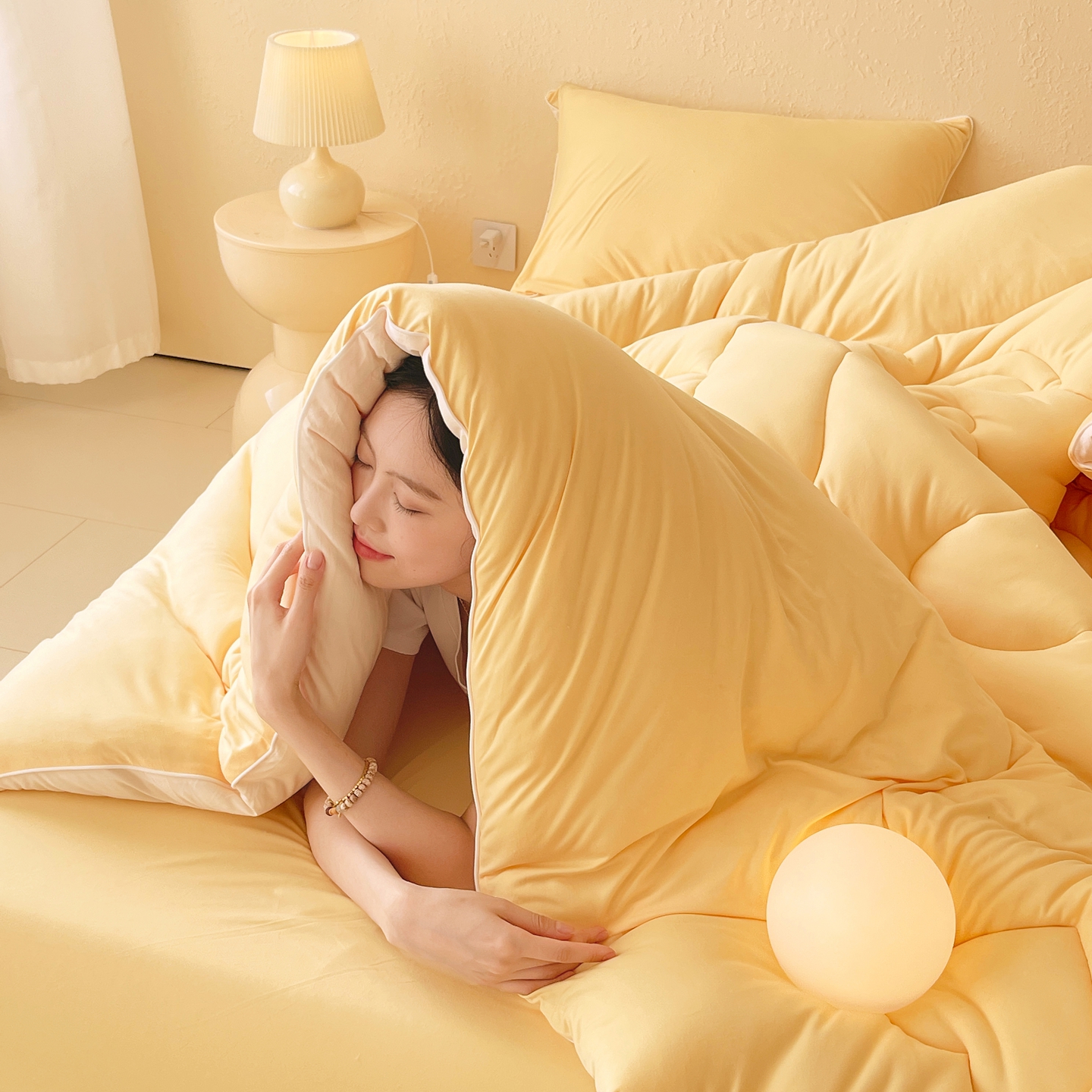 色鬼布艺高端家居主号 2025新款针织云朵冬被软萌小熊被 黄色